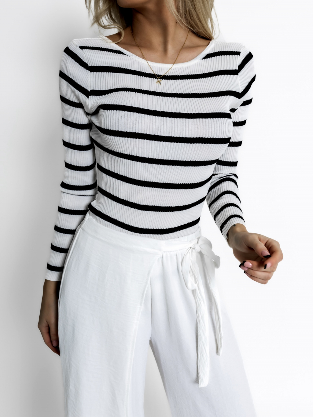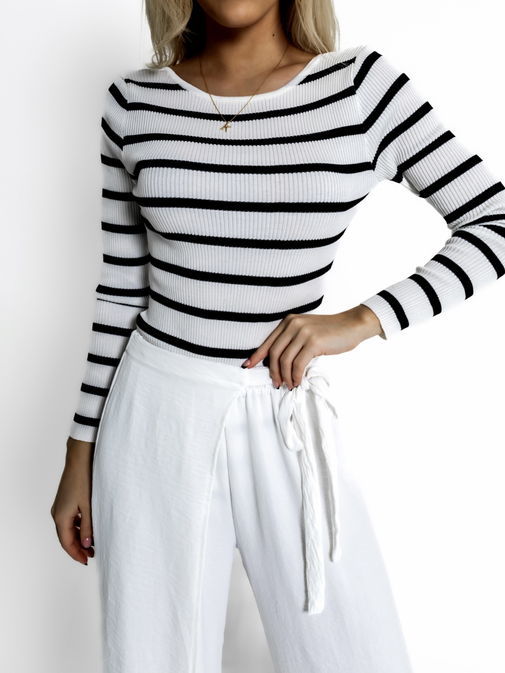 Biele úpletové basic body AIRANE s výstrihom na chrbte