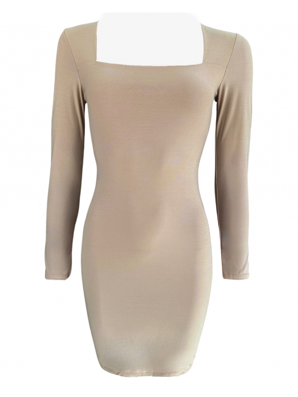 Béžové basic elastické šaty RIENYE s dlhým rukávom