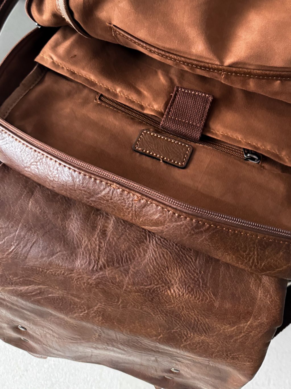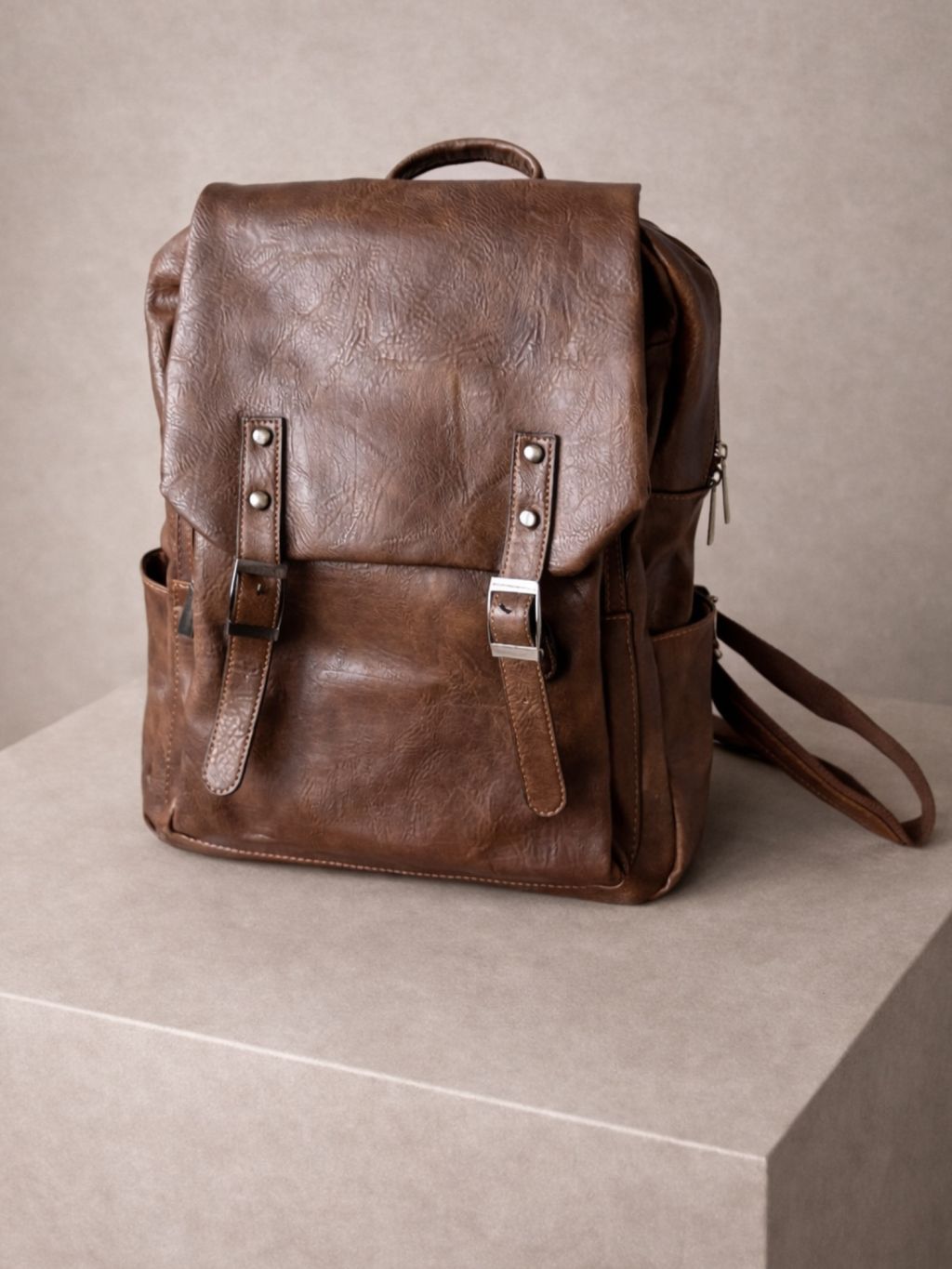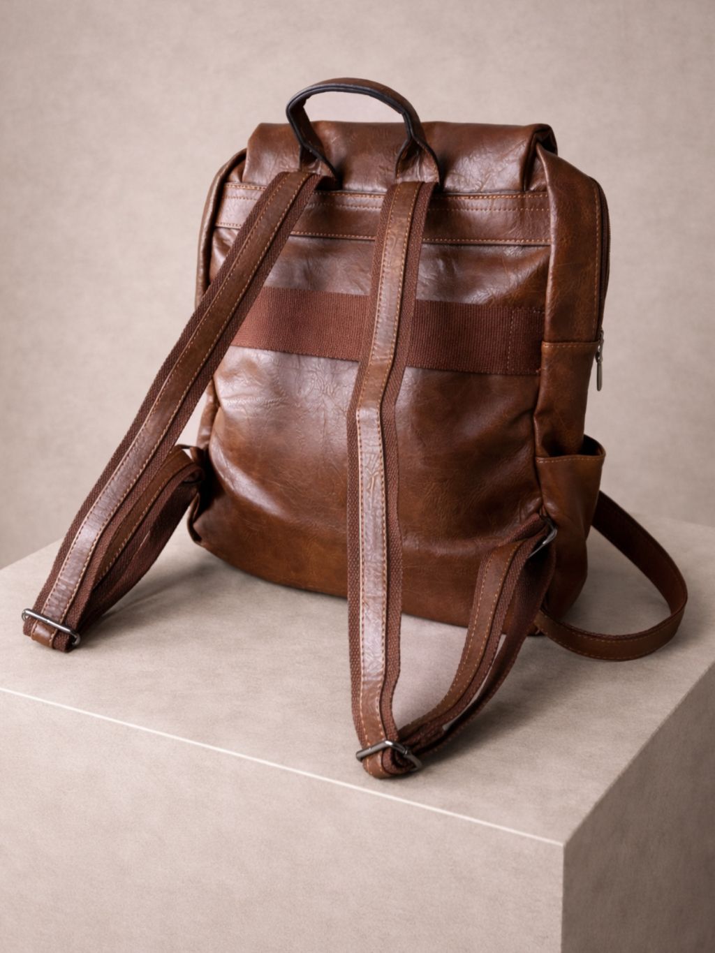 Tmavo hnedý elegantný koženkový batoh SAROLYN