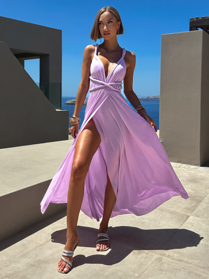 Svetlo fialové dlhé viazacie šaty KATIE pre družičky