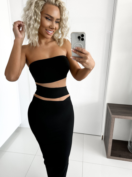 Čierne zoštíhľujúce dlhé šaty SARANDA