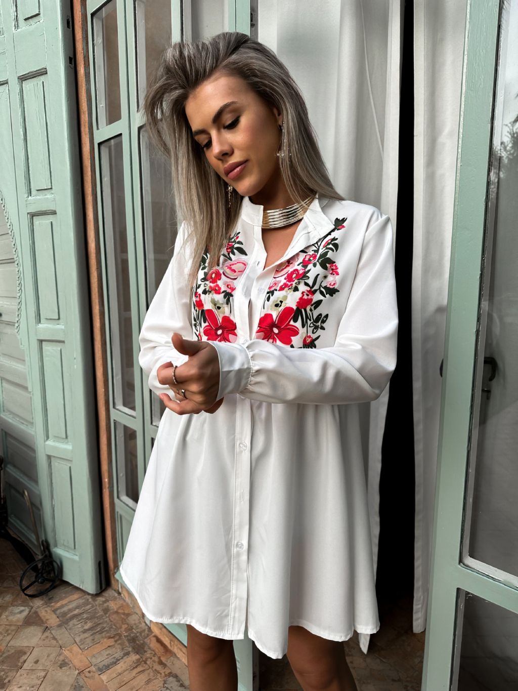 Biela košeľová boho tunika FOROHAR