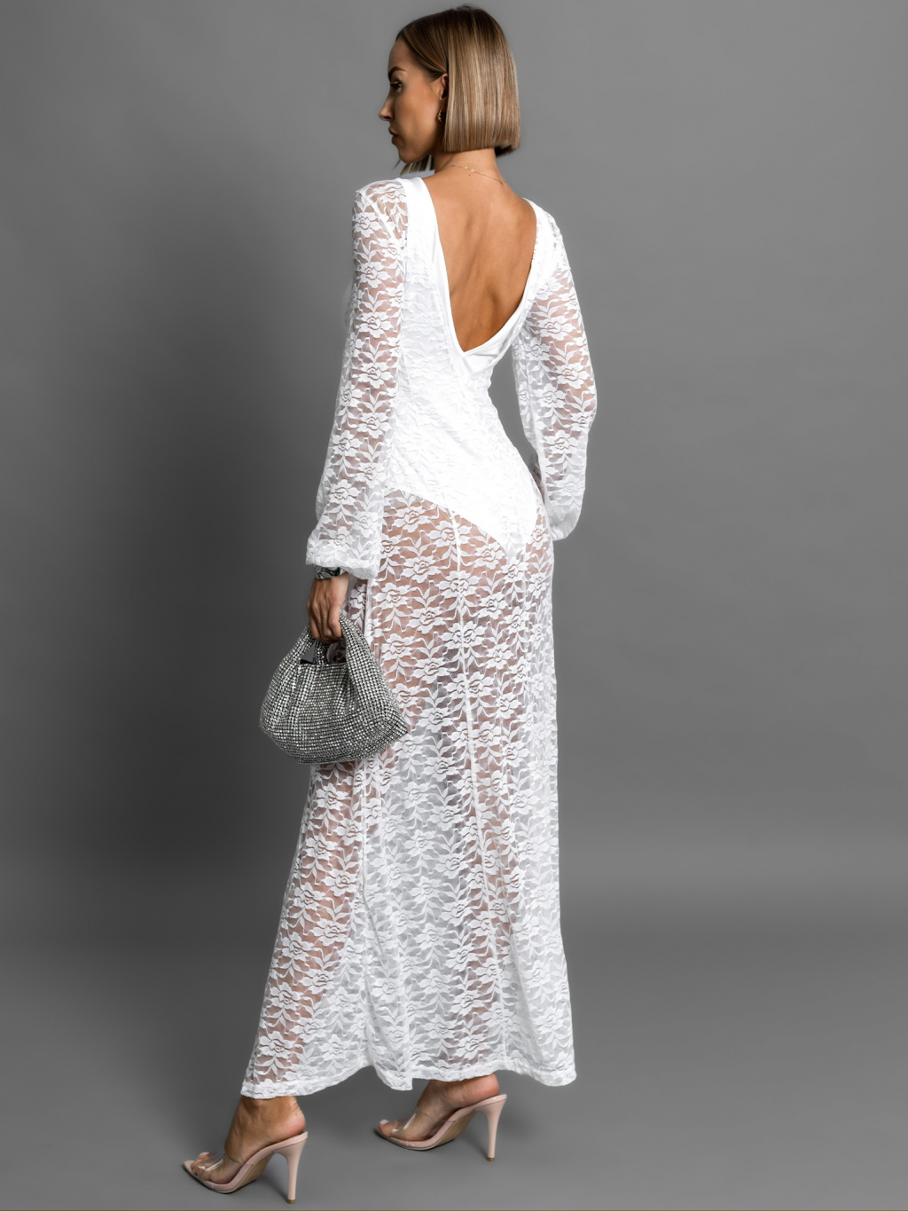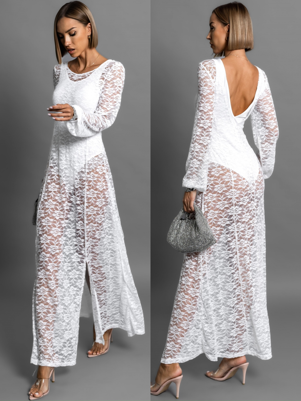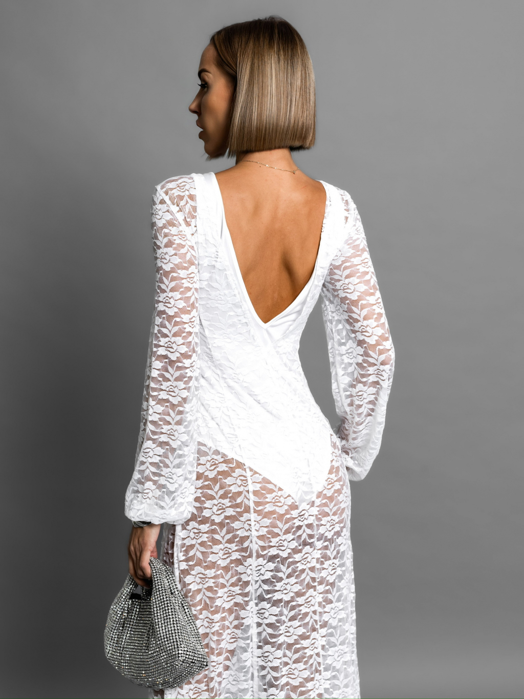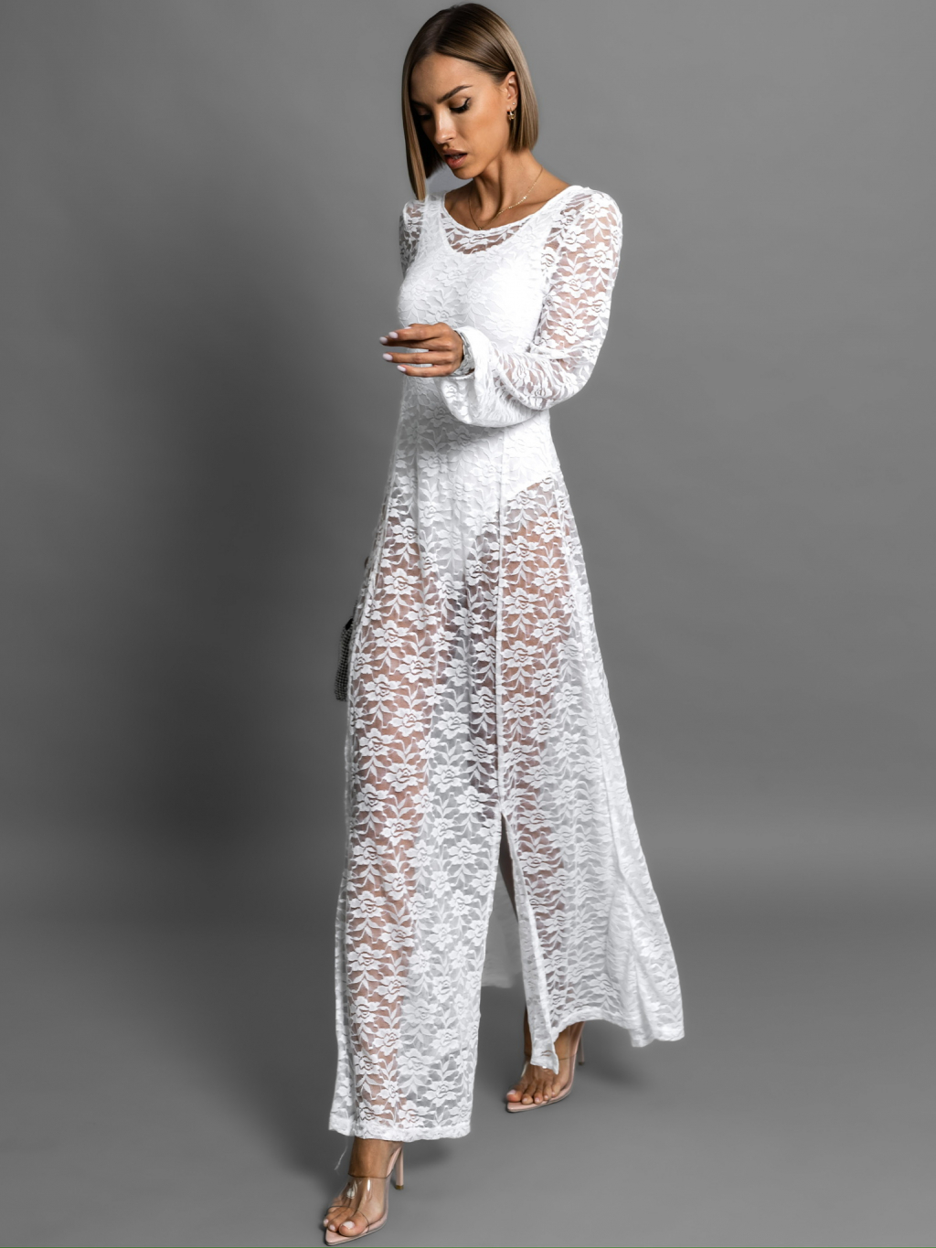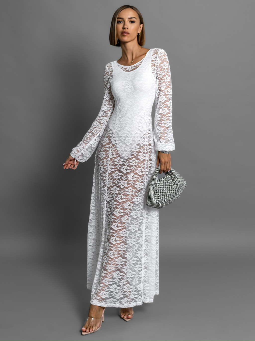 Biele dlhé čipkované šaty OCHRIM s bodmi