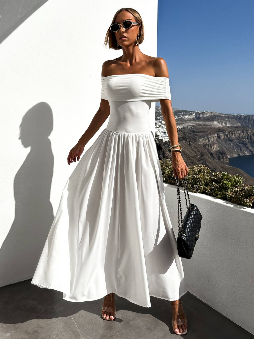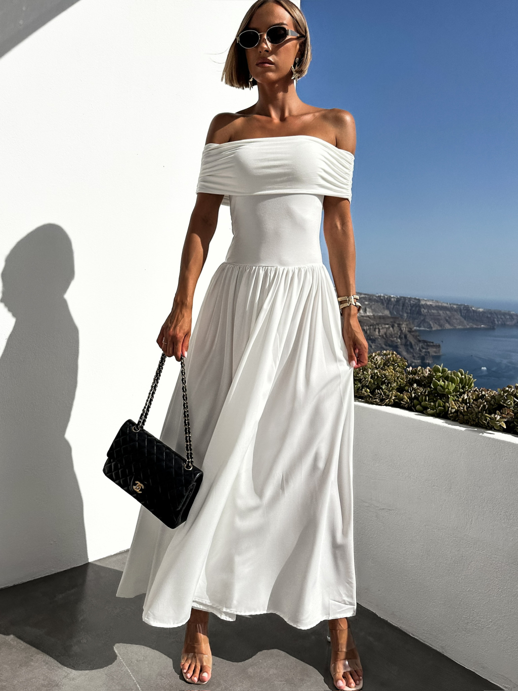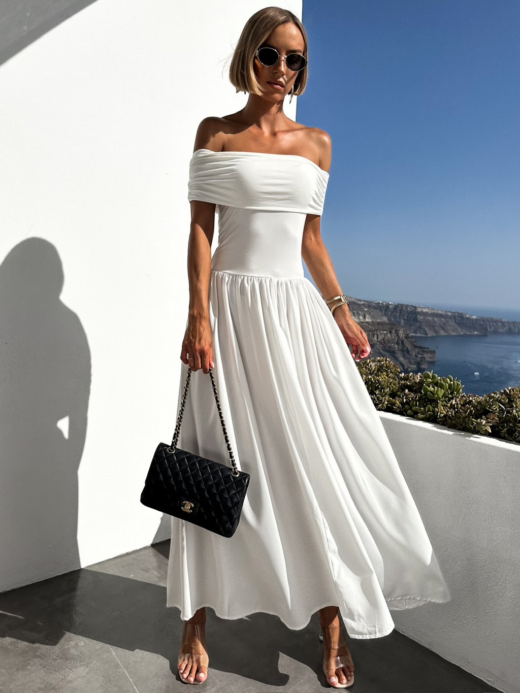 Biele dlhé šaty DURIAN s holými ramenami
