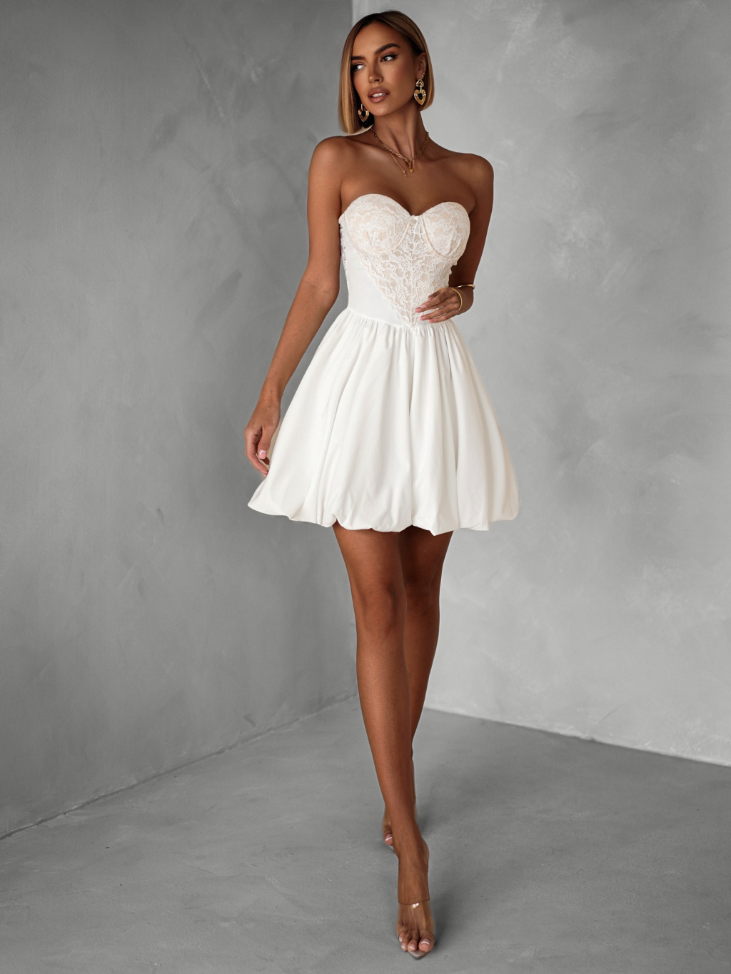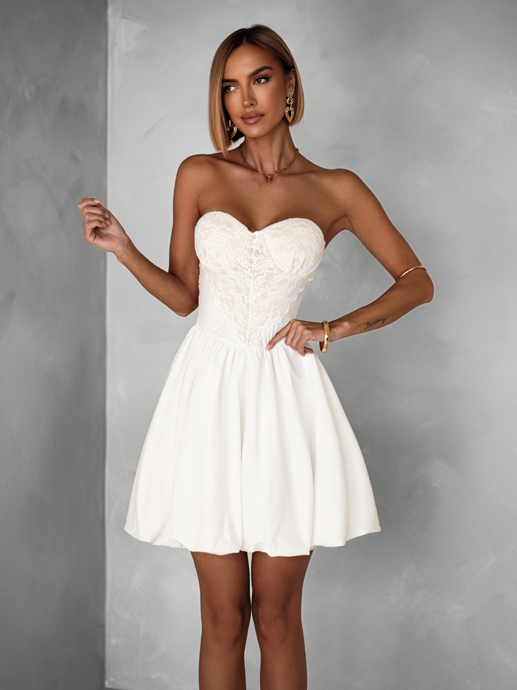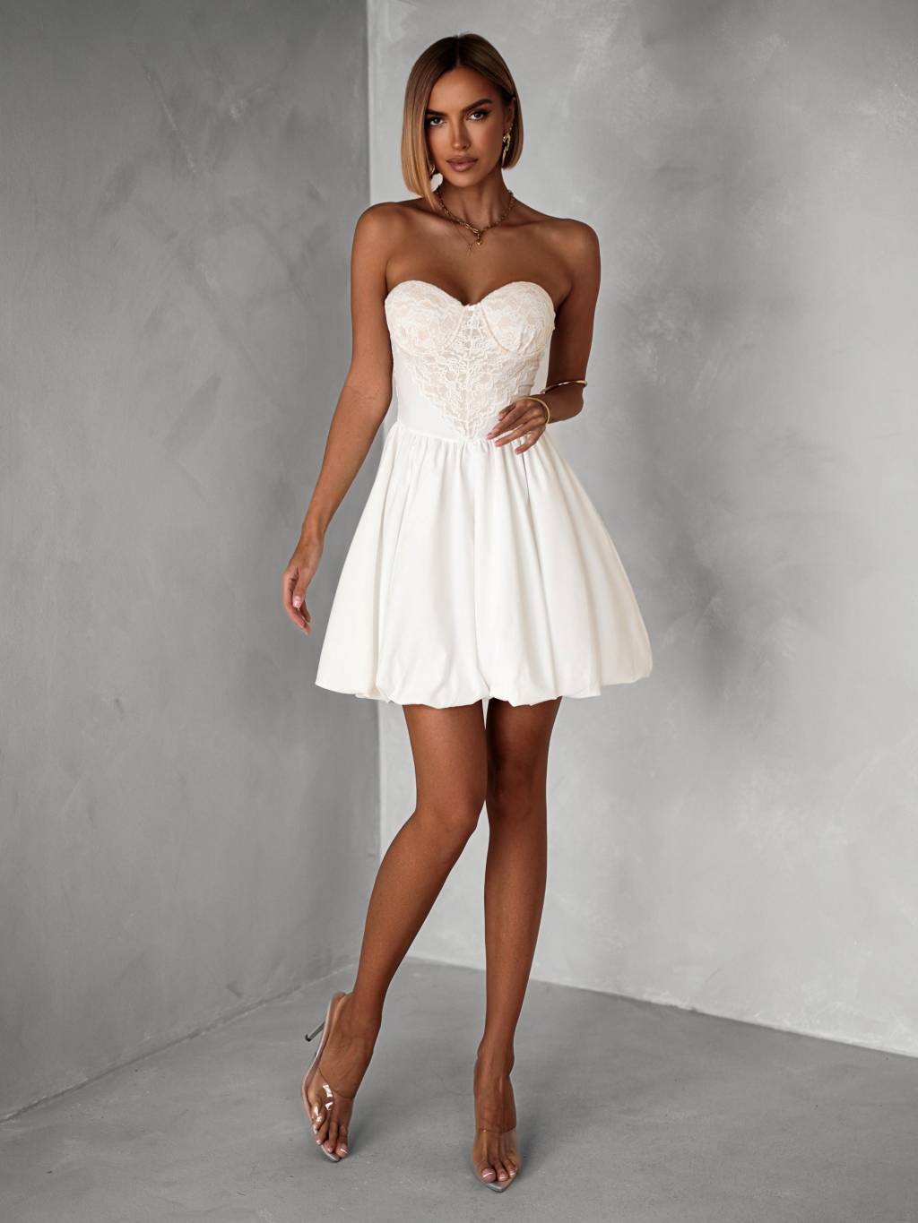 Biele krátke šaty NAMSOSE s áčkovou sukňou