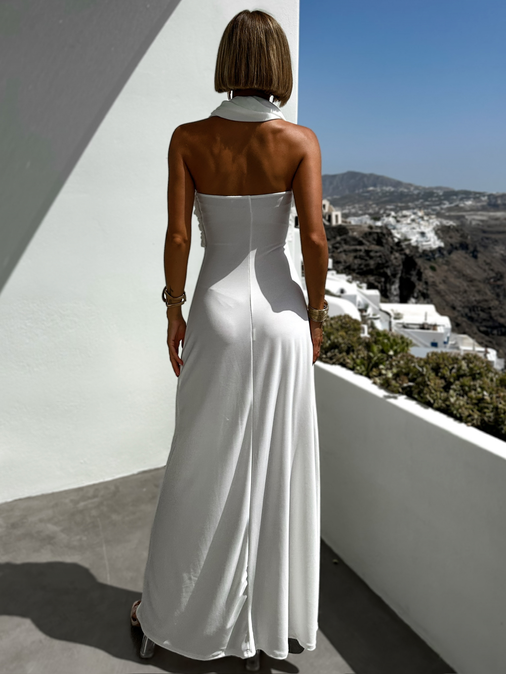 Biele variabilné dlhé spoločenské šaty HAARLEN