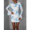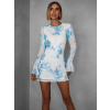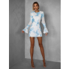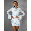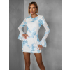 Bielomodré elegantné šaty ENGLA s kvetmi