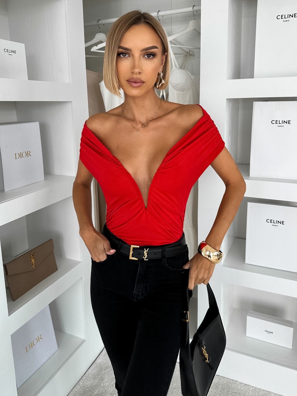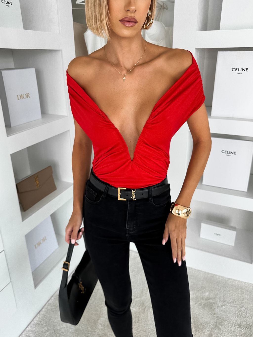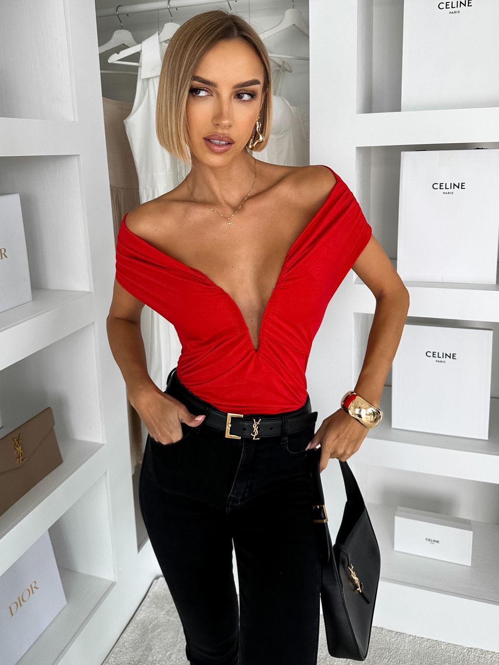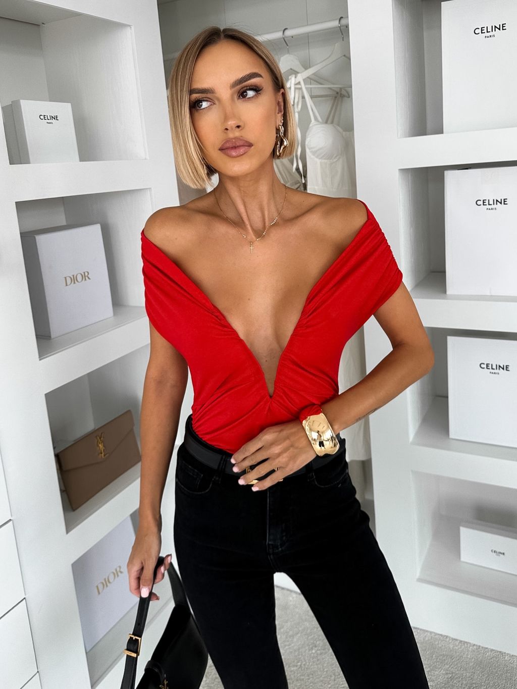 Červené spoločenské body AIBARA s výstrihom