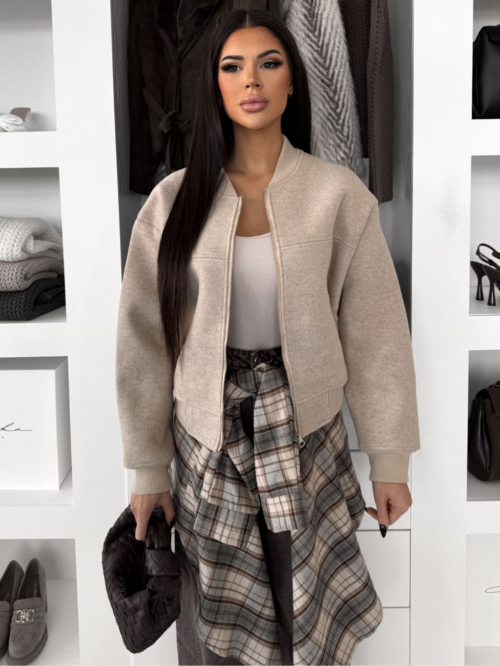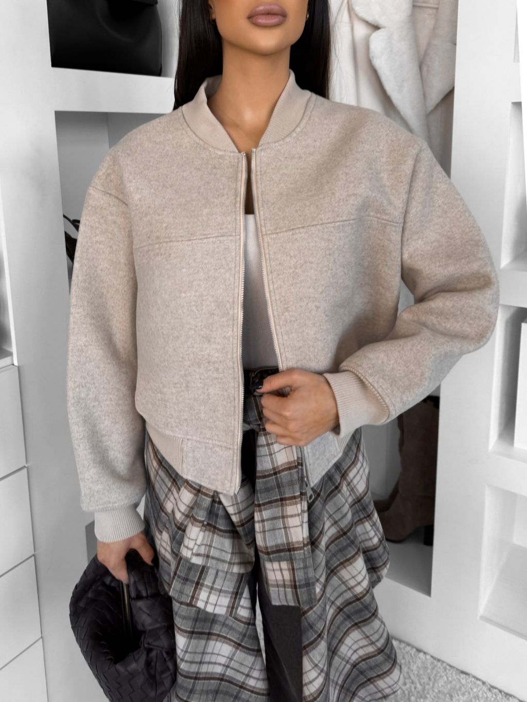 Béžová krátka štýlová mikinová bundička NOMURIA