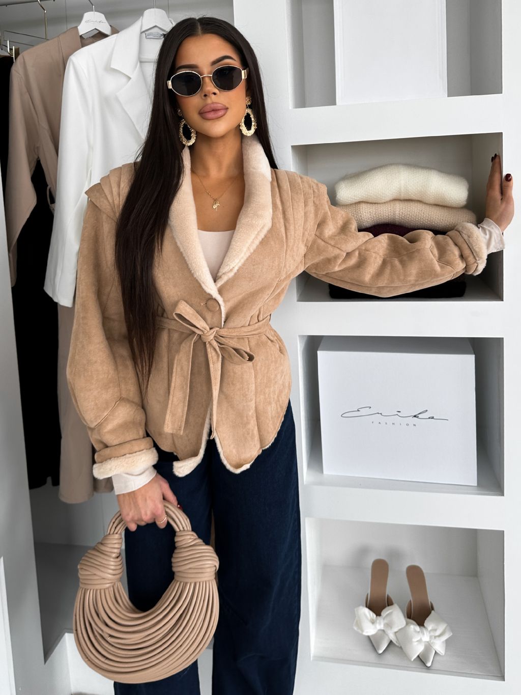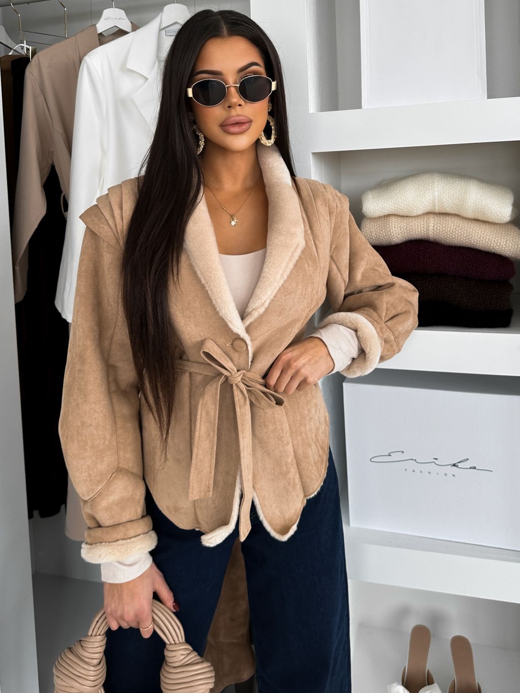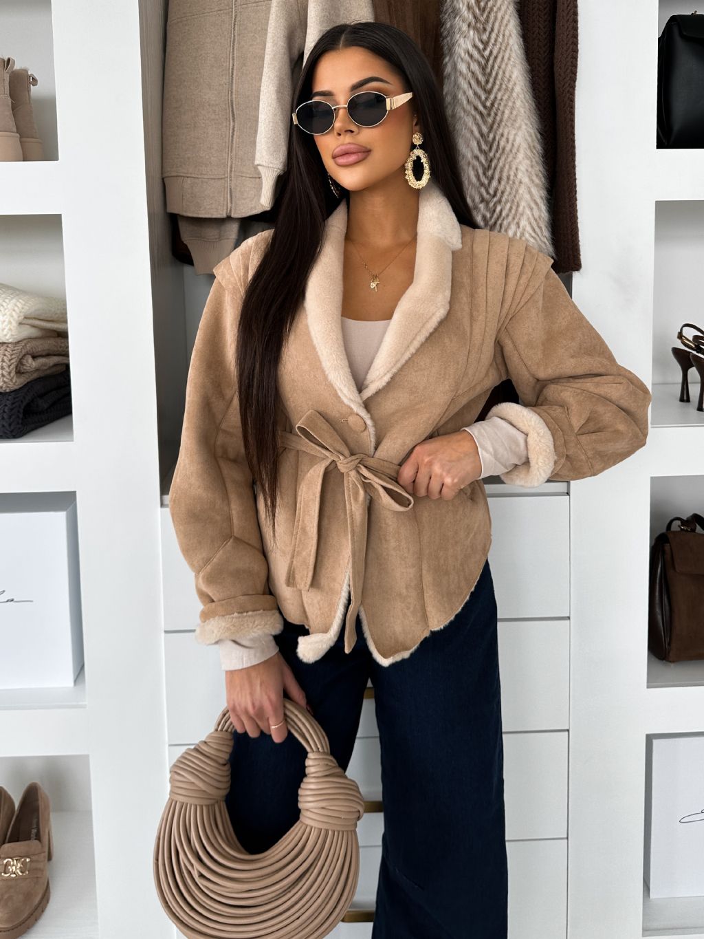 Béžová krátka vypasovaná bunda JORELLIN s kožúškom