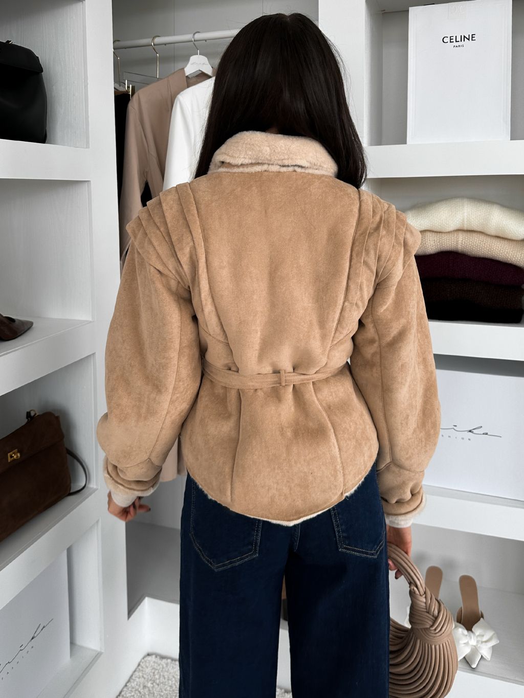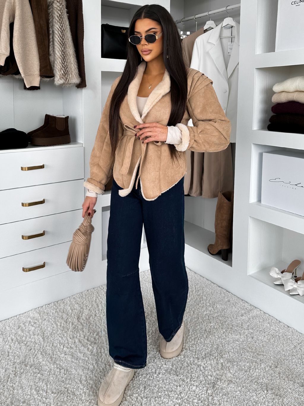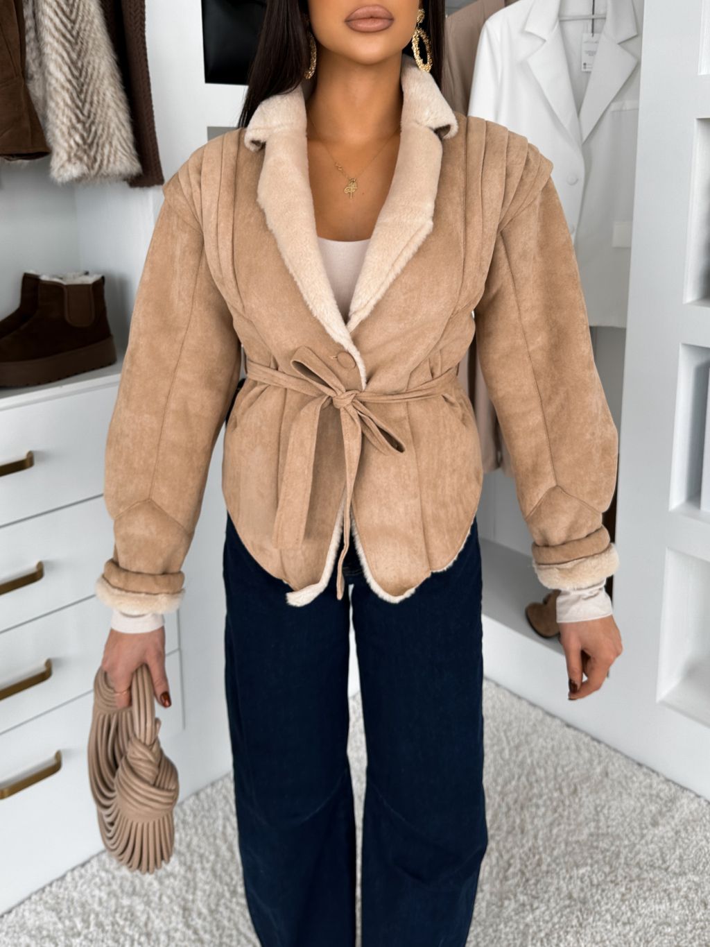 Béžová krátka vypasovaná bunda JORELLIN s kožúškom