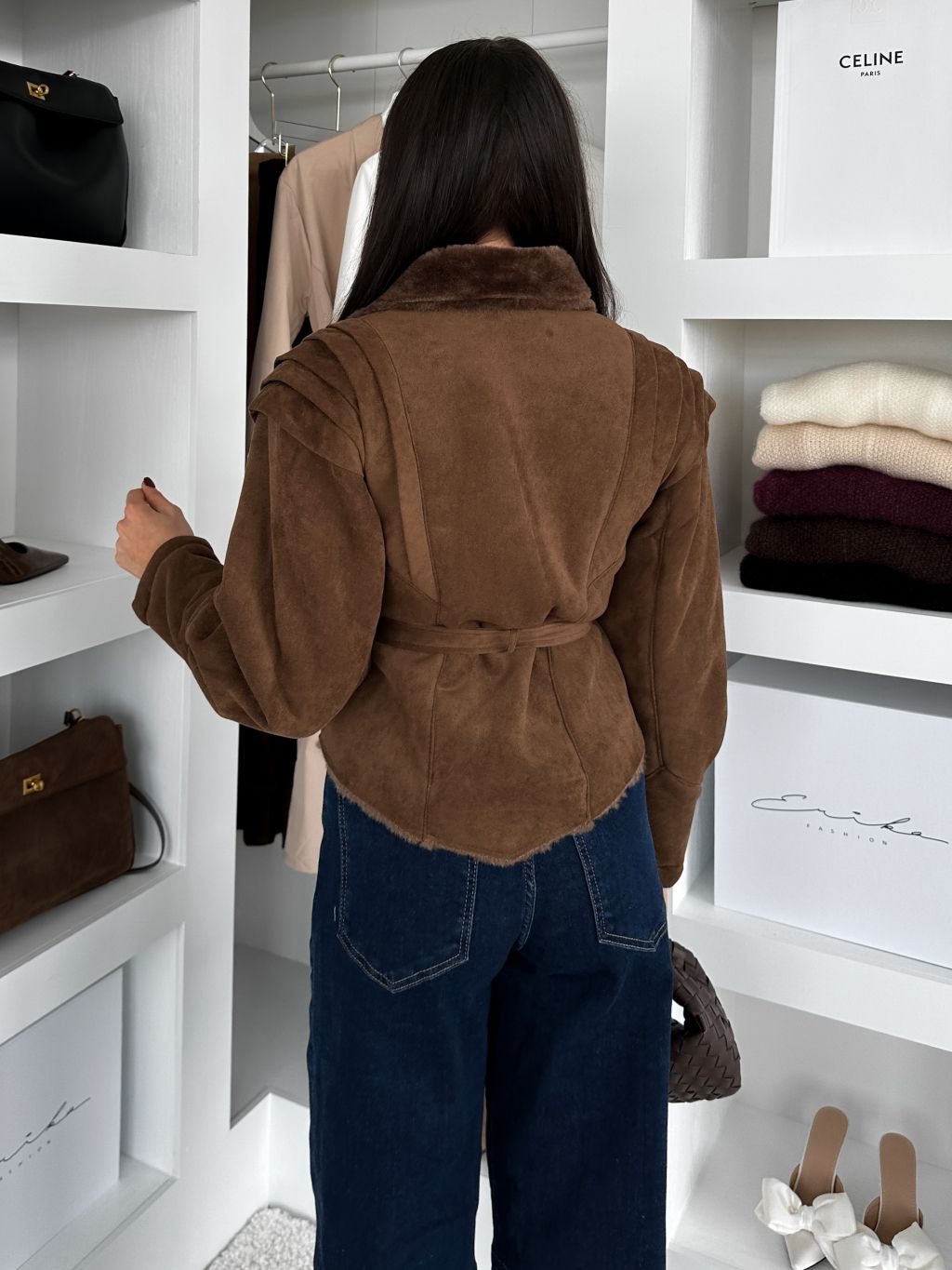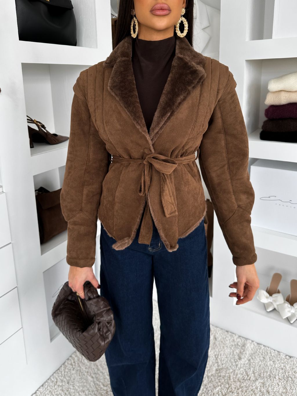 Hnedá krátka vypasovaná bunda JORELLIN s kožúškom