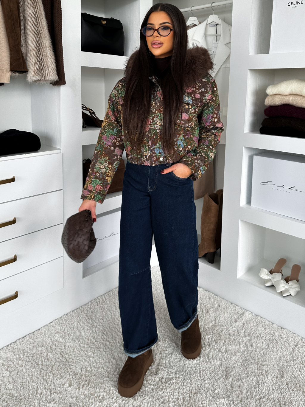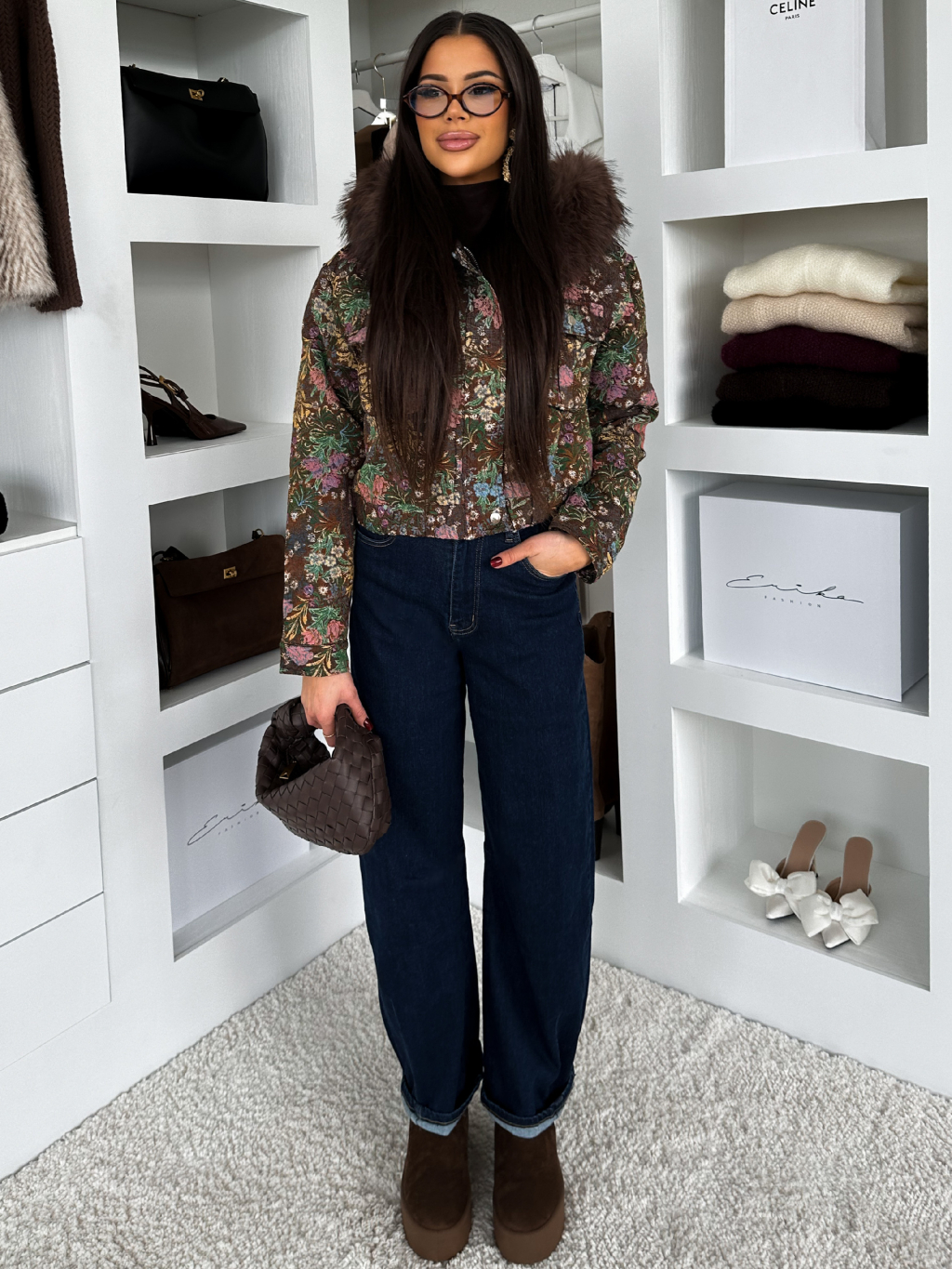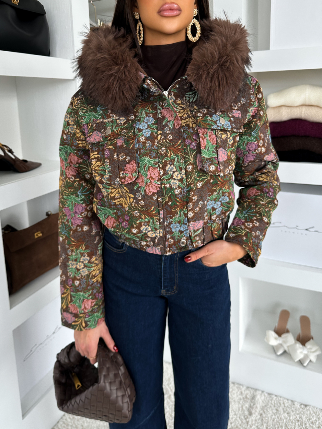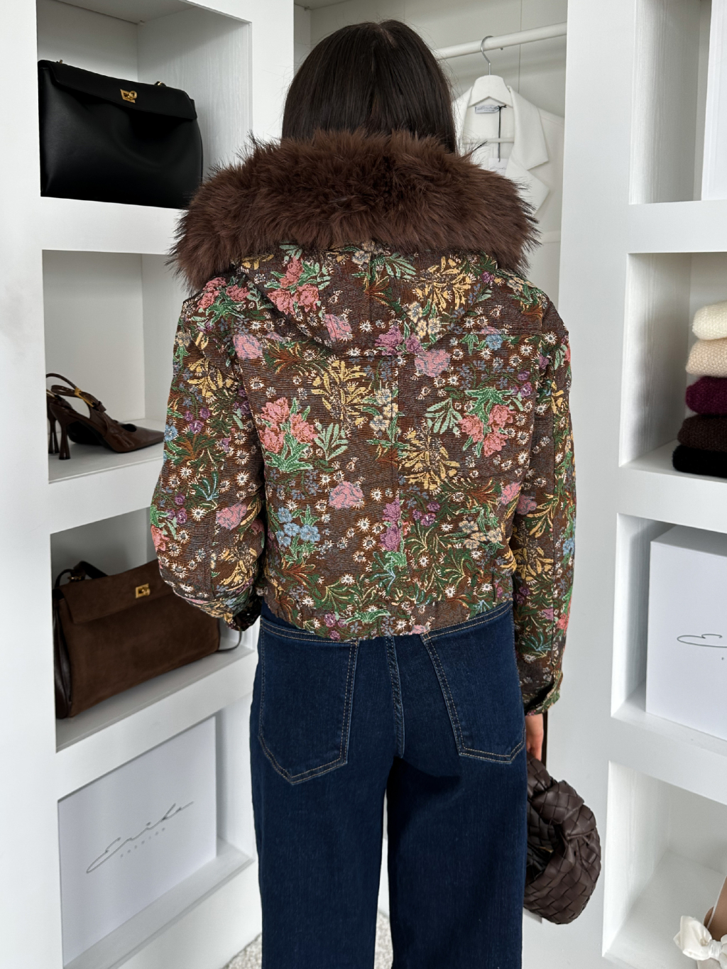 Hnedá prešívaná bunda MORIVEN s malými kvetmi