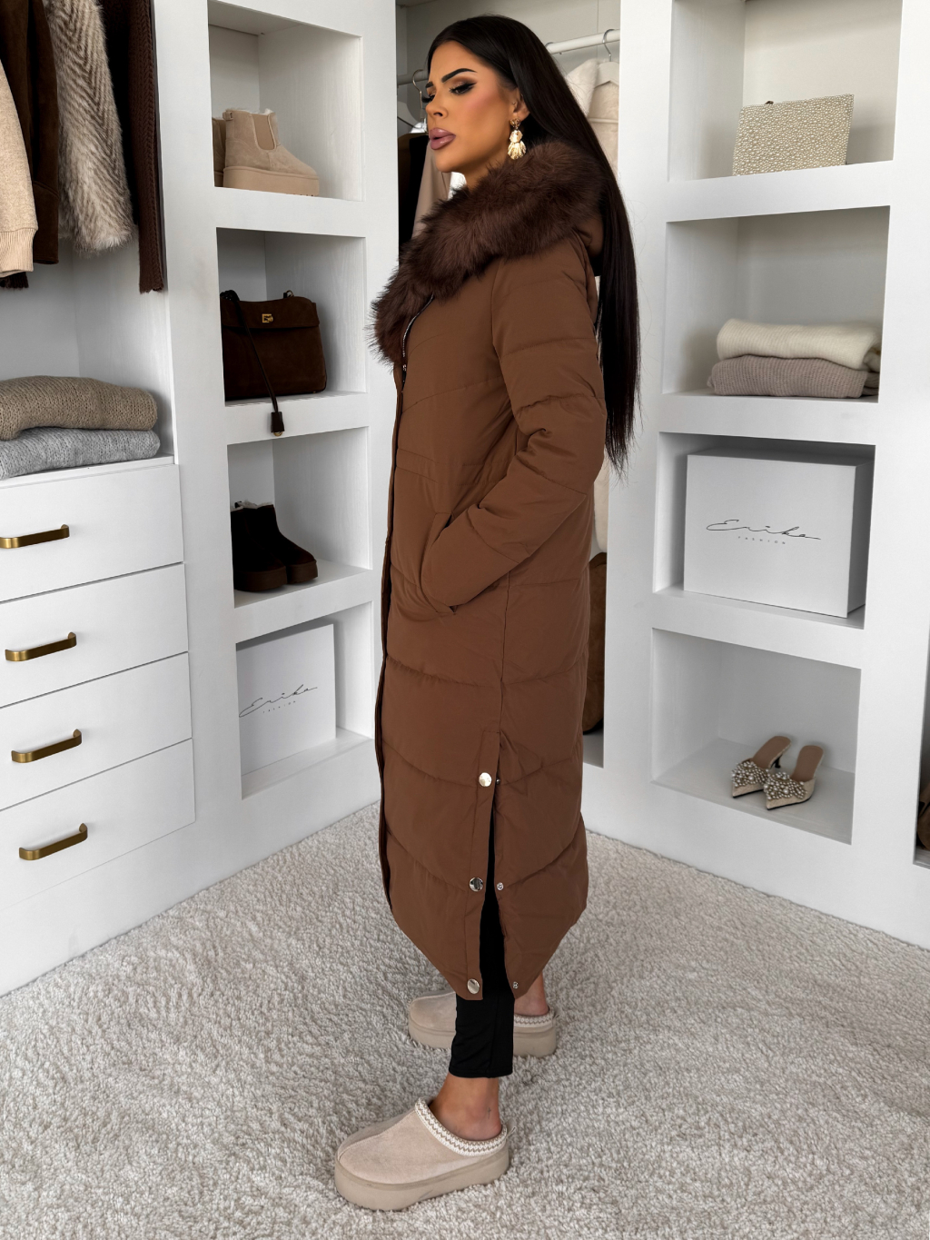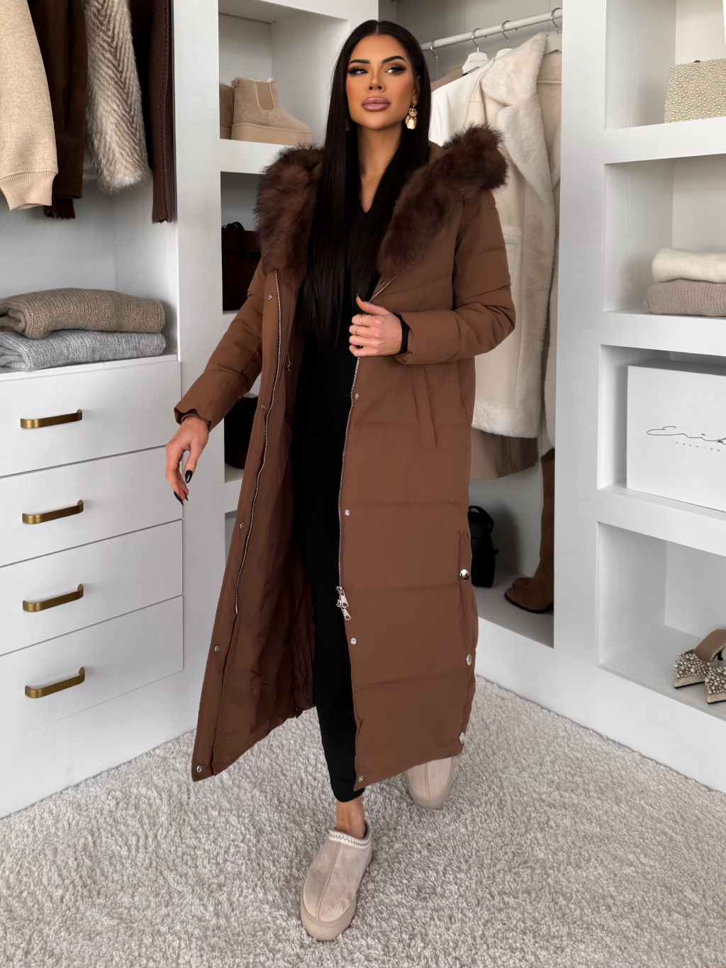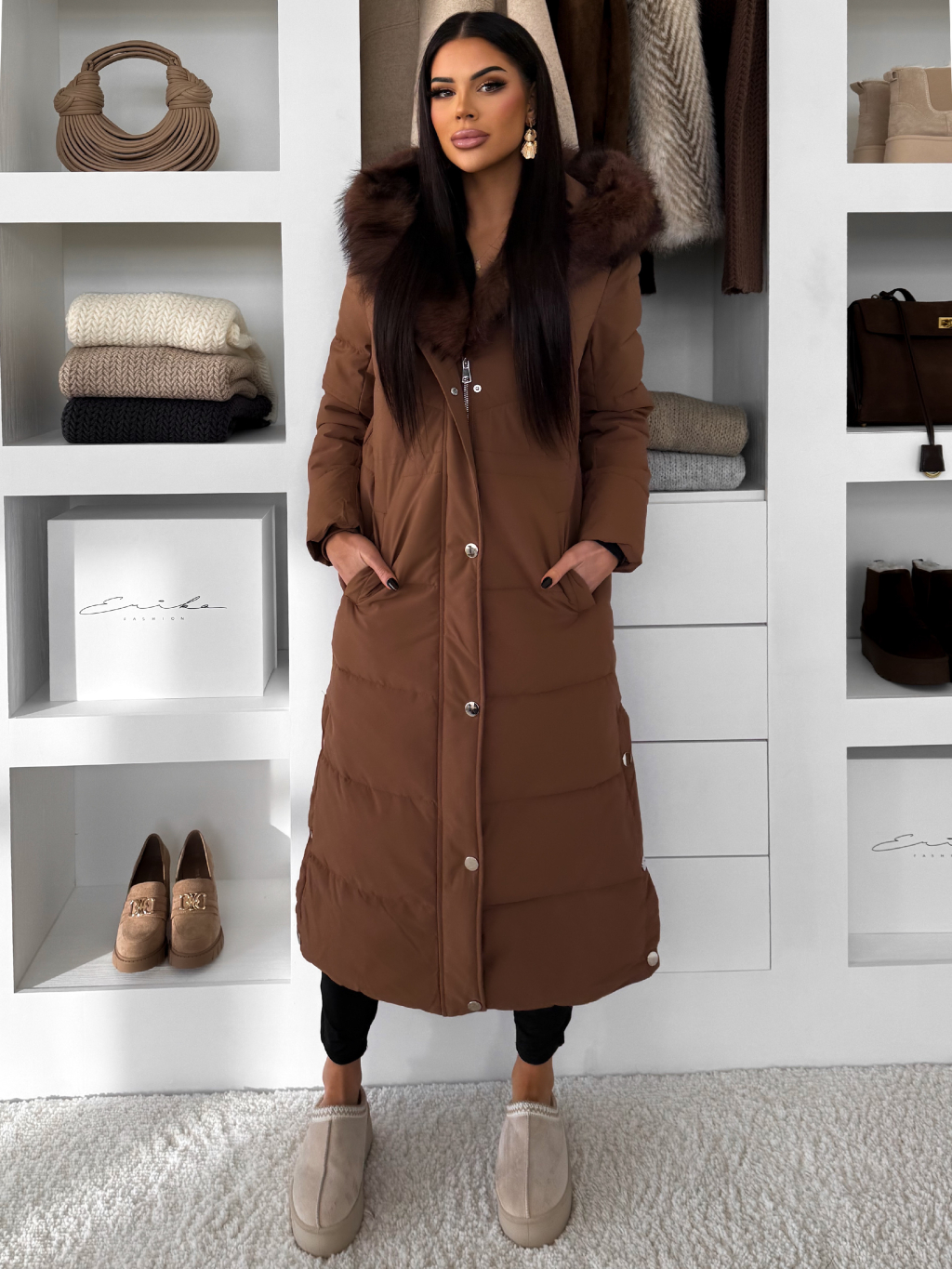 Hnedý dlhý zimný kabát bunda LUMIYA