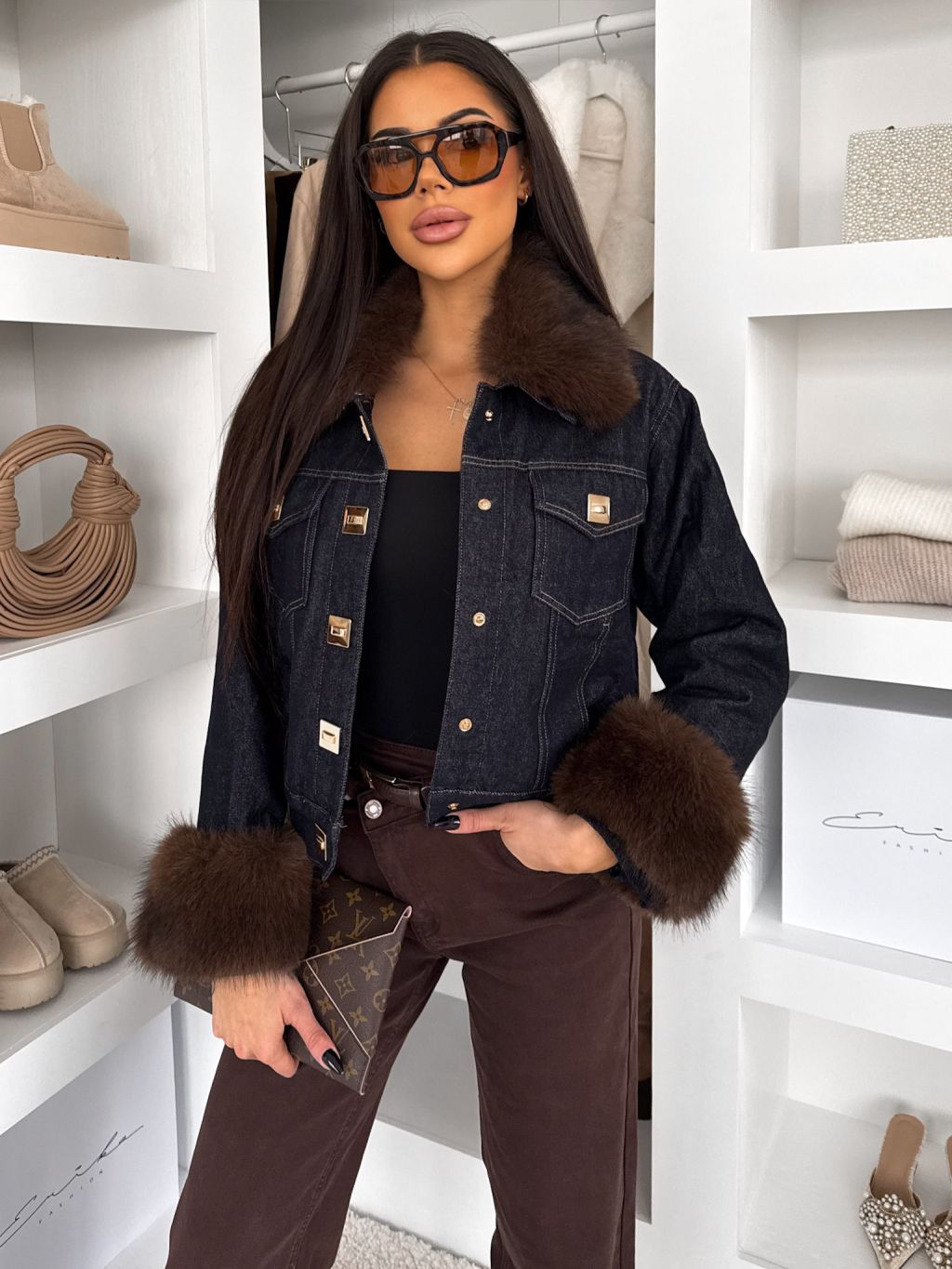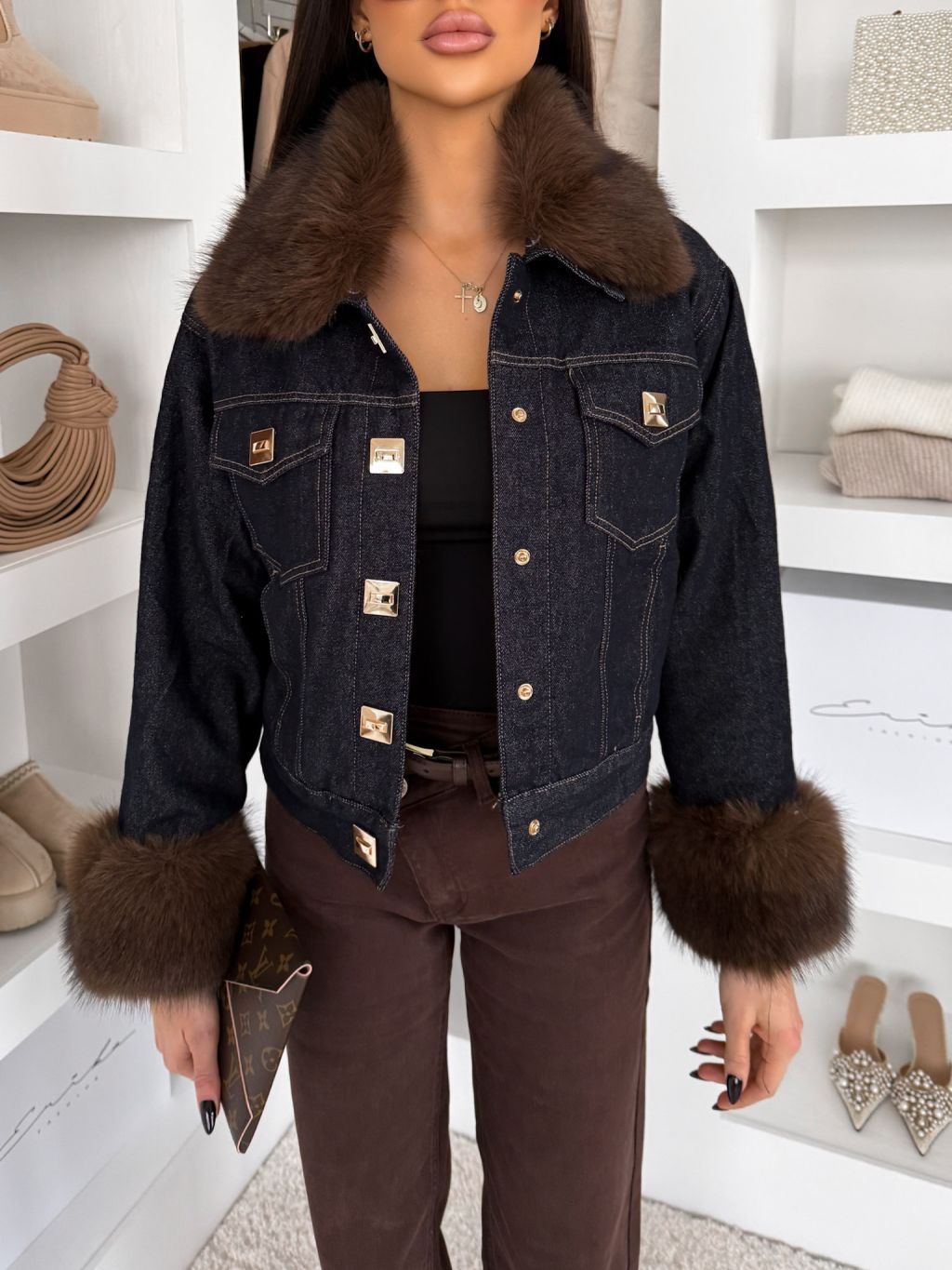 Modrá štýlová bunda GRUNGE s kožúškom