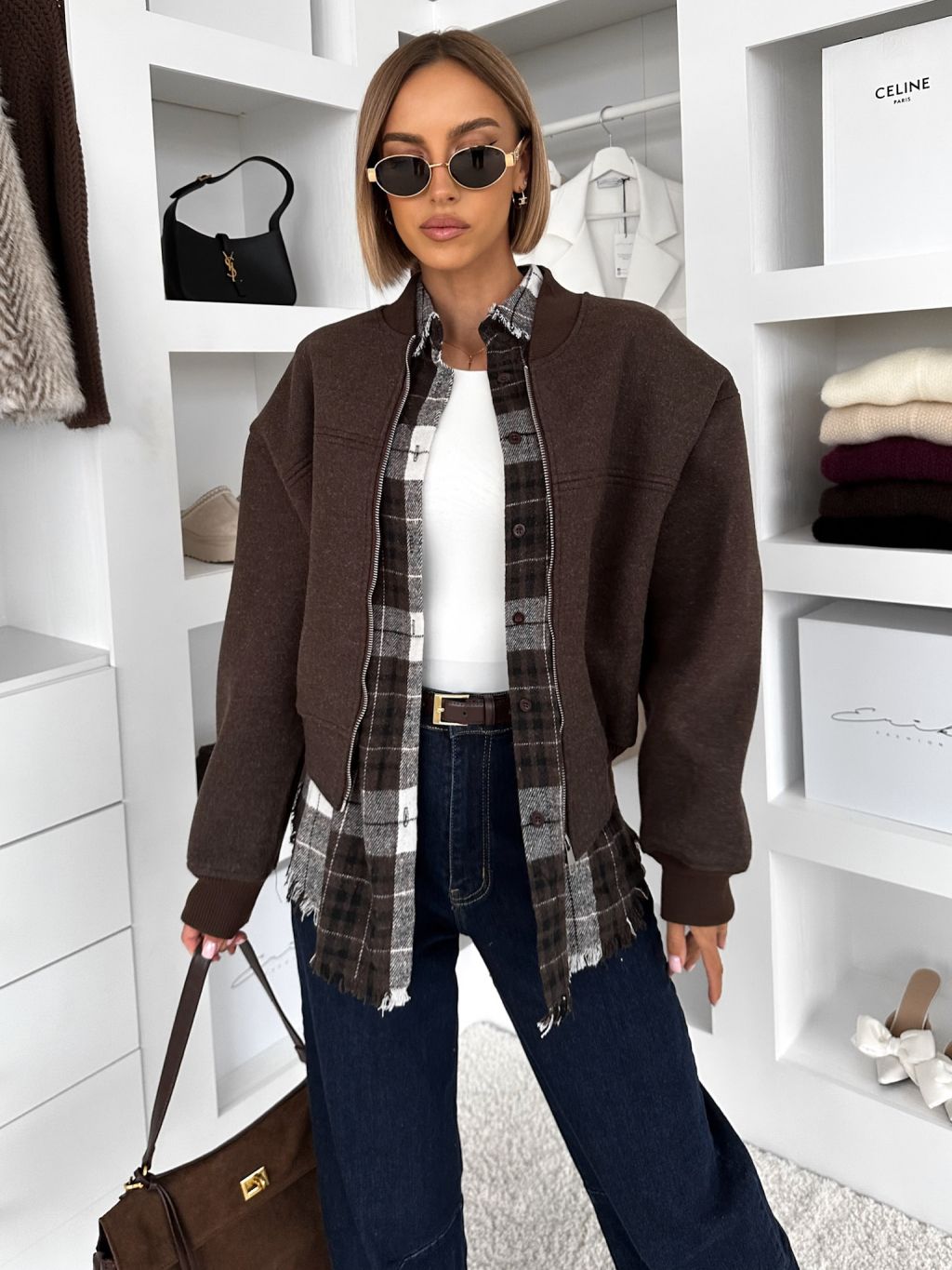 Tmavo hnedá krátka prechodná bundička bomber NOMURIA