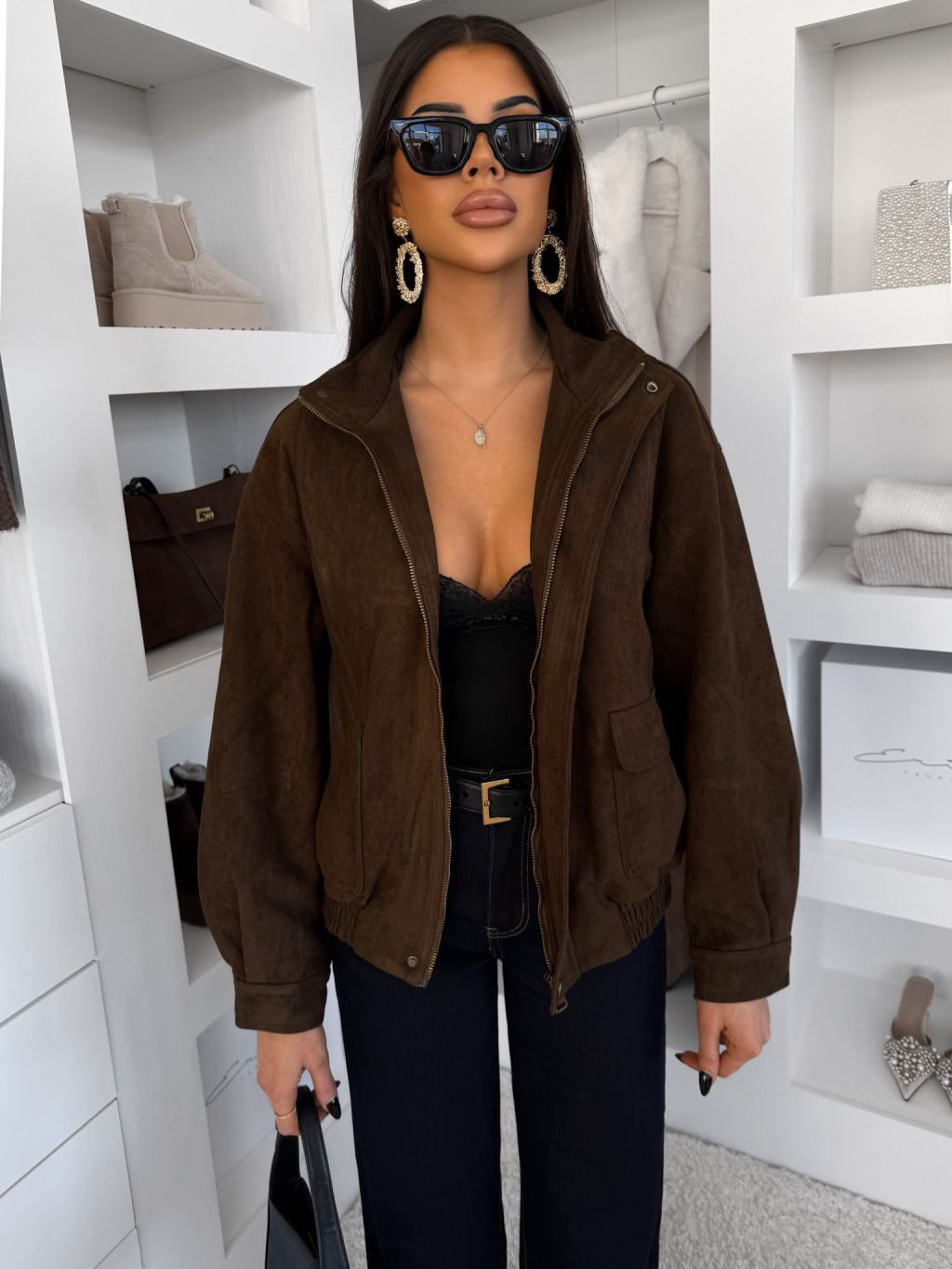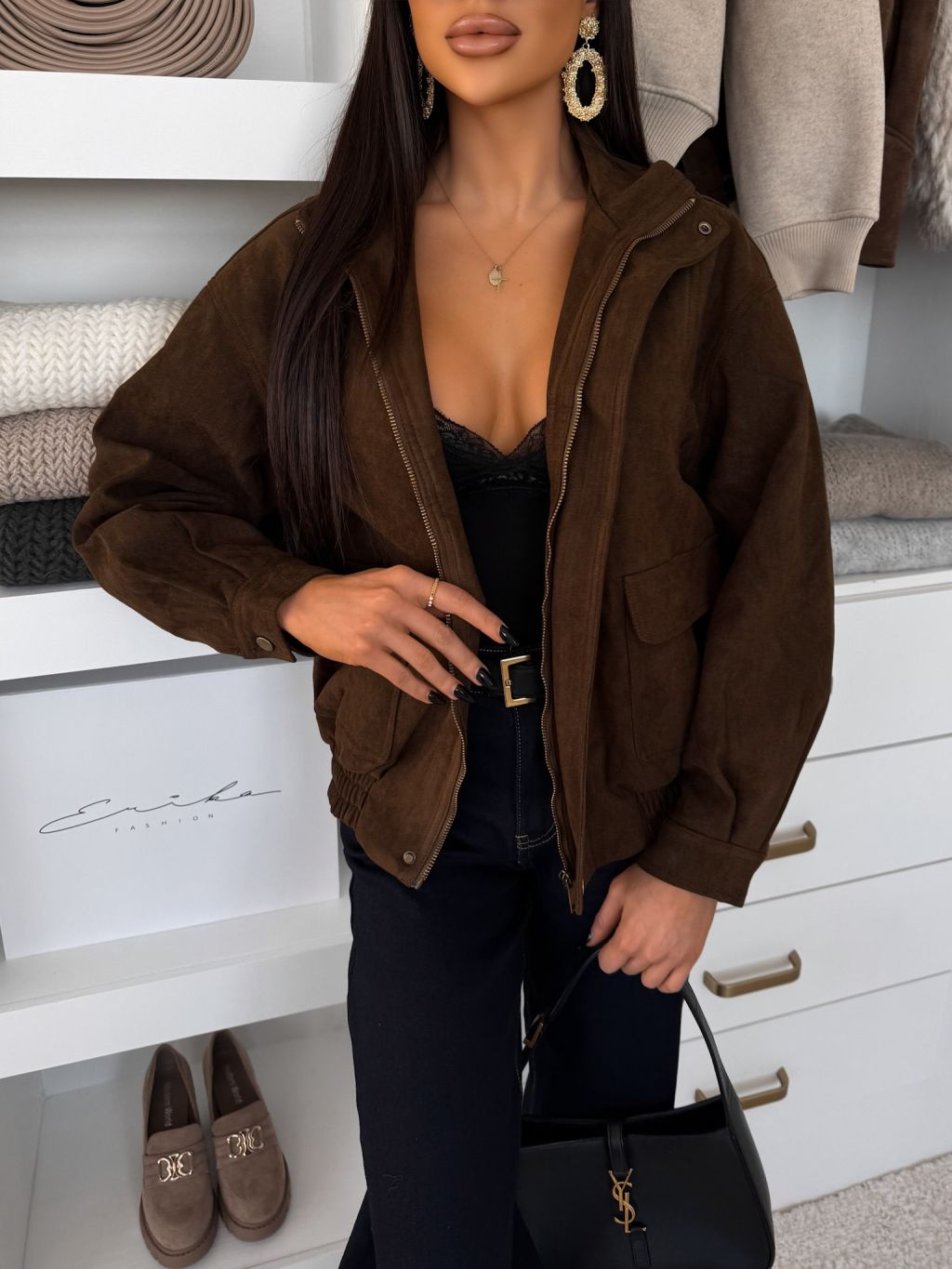 Tmavo hnedá semišová bunda SINORRA