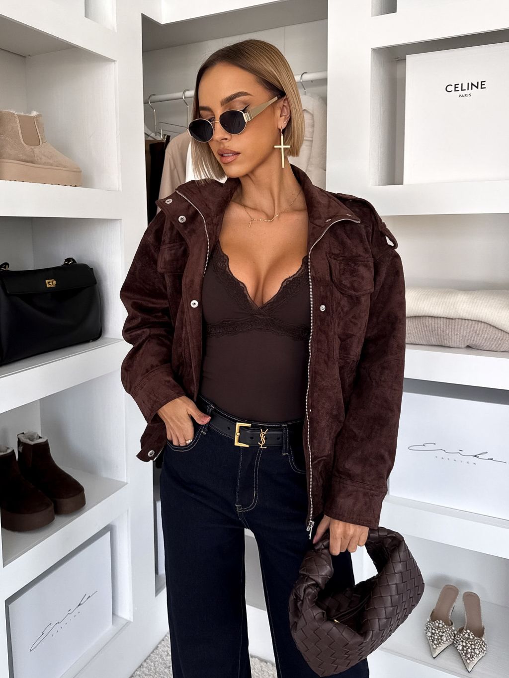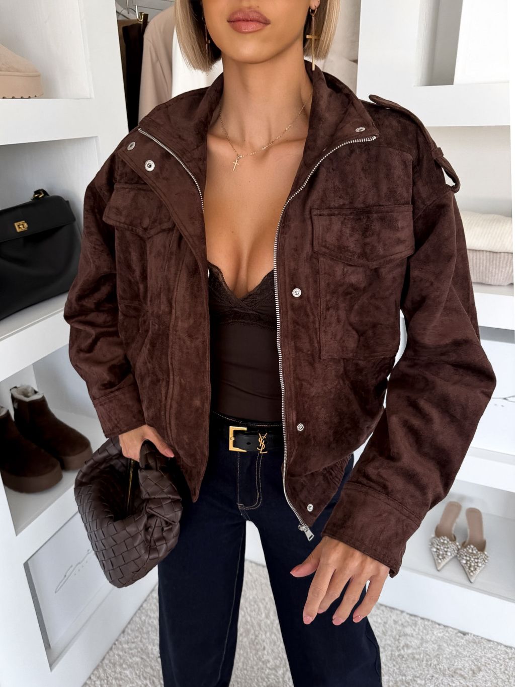 Tmavo hnedá semišová bunda TILUSEA