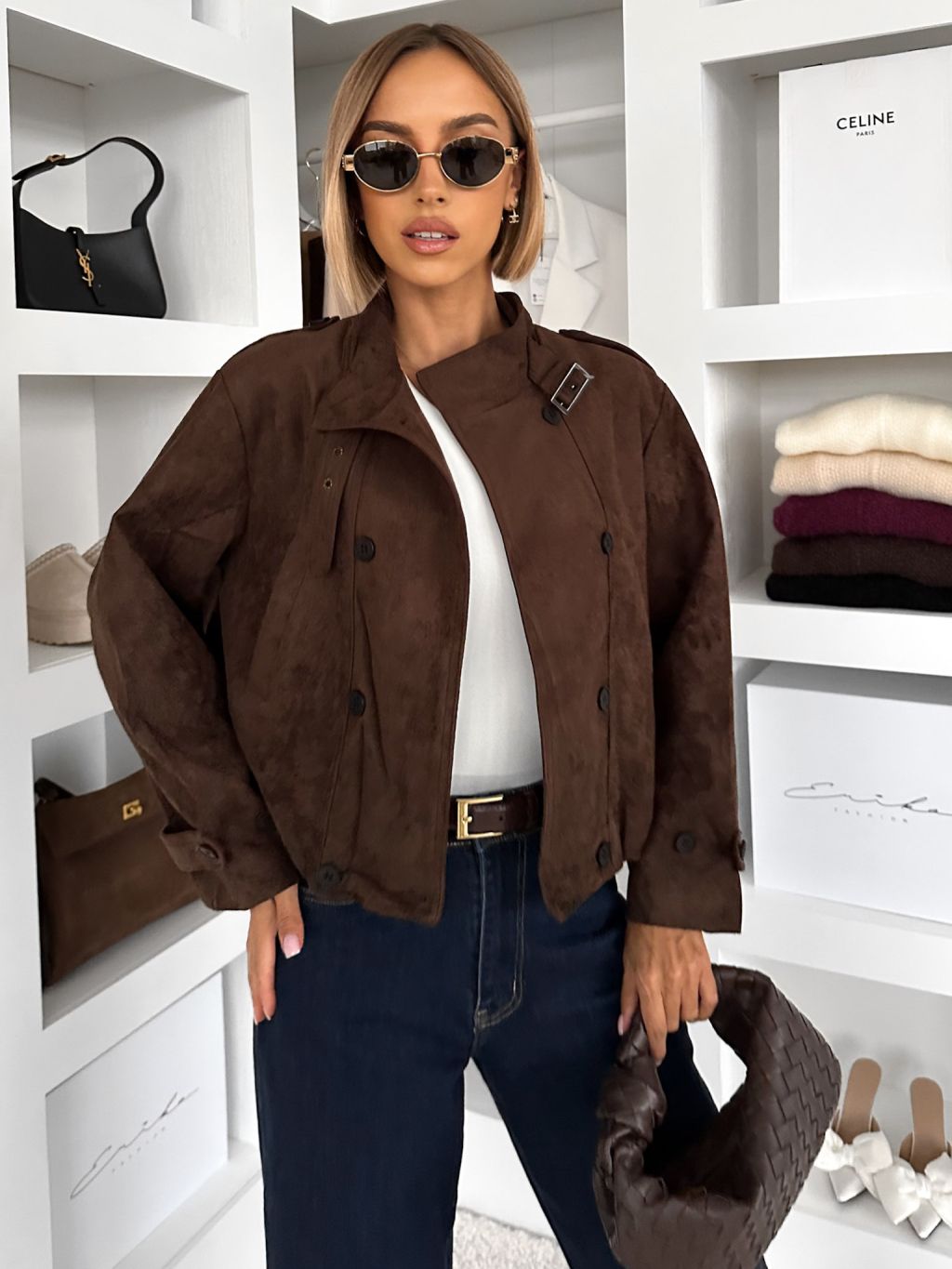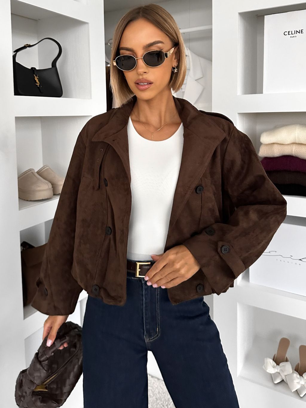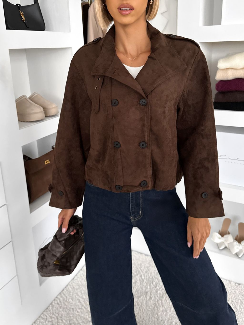 Tmavo hnedý semišový krátky kabátik RAVEANI