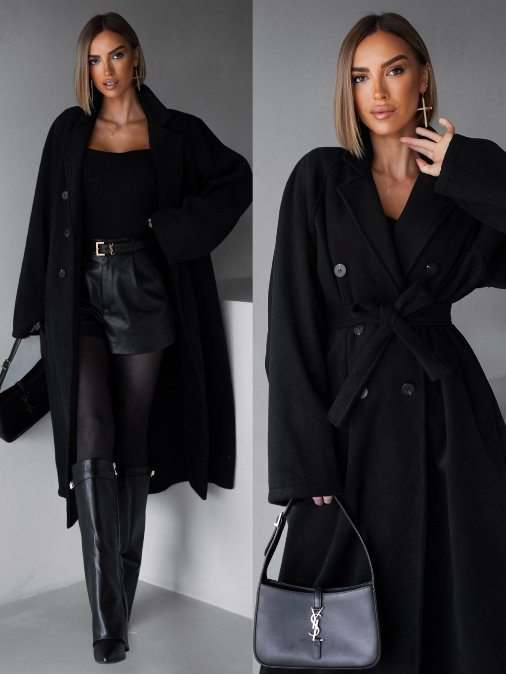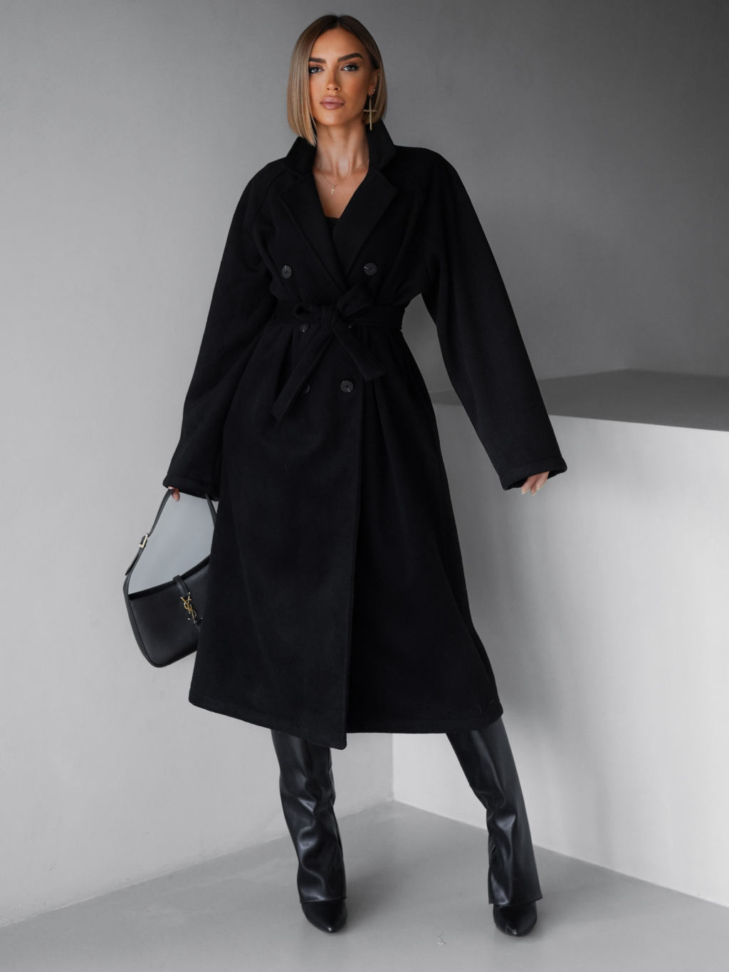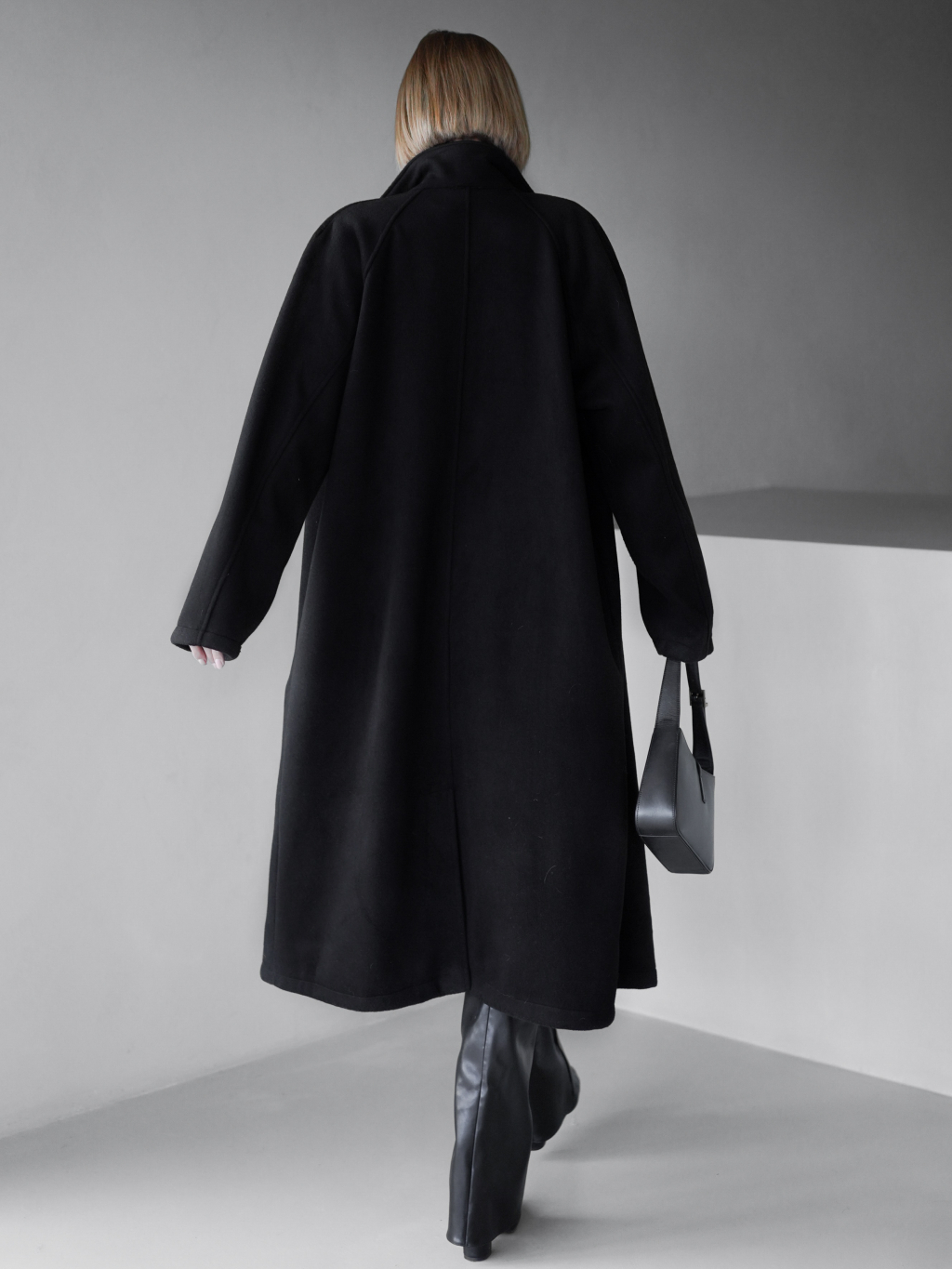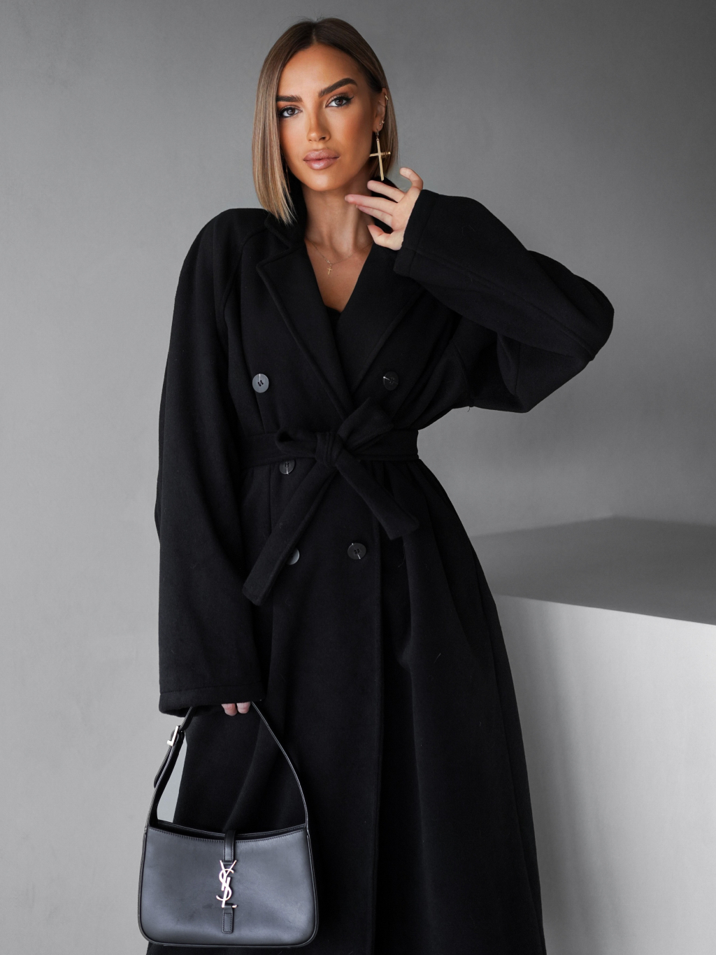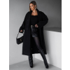 Čierny dlhý flaušový kabát KERRYL s gombíkmi