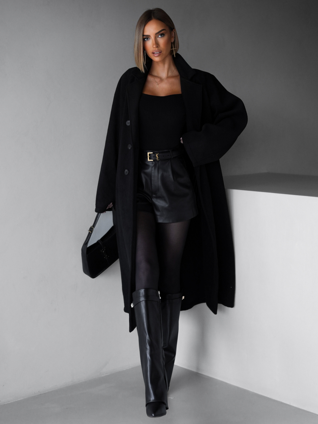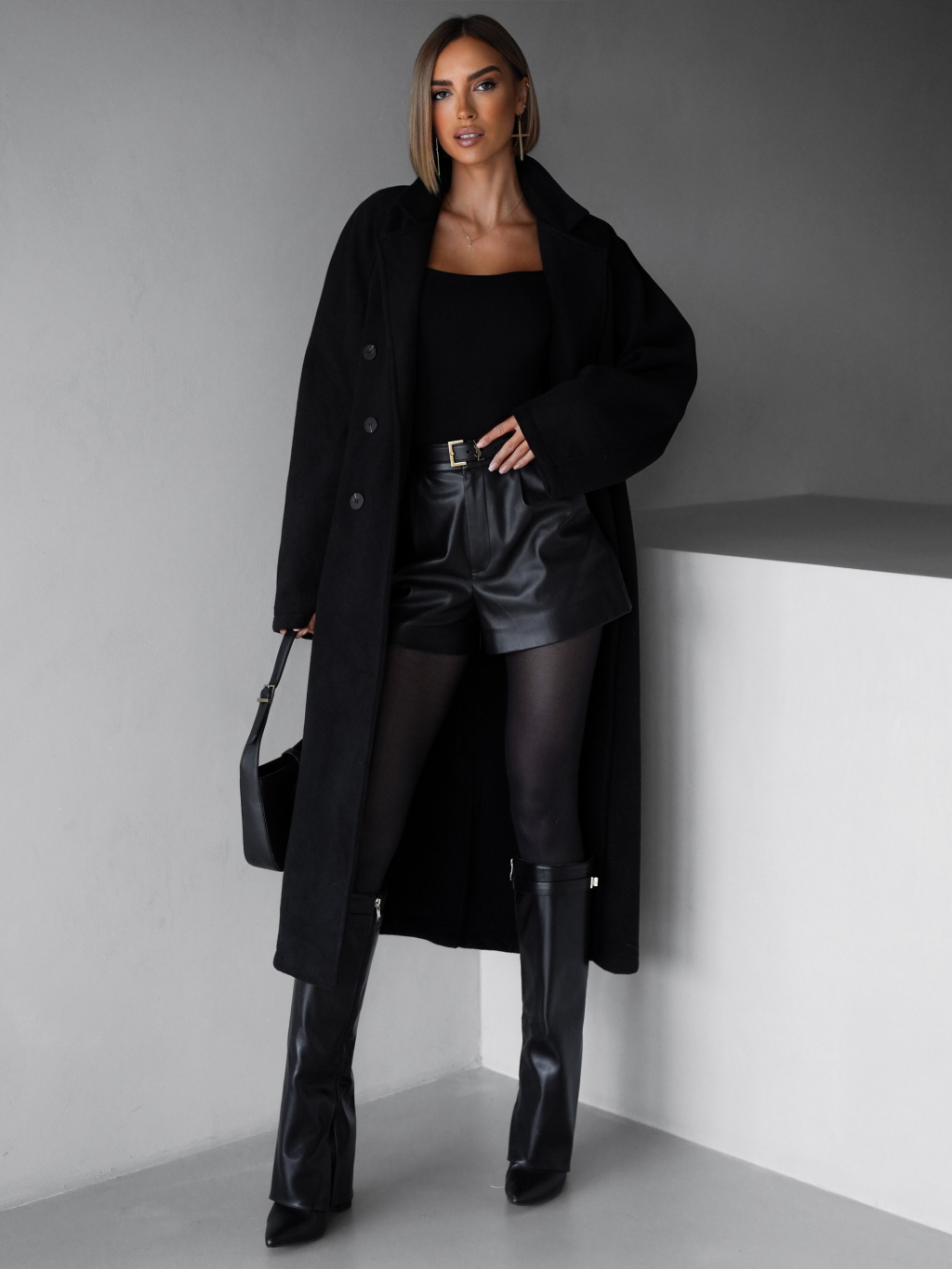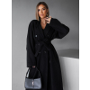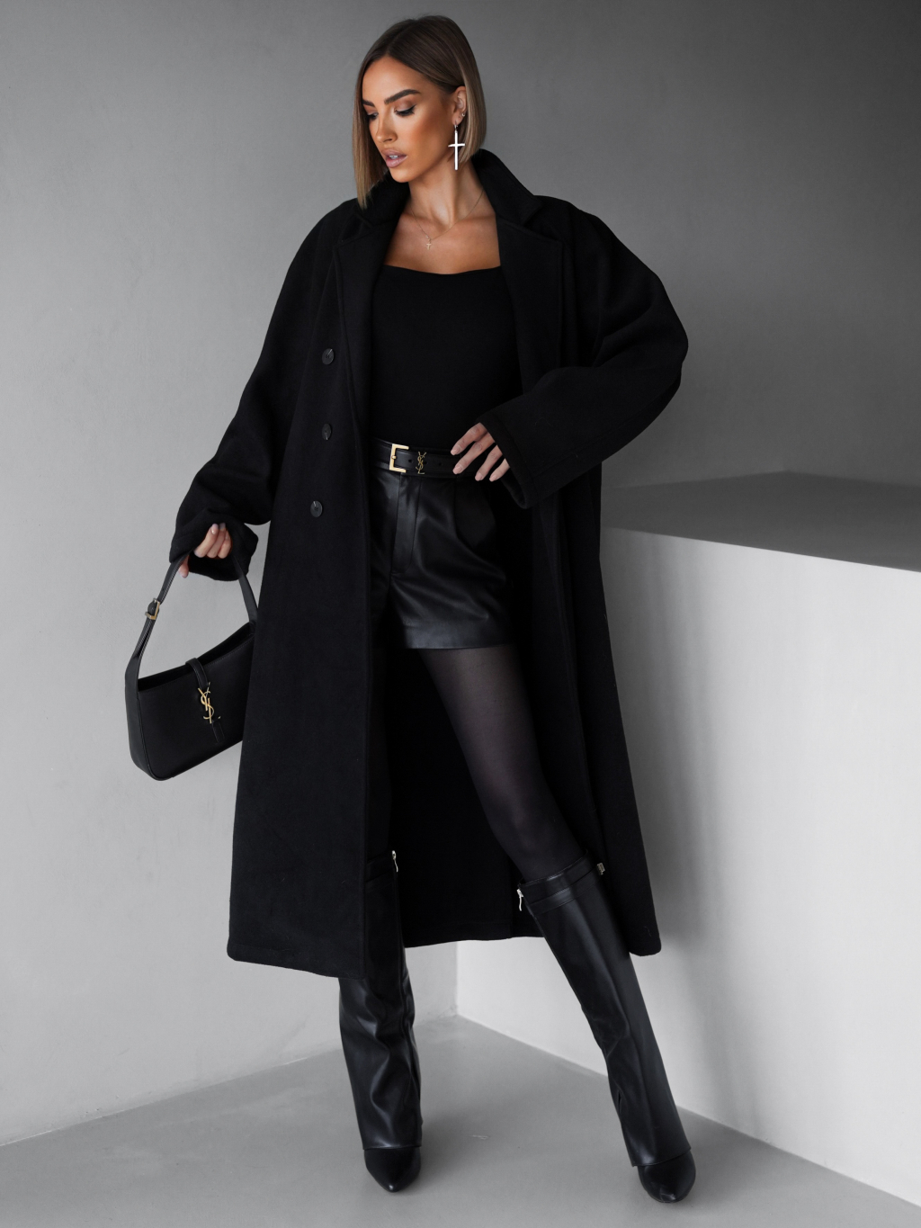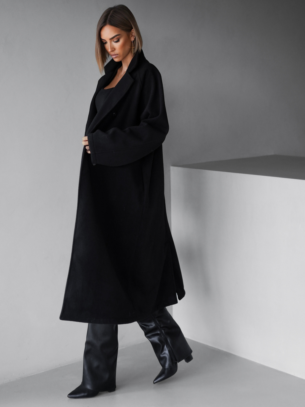 Čierny dlhý flaušový kabát KERRYL s gombíkmi