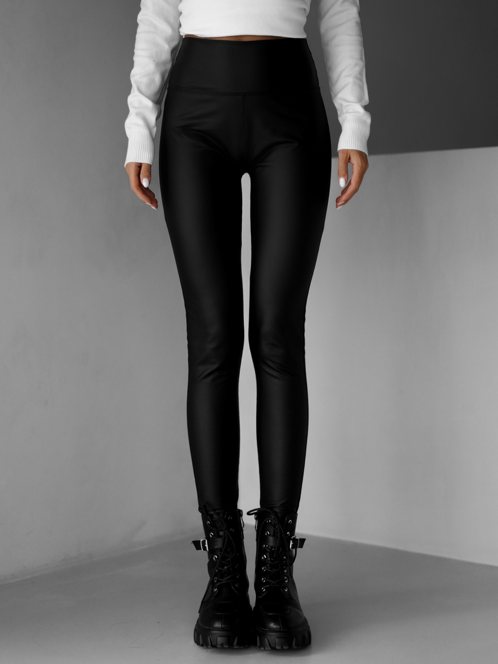 Čierne koženkové basic legíny ALOCA