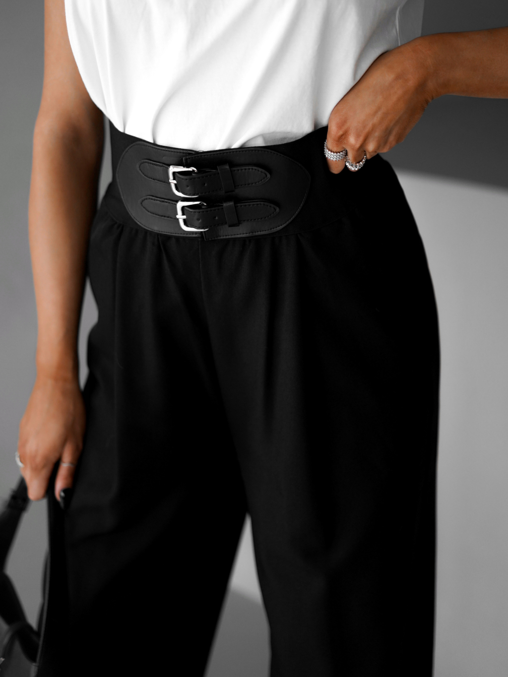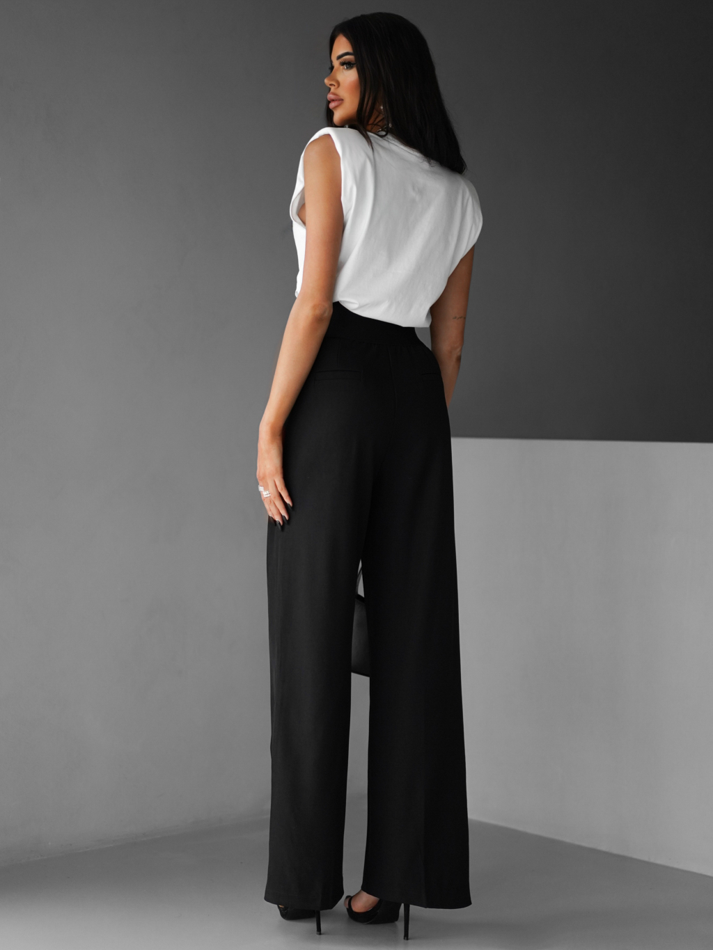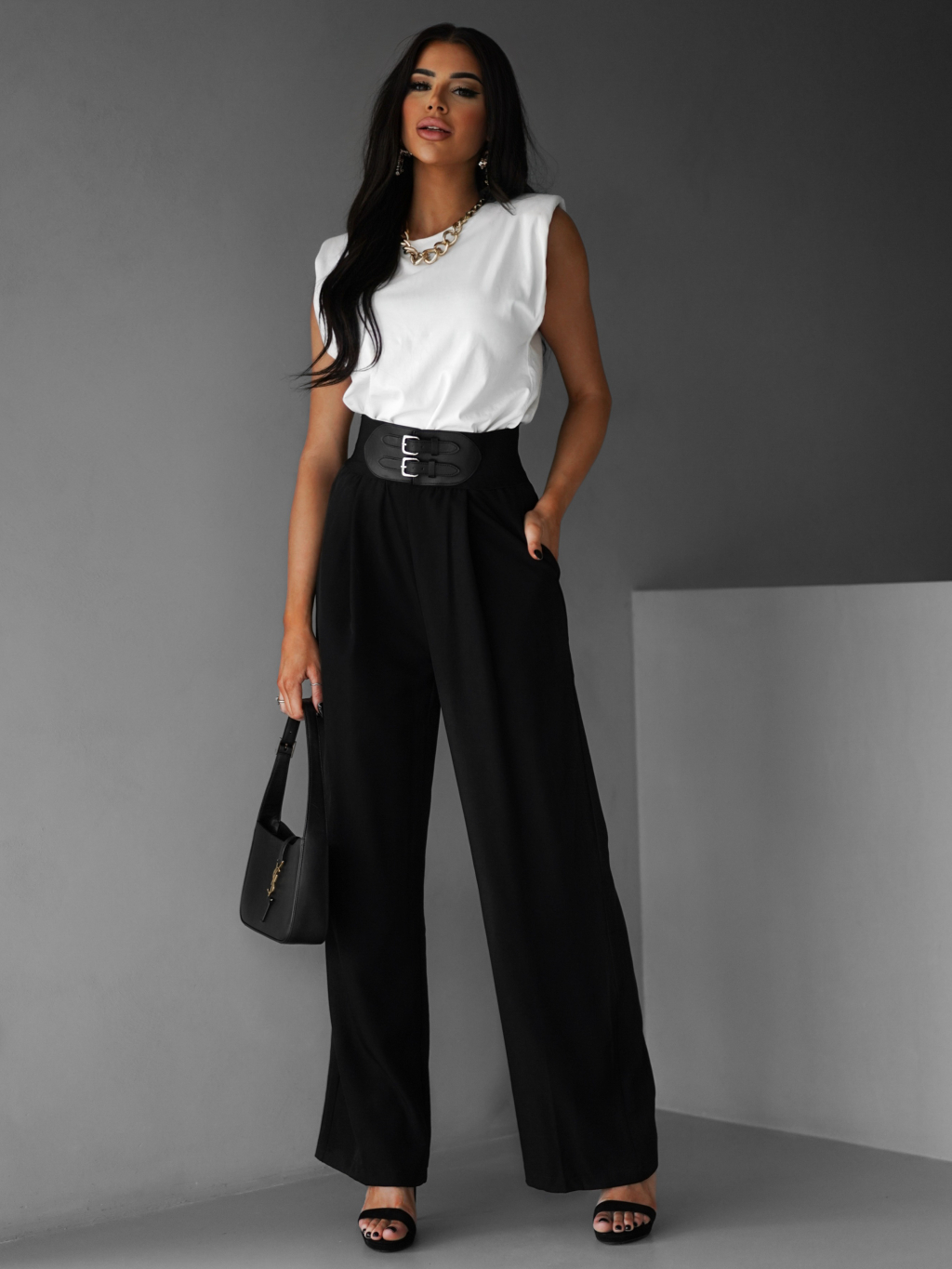 Čierne široké elegantné nohavice DONATELLA s opaskom