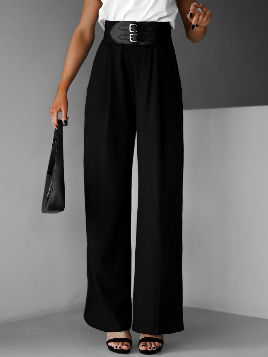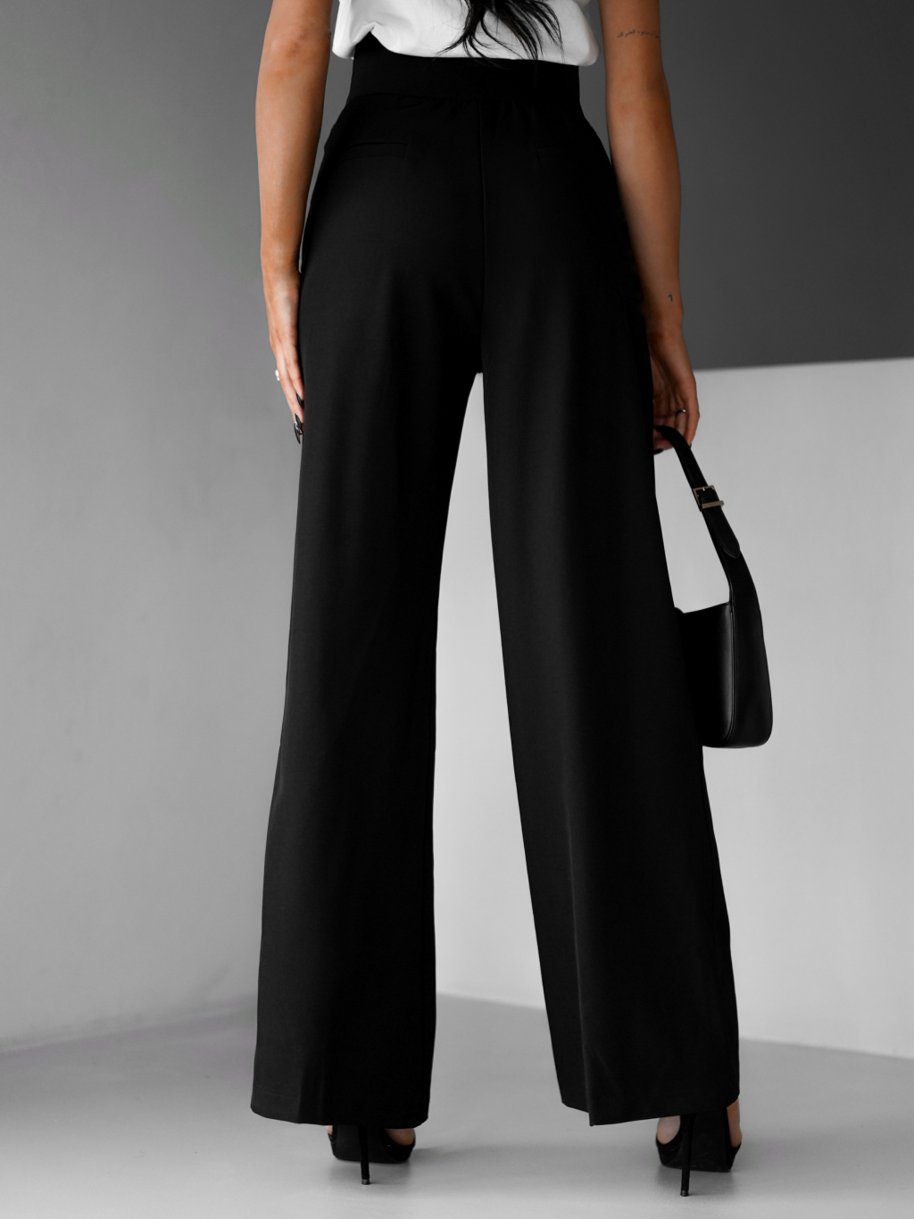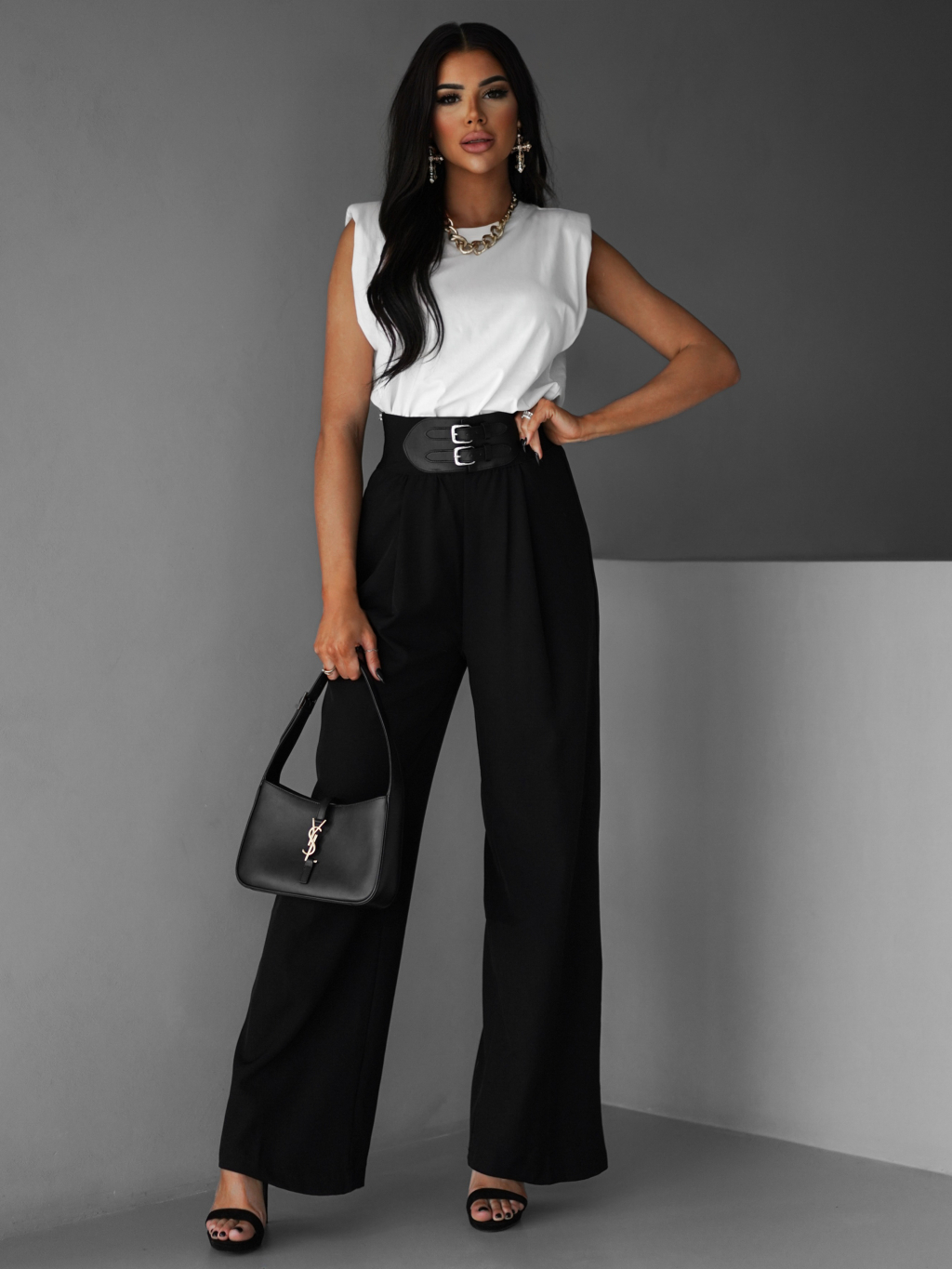 Čierne široké elegantné nohavice DONATELLA s opaskom