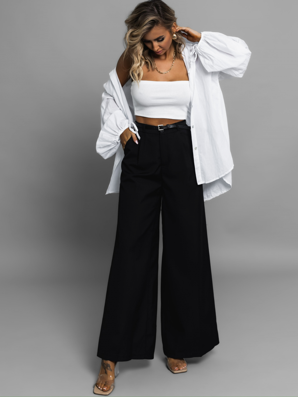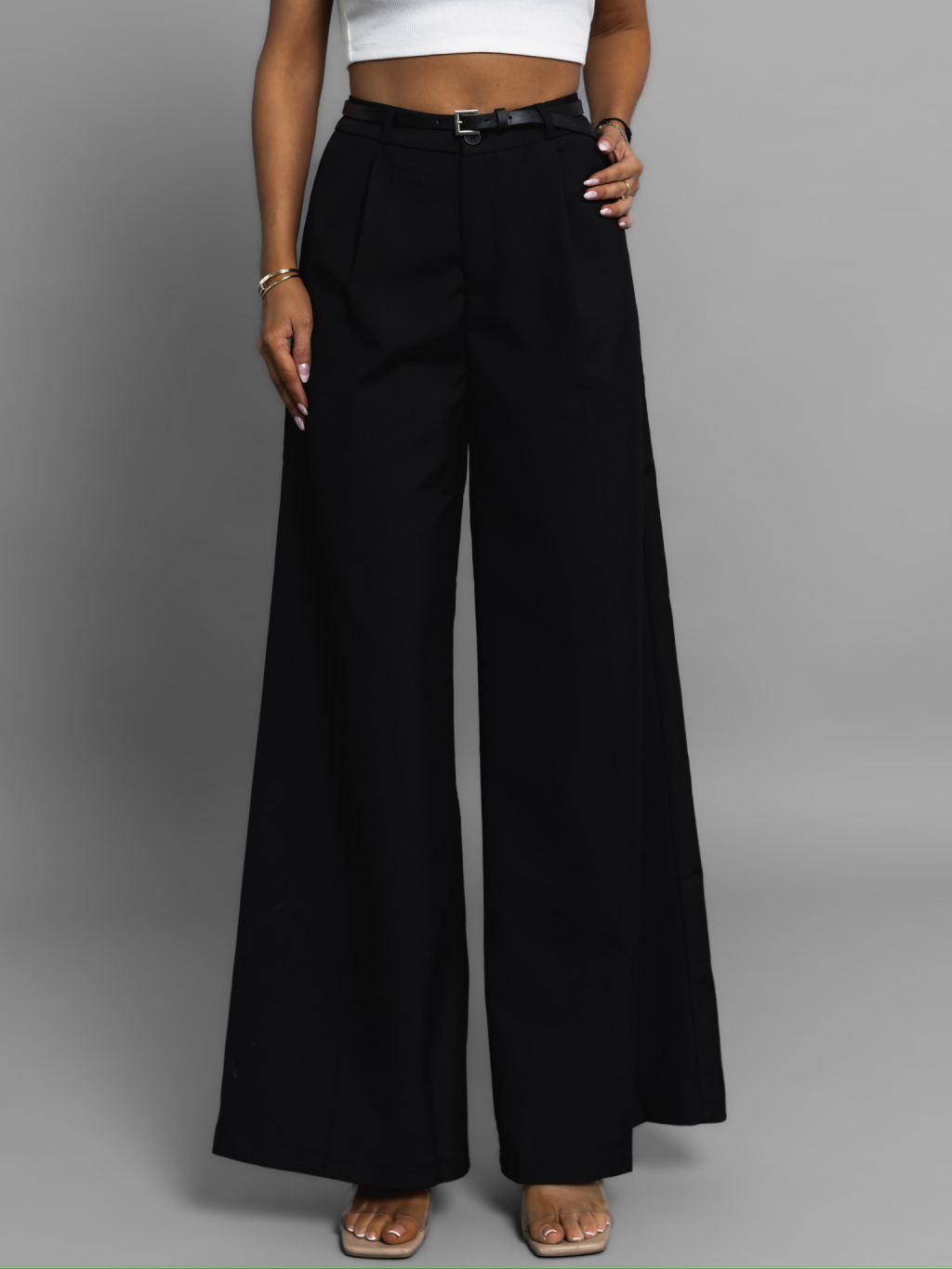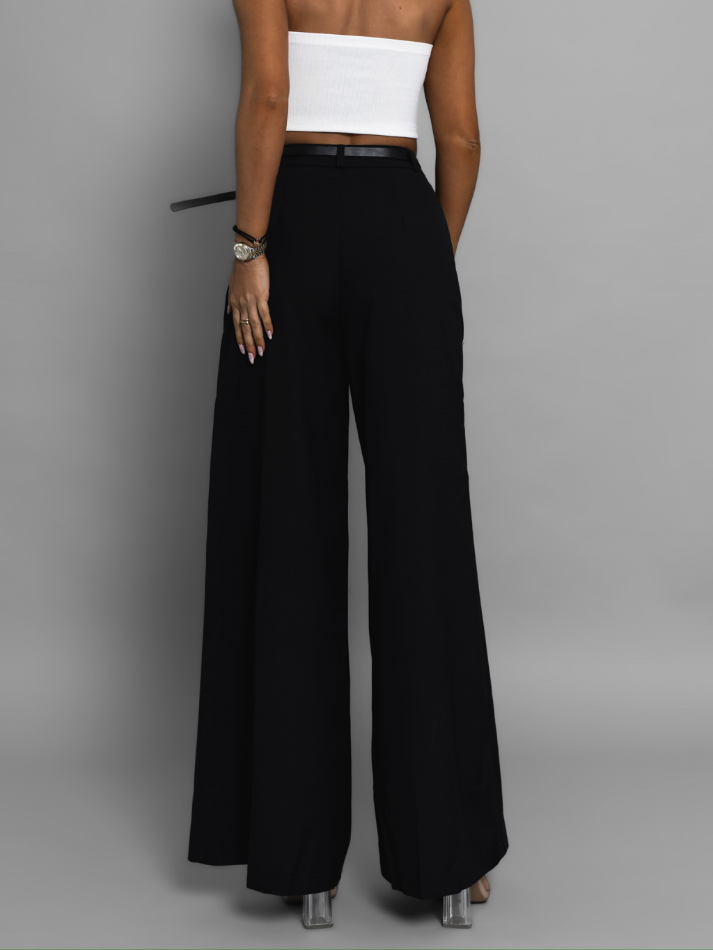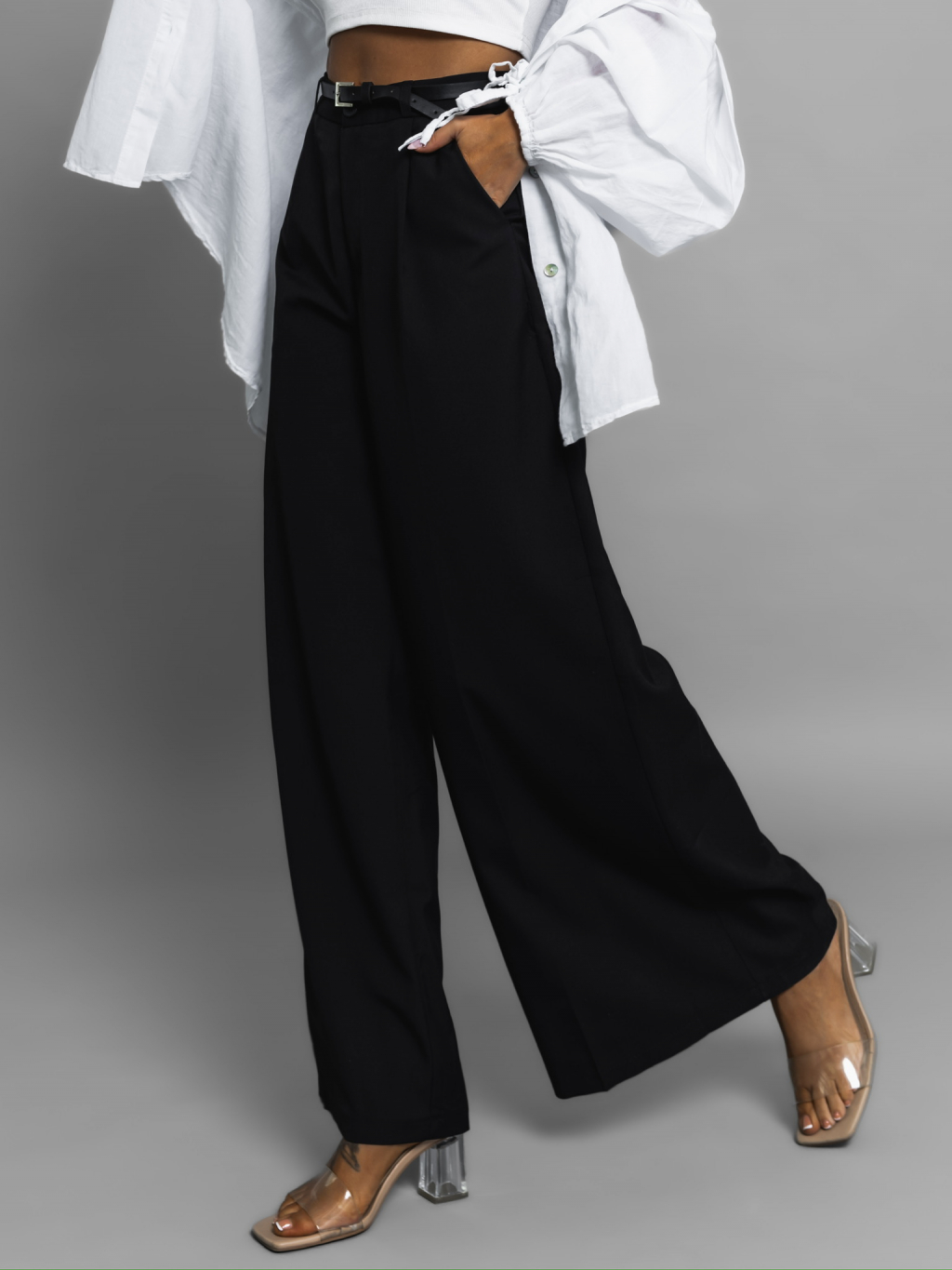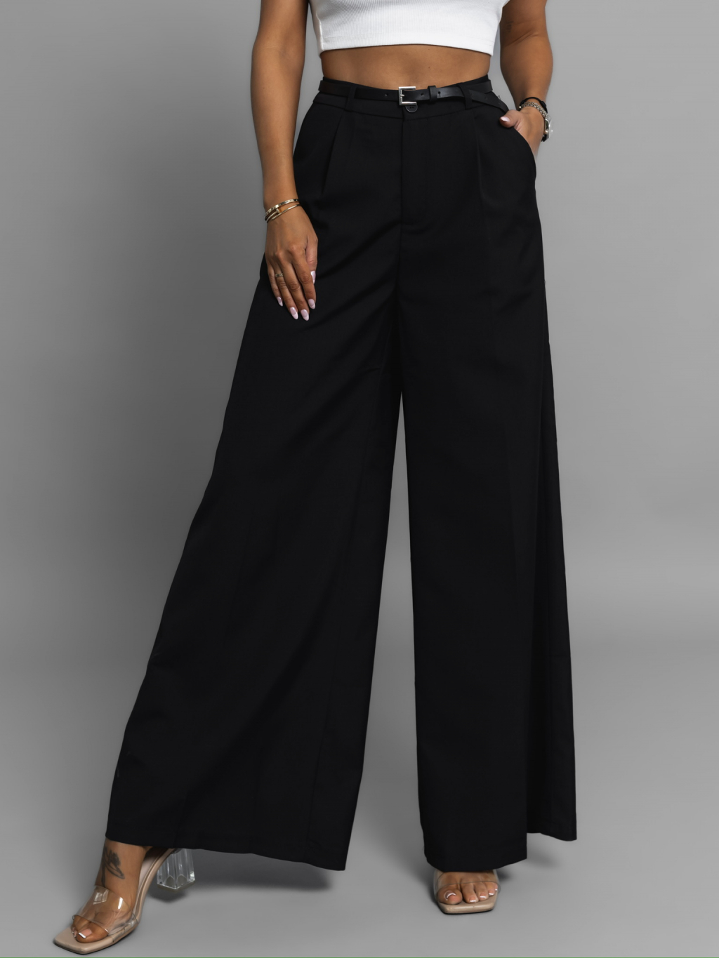 Čierne spoločenské široké nohavice BERGAMOT s opaskom