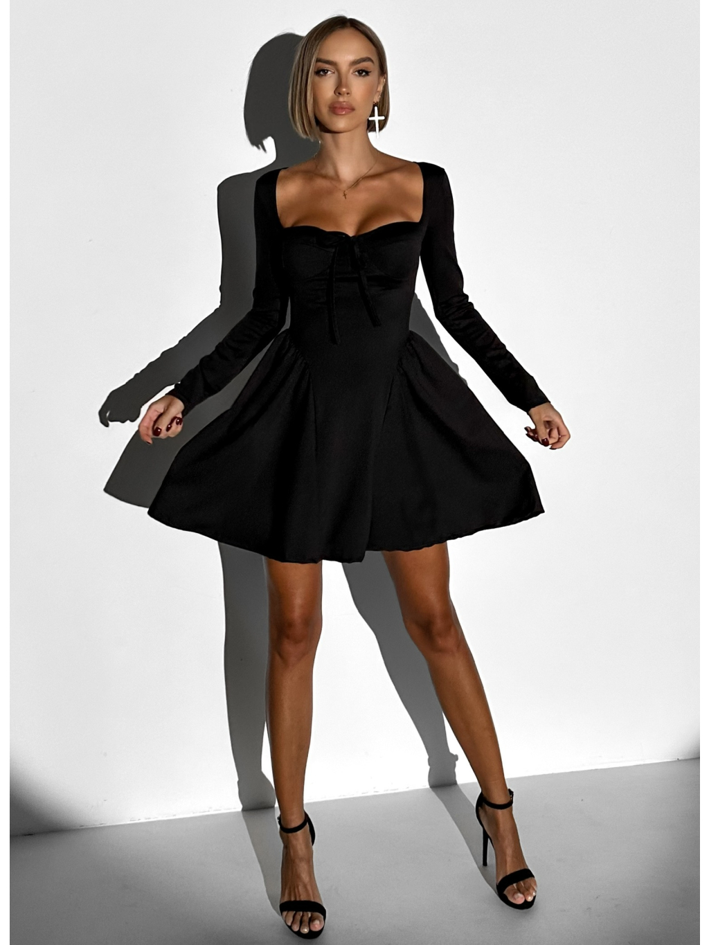 Čierne áčkové šaty VANGIE s dlhým rukávom