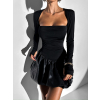 Čierne balónové šaty PIETER s koženkovou sukňou