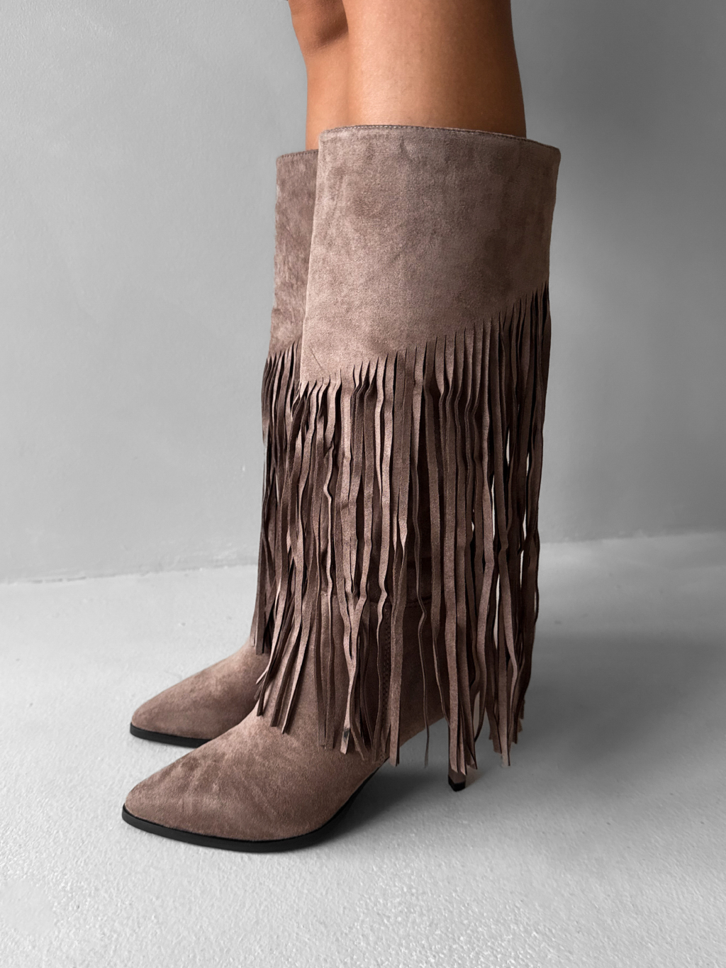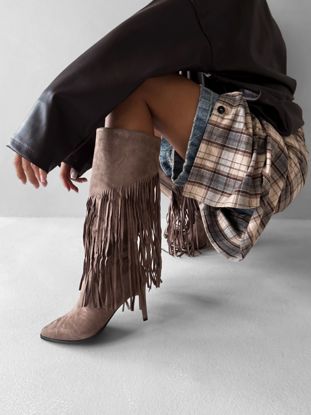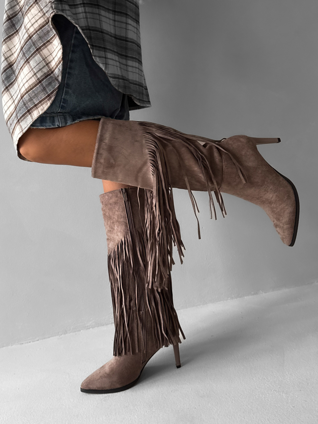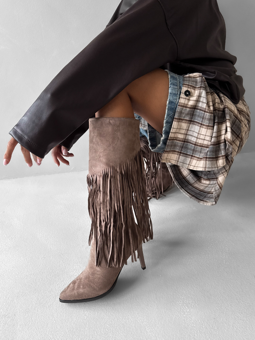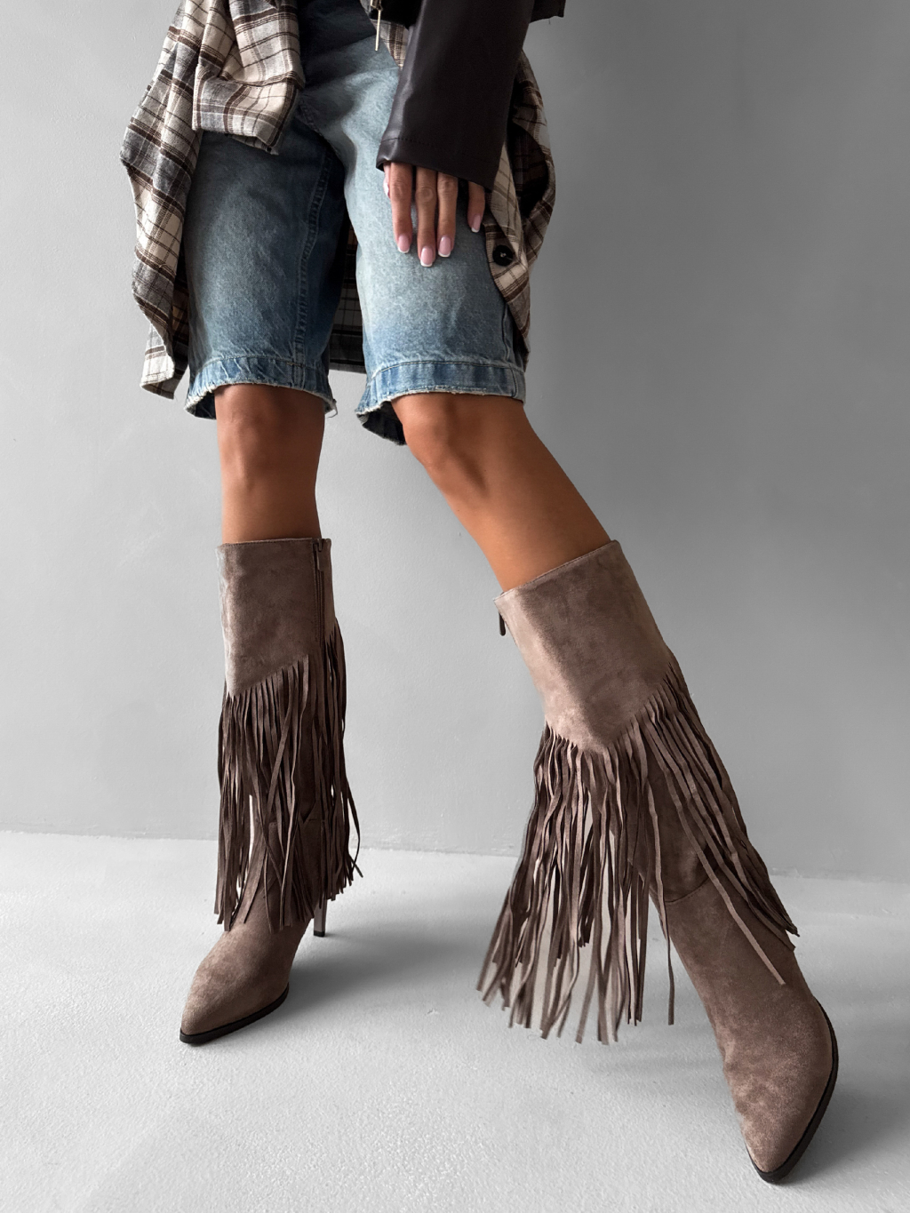 Béžové semišové vysoké čižmy ZYNGA so strapcami