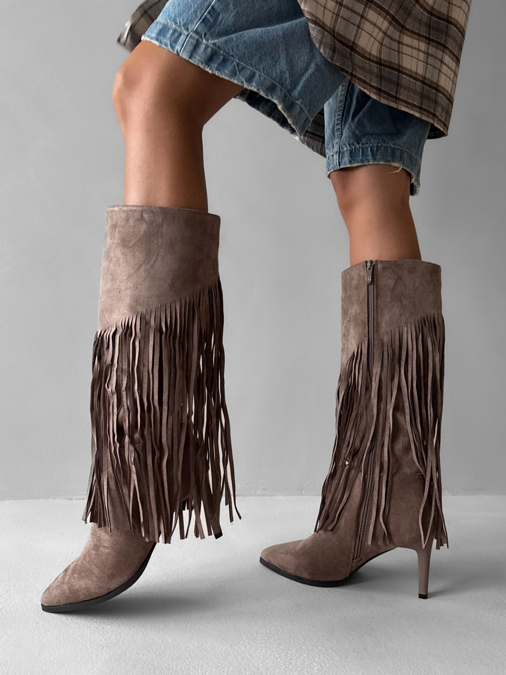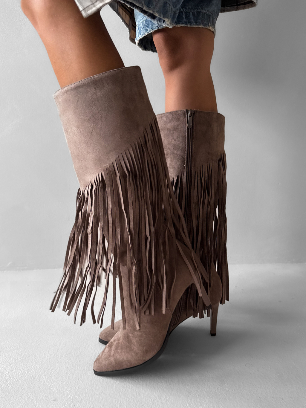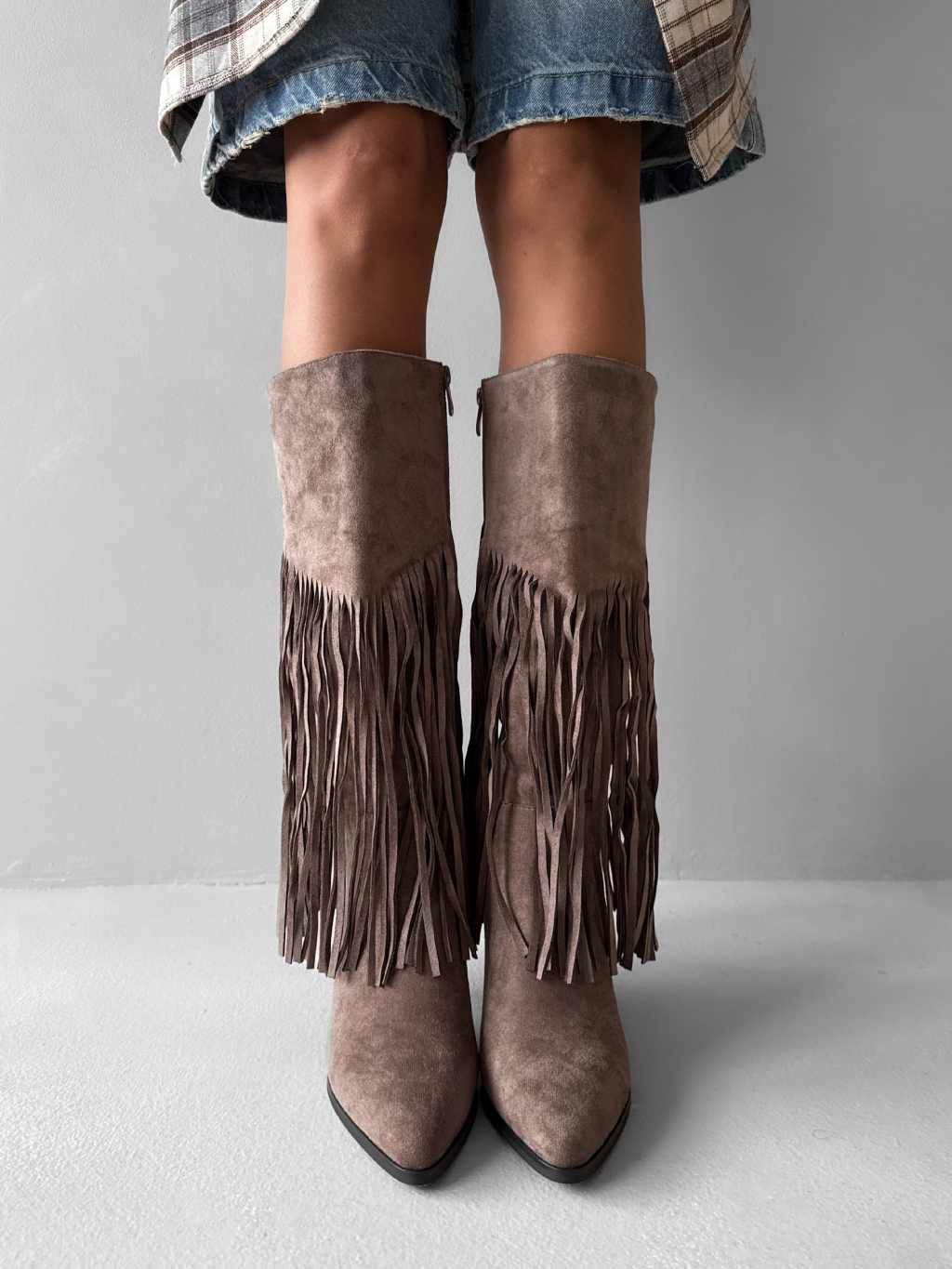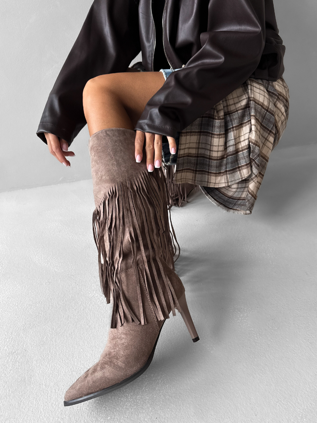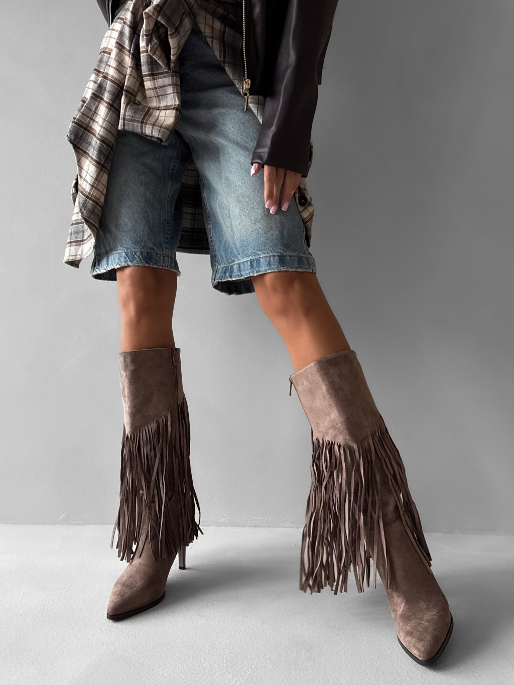Béžové semišové vysoké čižmy ZYNGA so strapcami