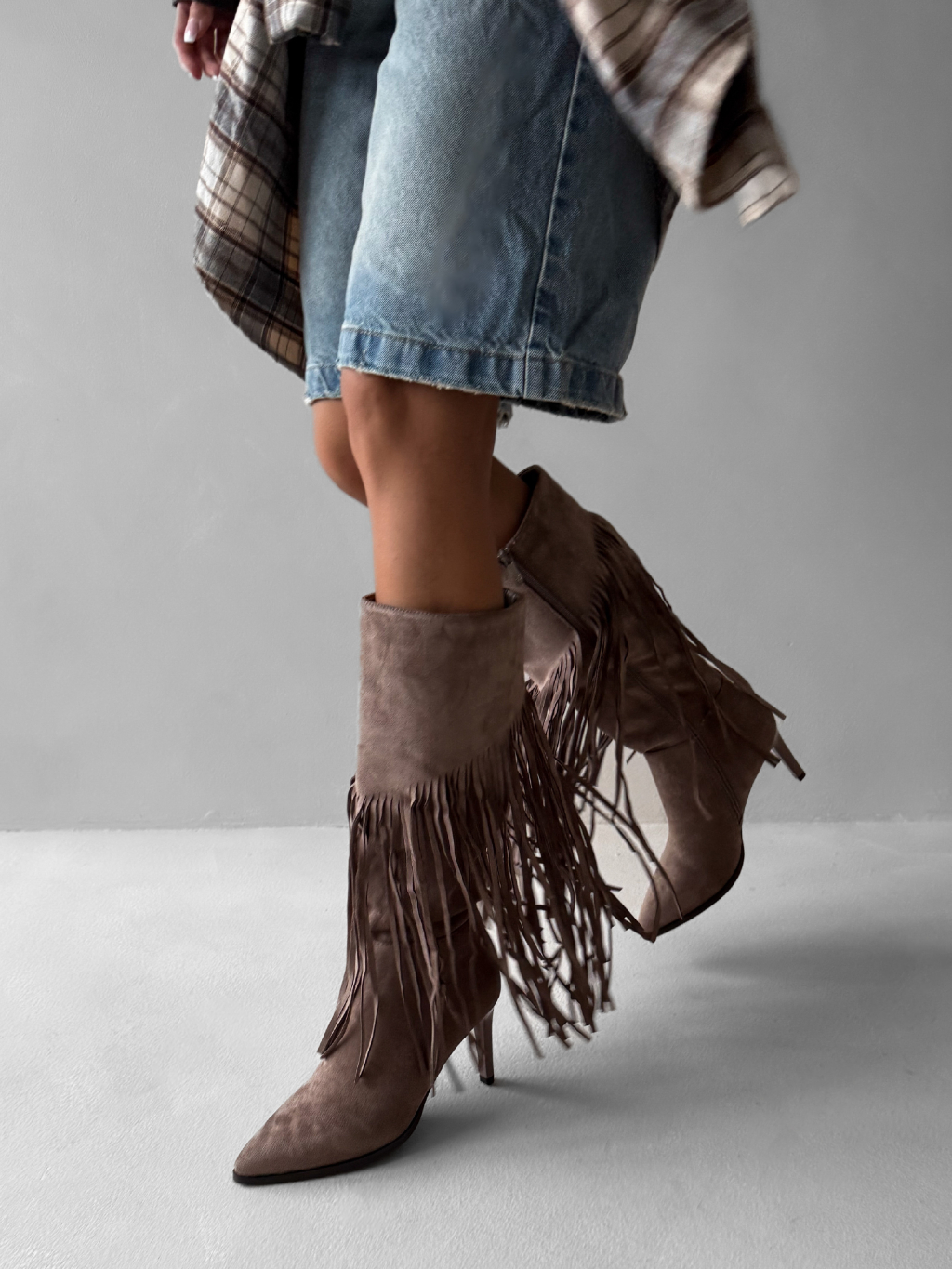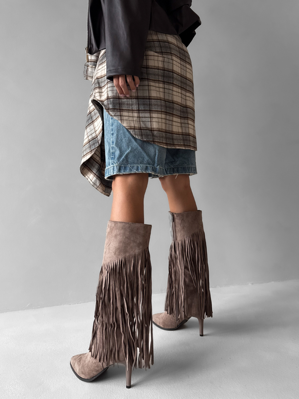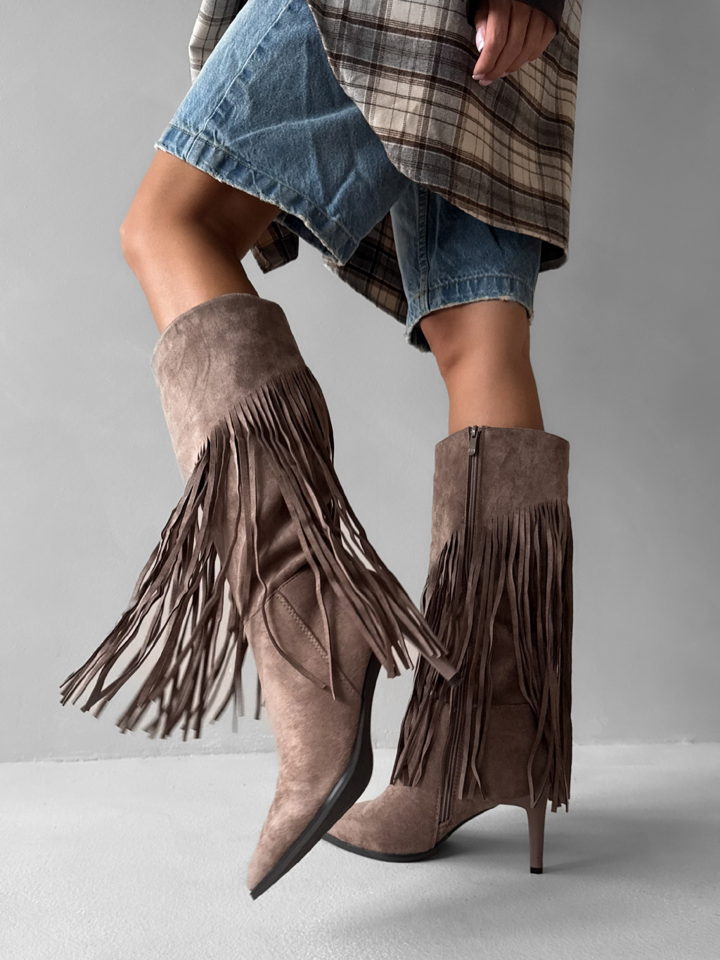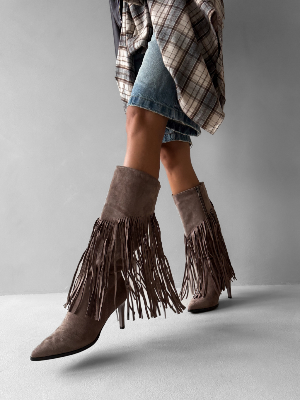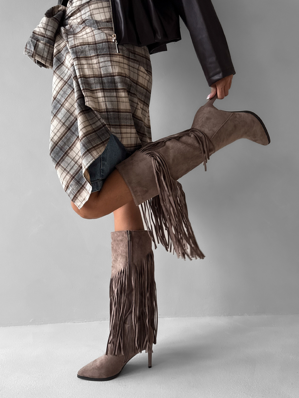 Béžové semišové vysoké čižmy ZYNGA so strapcami