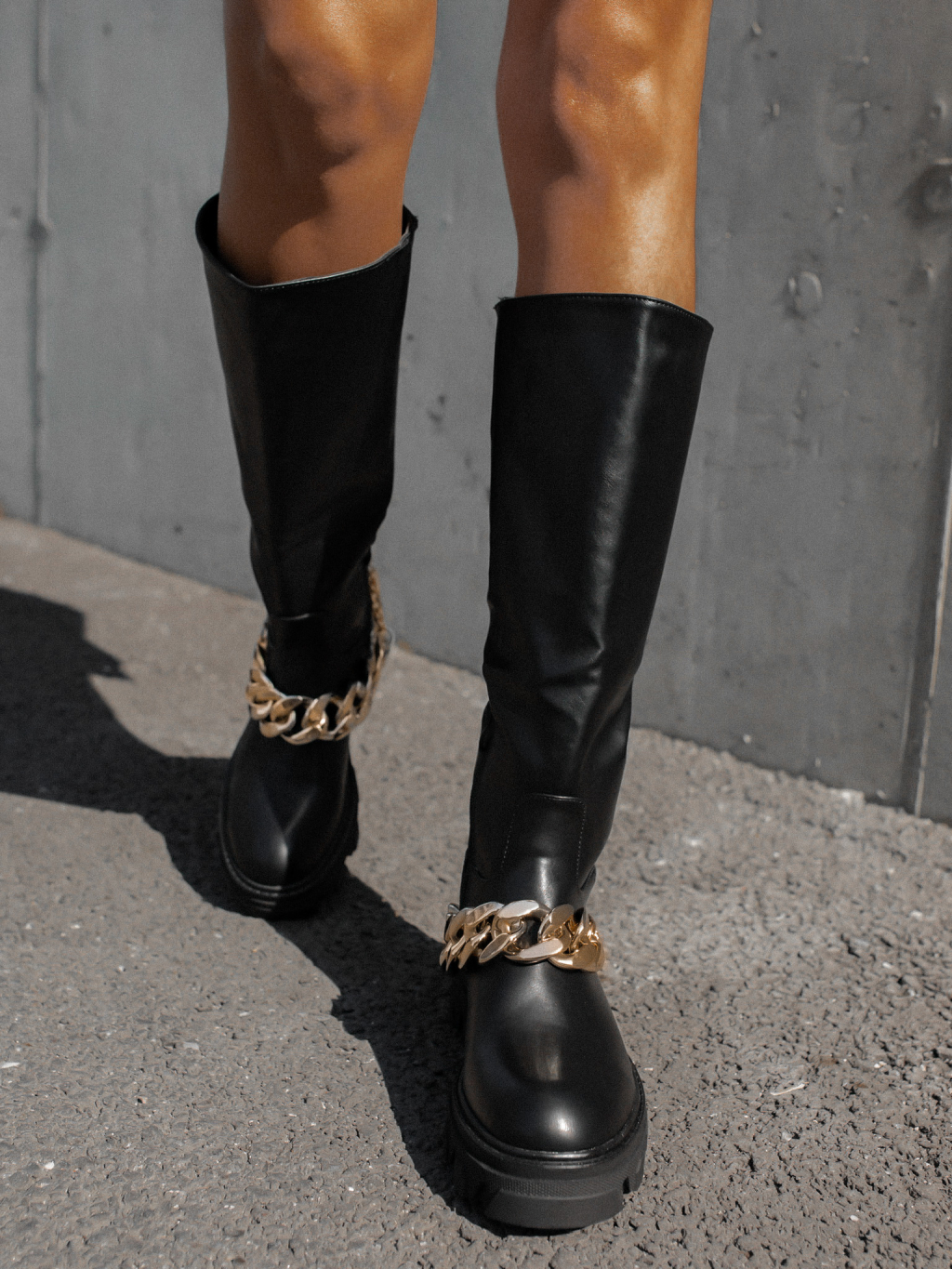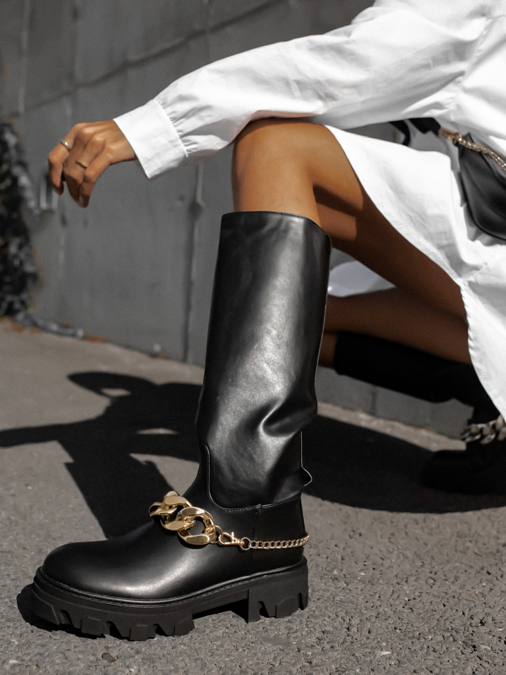 Čierne koženkové čižmy INVITE s retiazkou