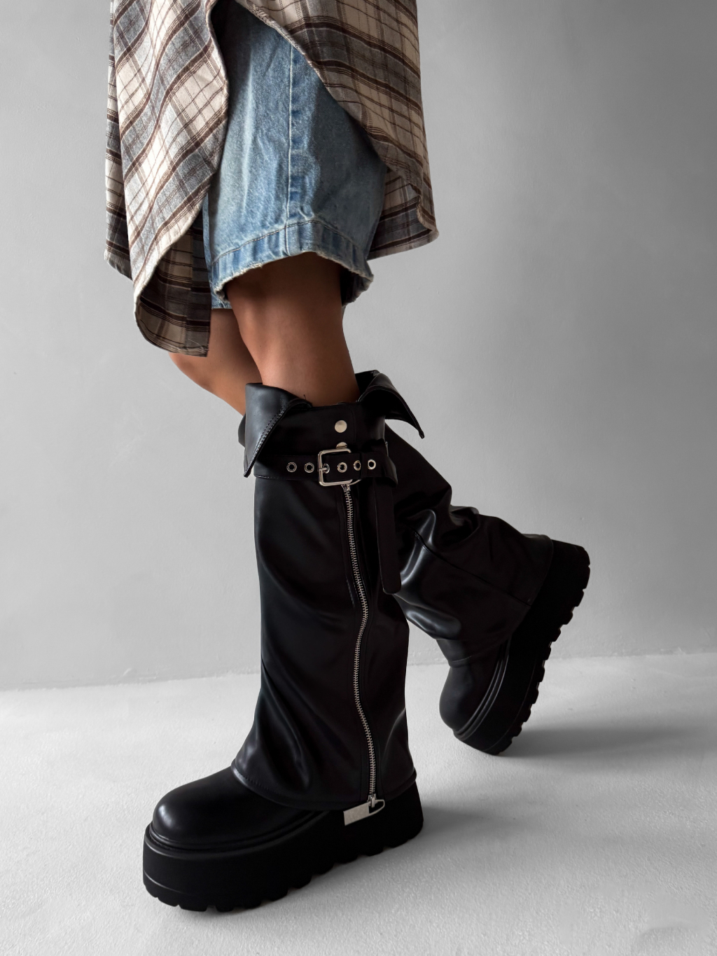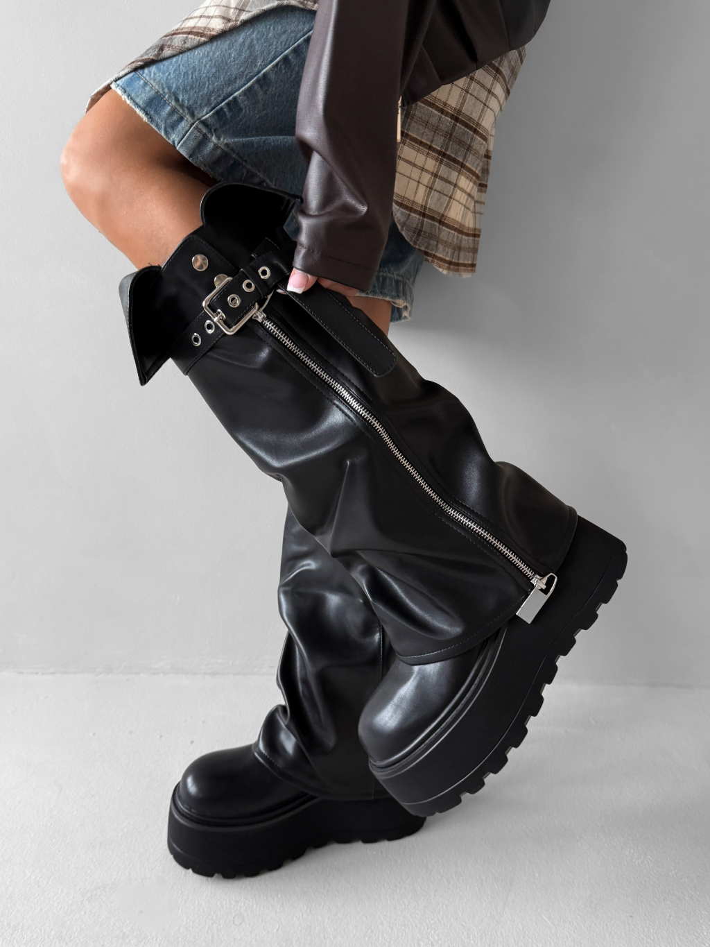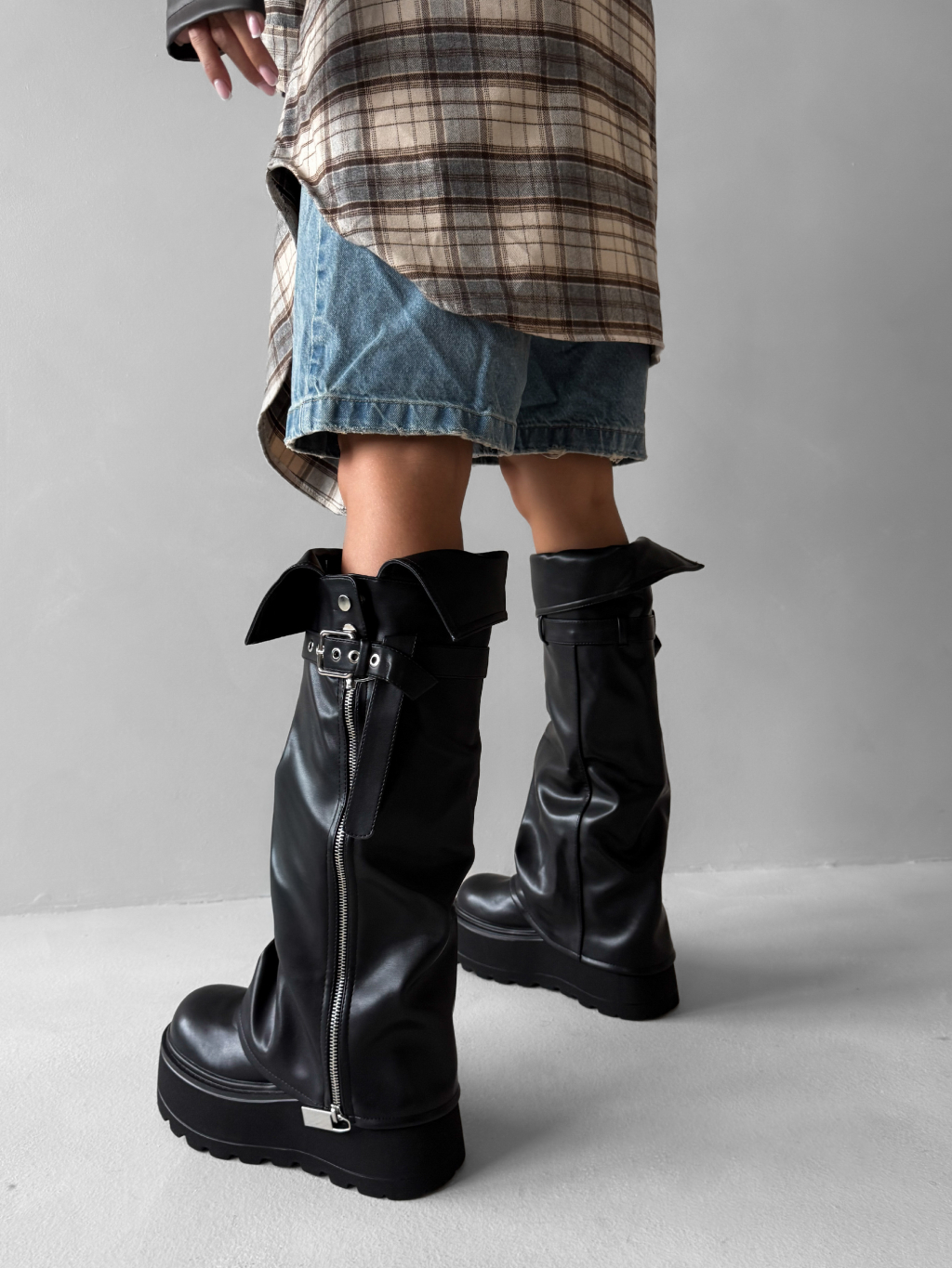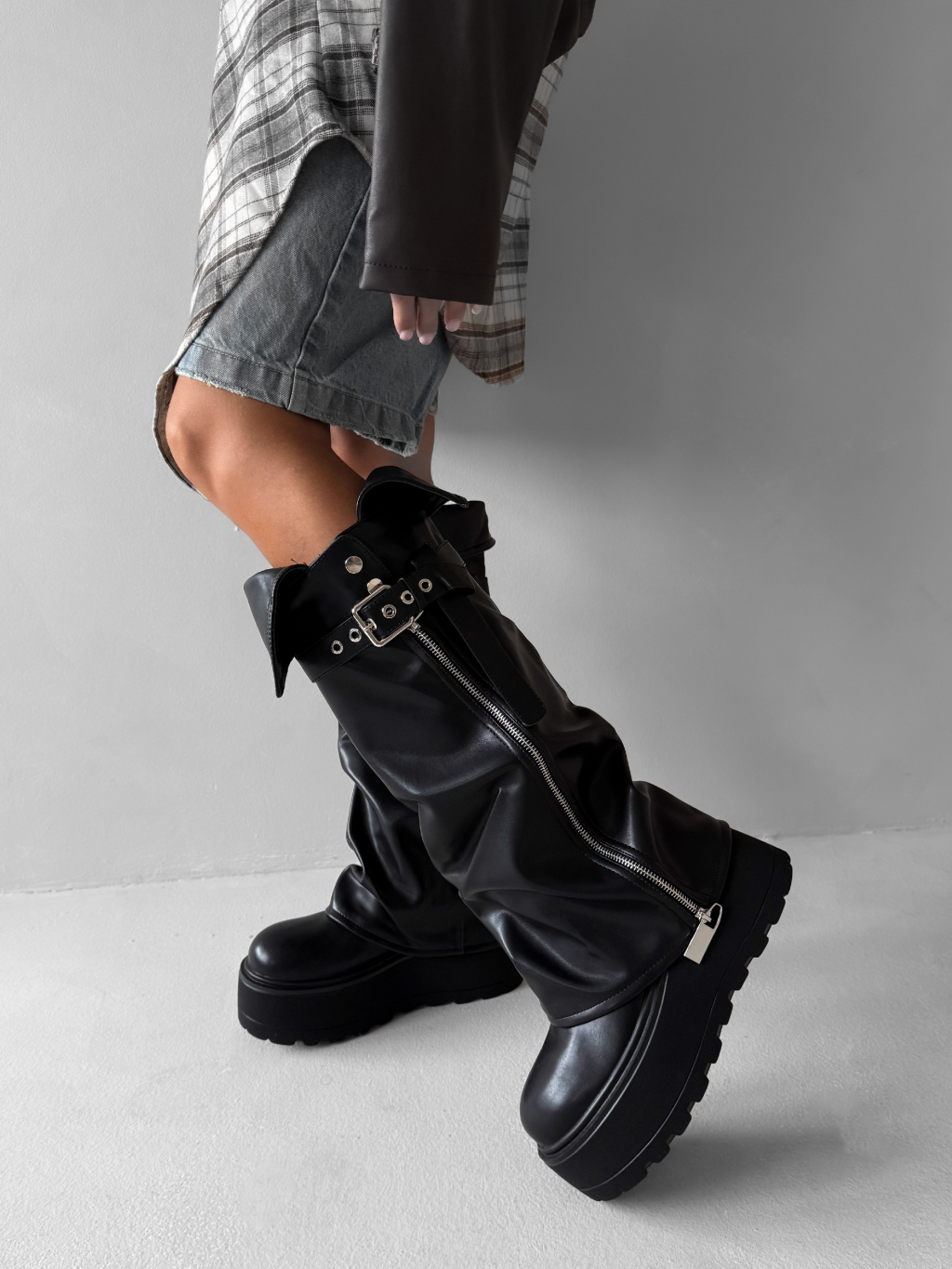 Čierne vysoké štýlové čižmy ALBEA na platforme