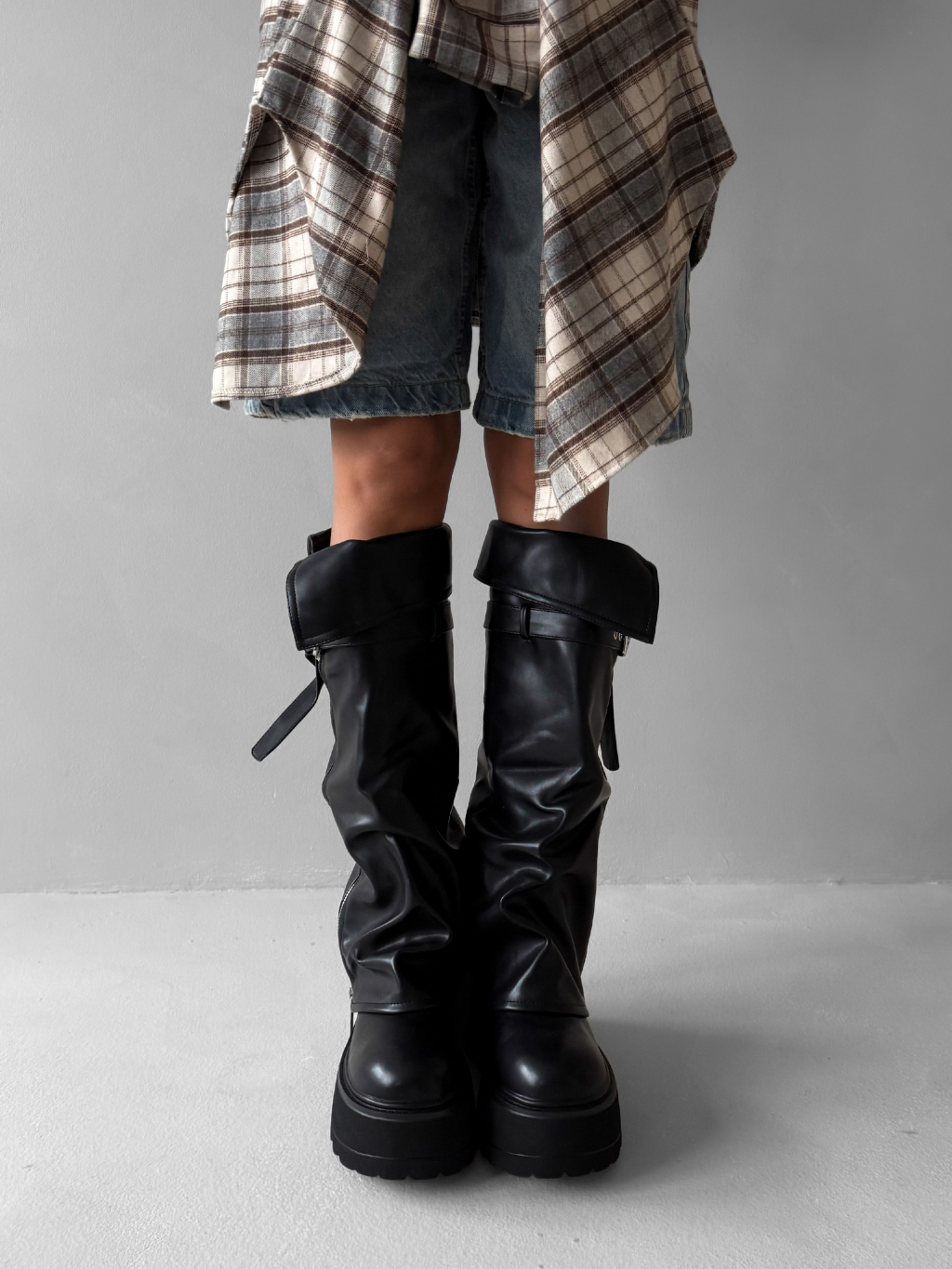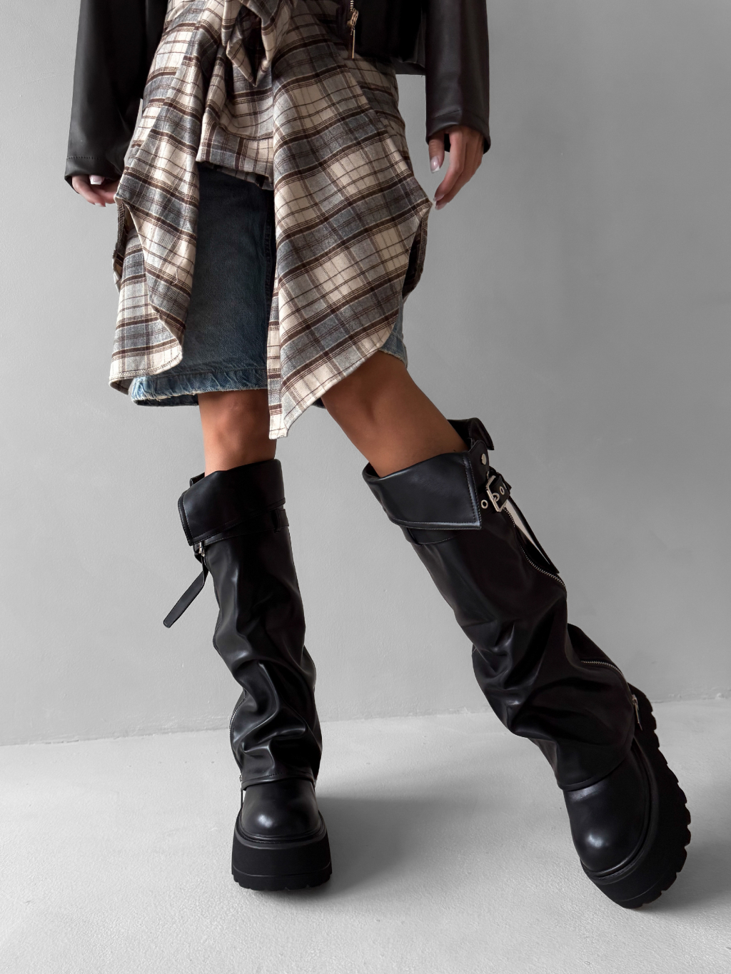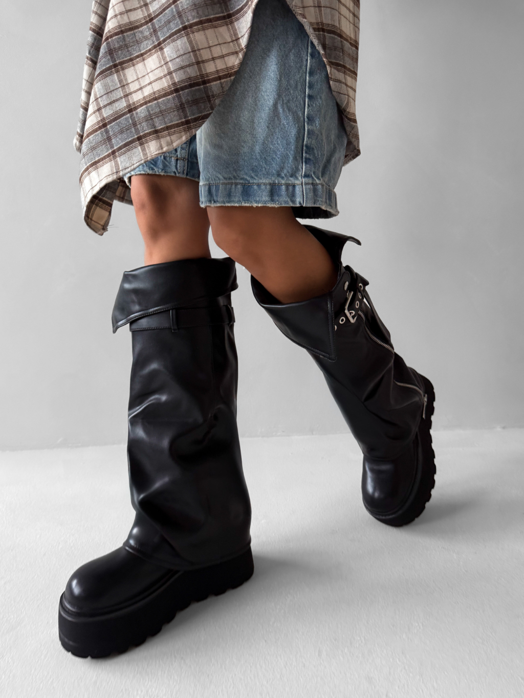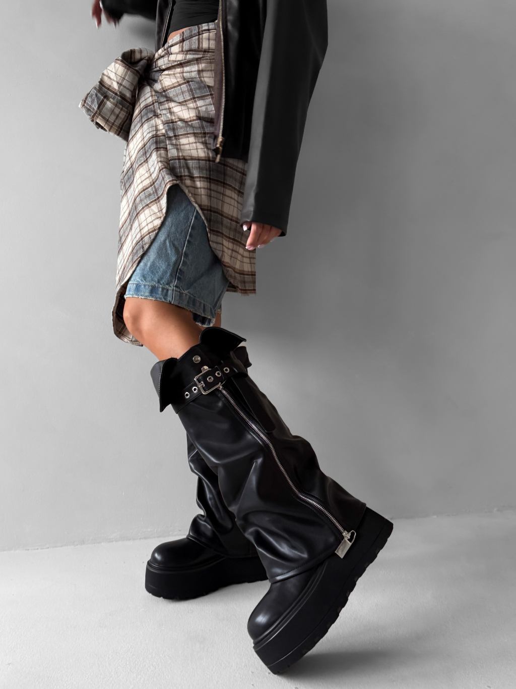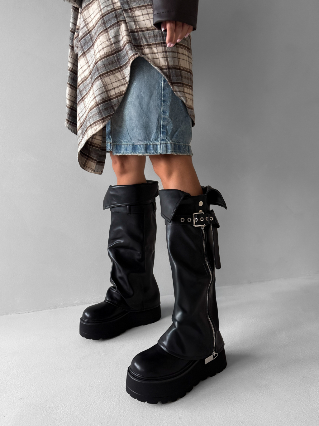 Čierne vysoké štýlové čižmy ALBEA na platforme