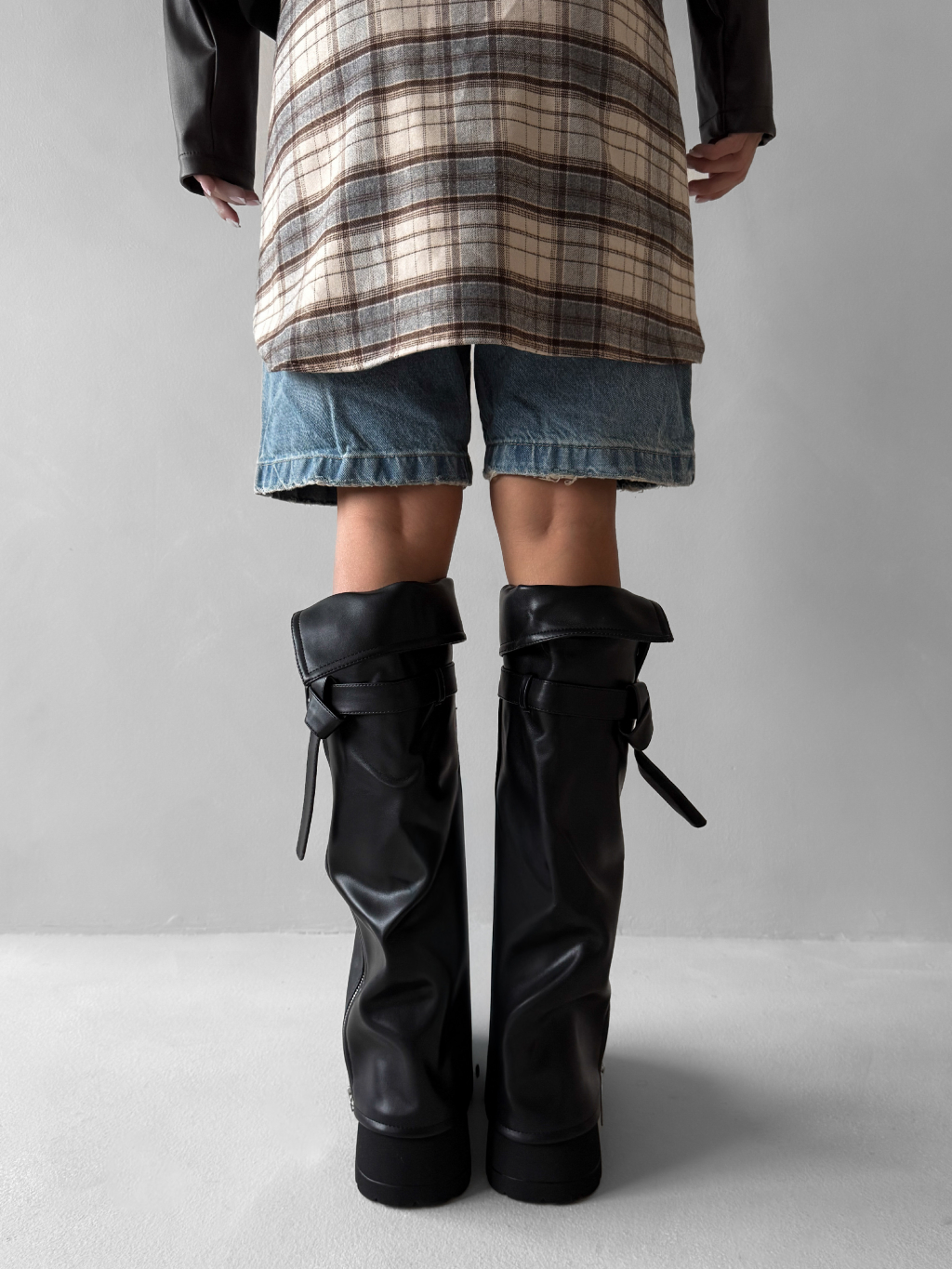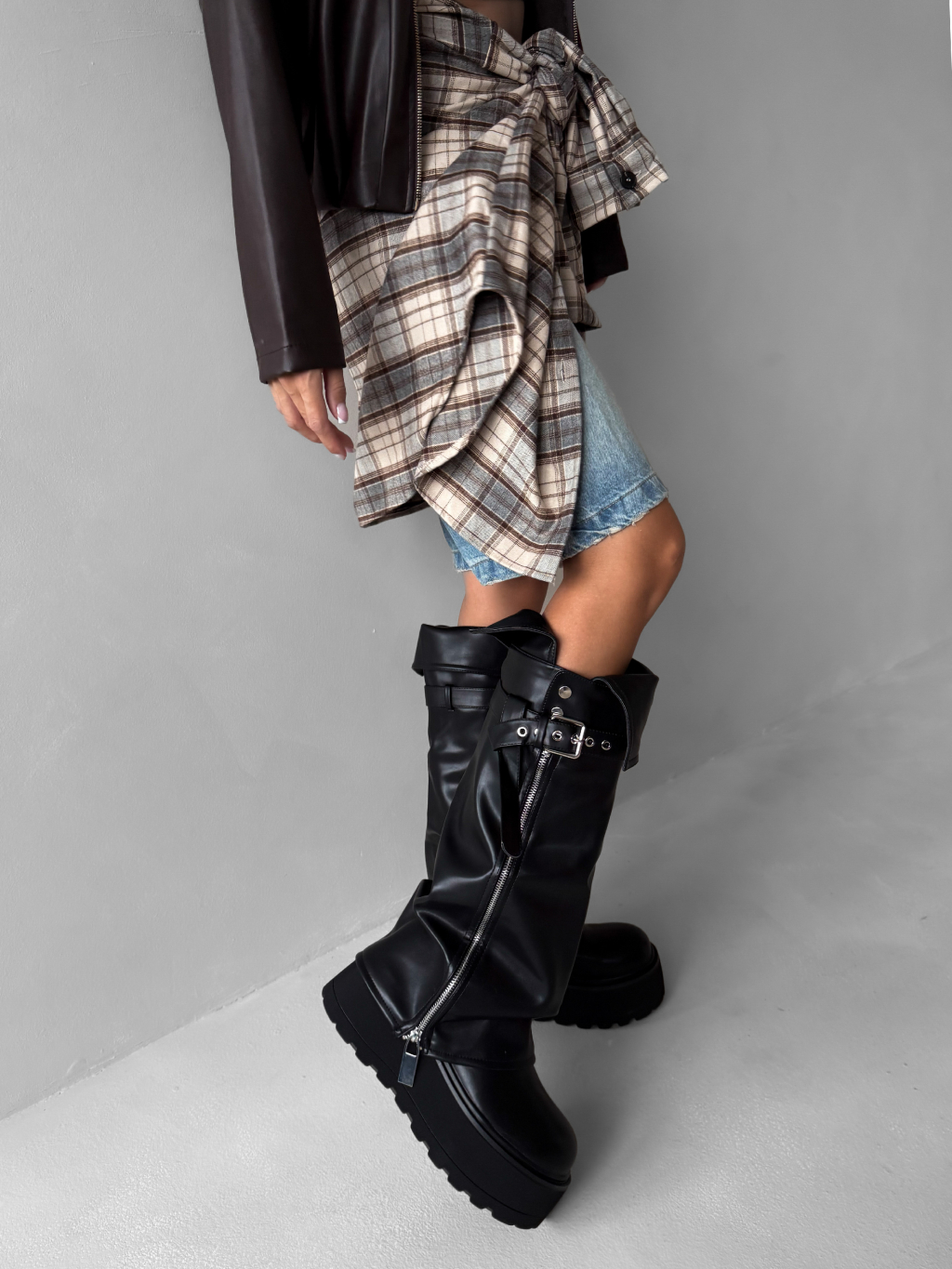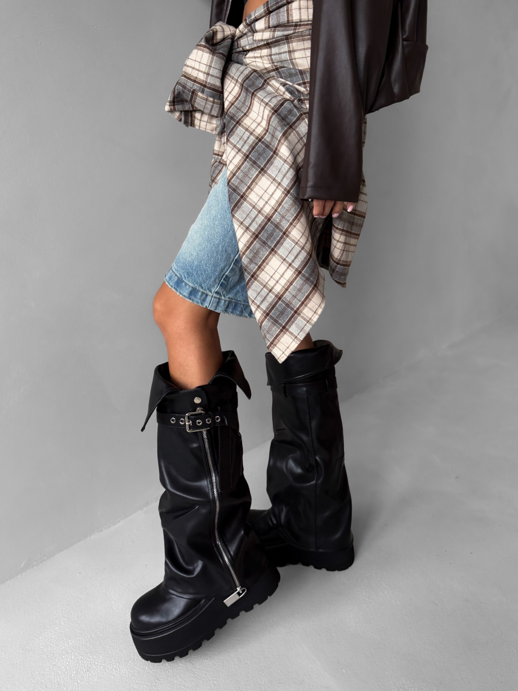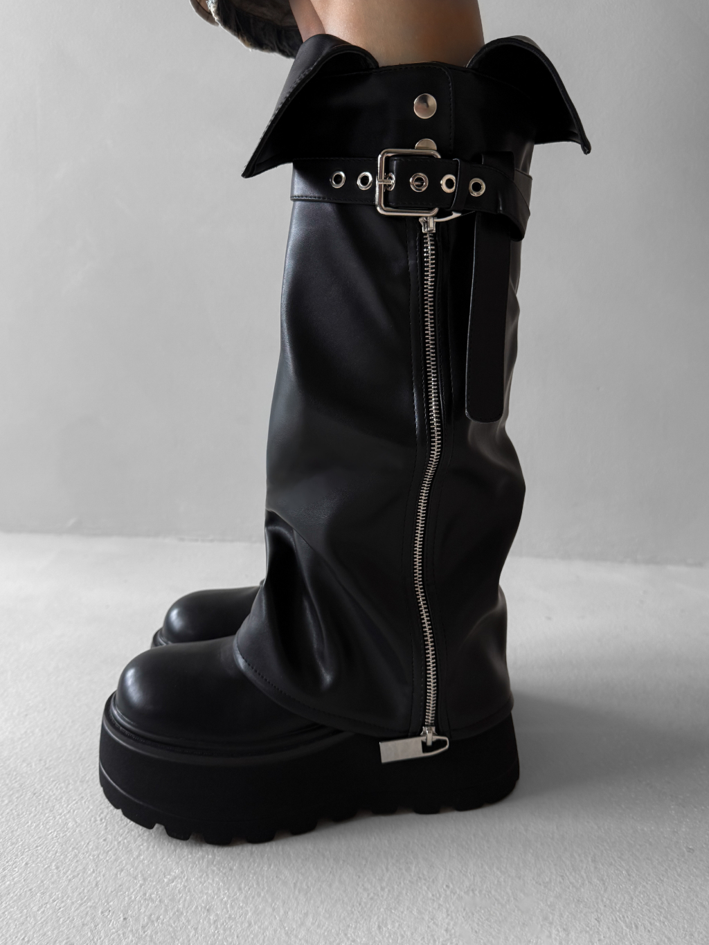 Čierne vysoké štýlové čižmy ALBEA na platforme