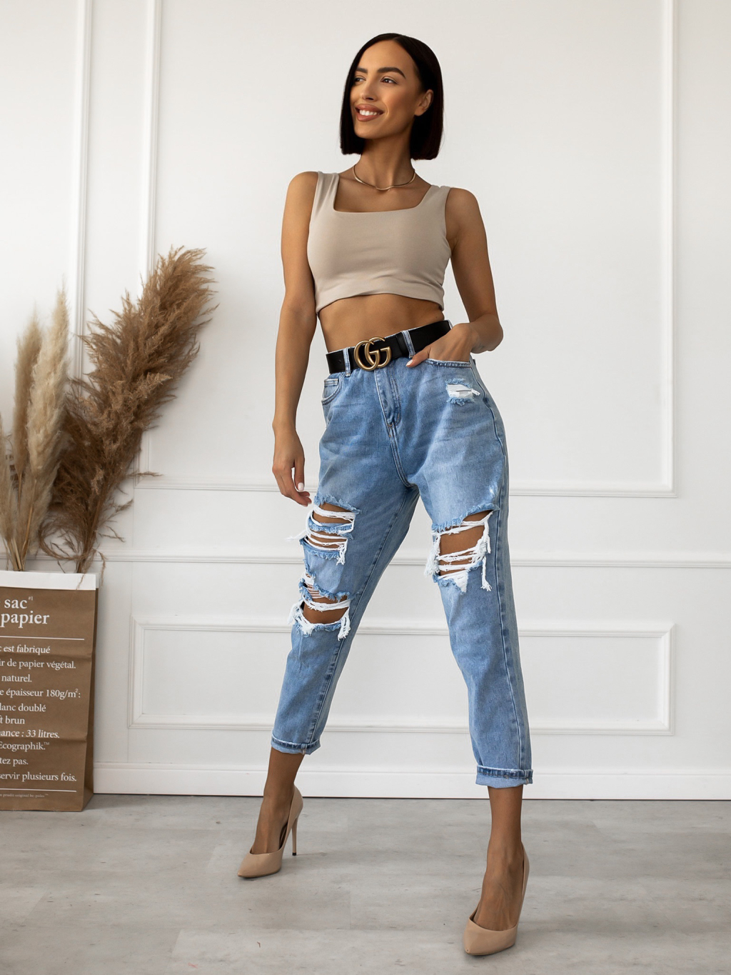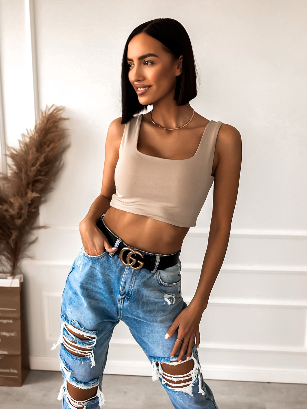 Béžový jednoduchý crop top ISAAC