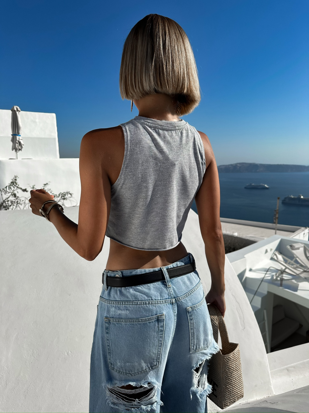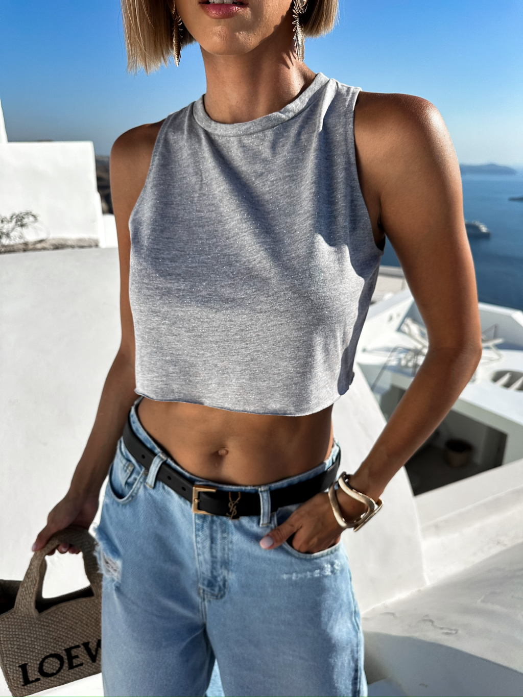 Šedý trblietavý crop top WIEKA