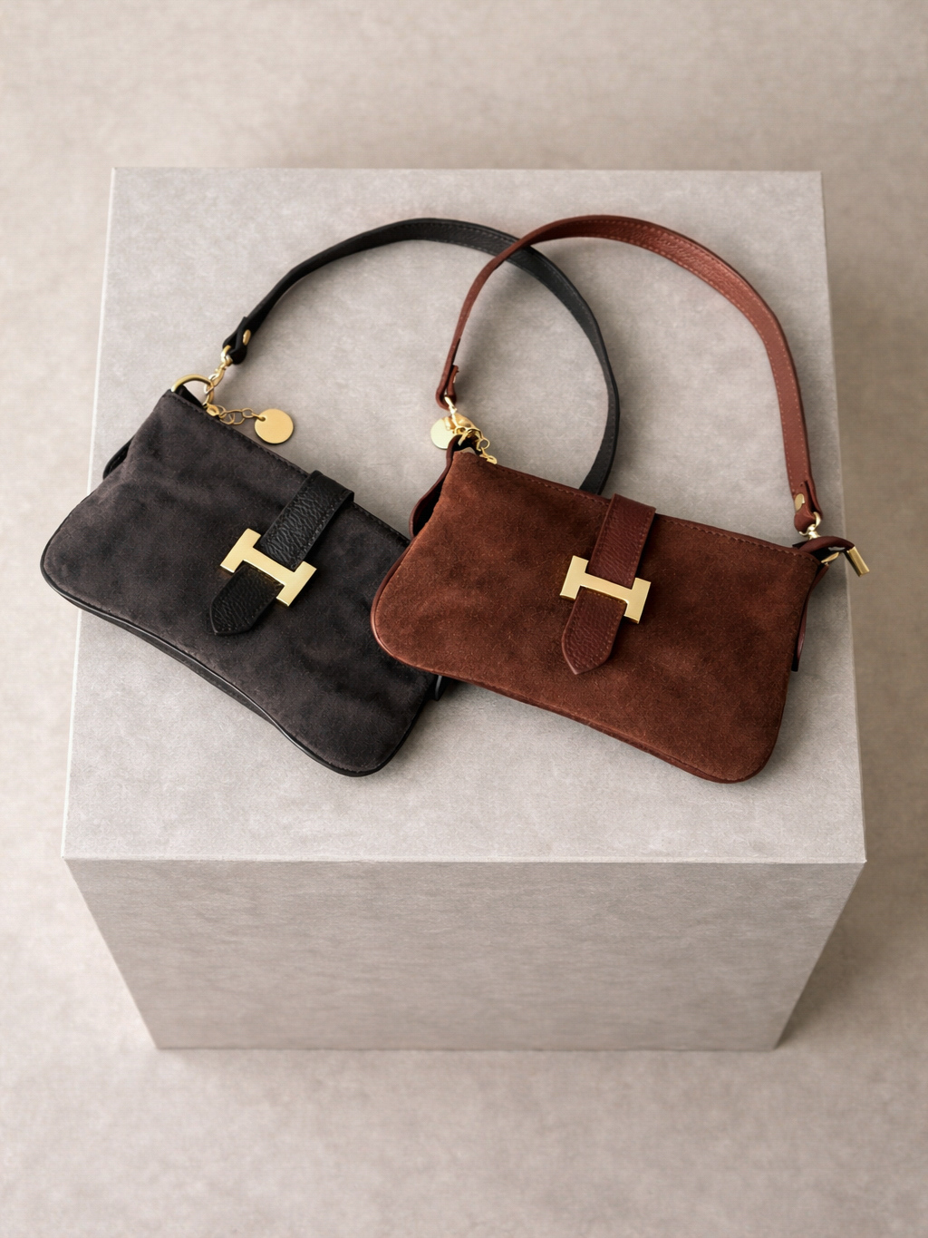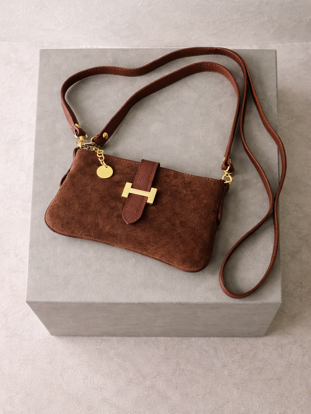 Tmavo hnedá kožená cross body semišová kabelka DUSELLA
