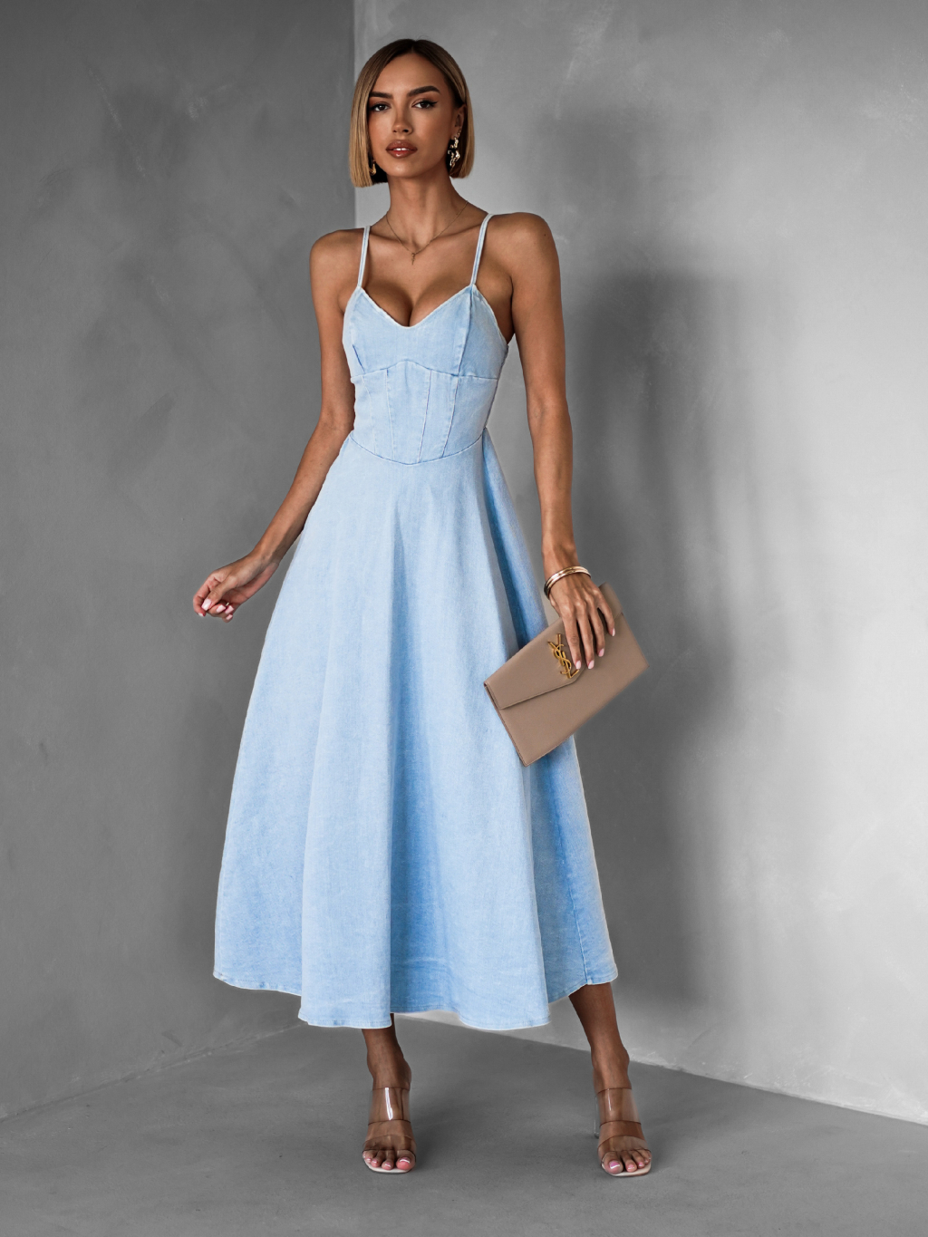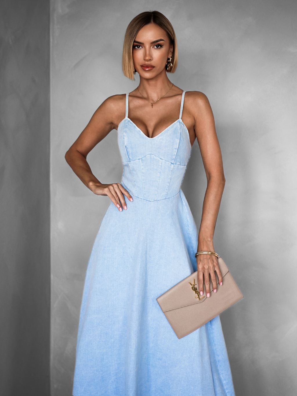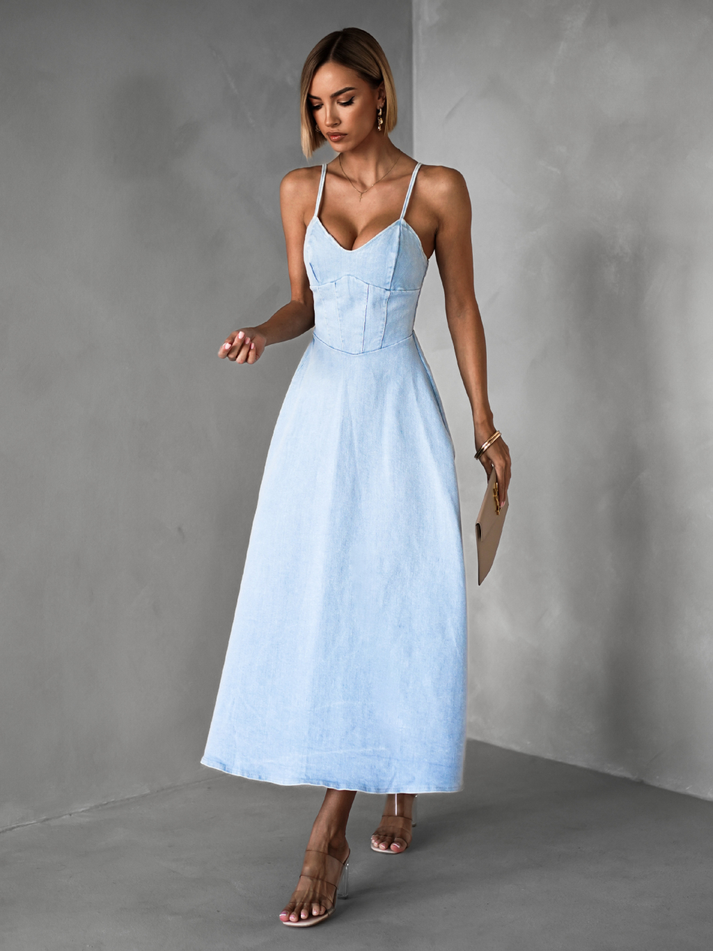 Svetlomodré džínsové áčkové dlhé šaty SENEJA