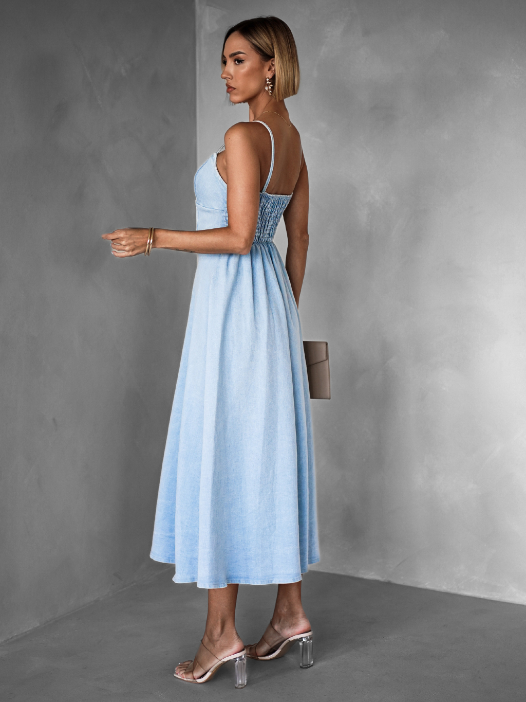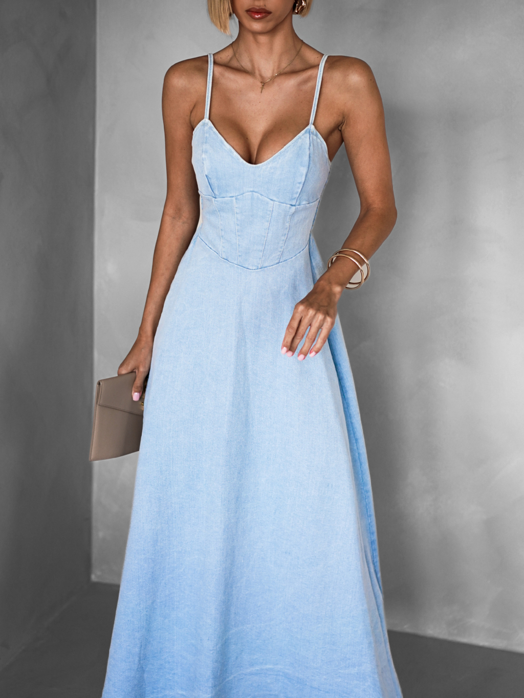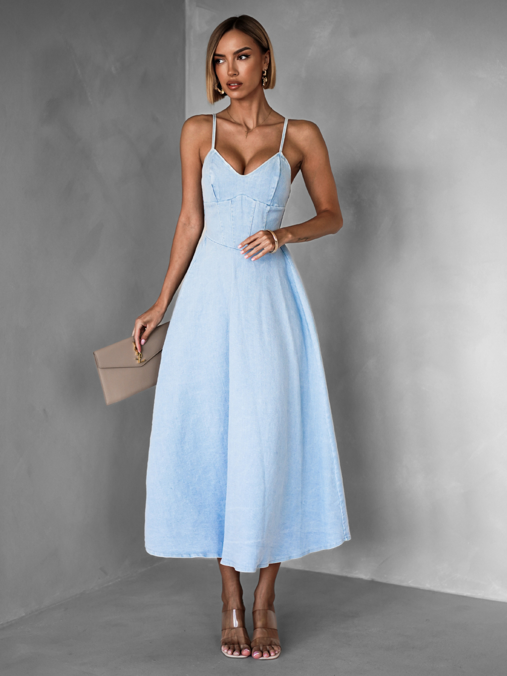 Svetlomodré džínsové áčkové dlhé šaty SENEJA