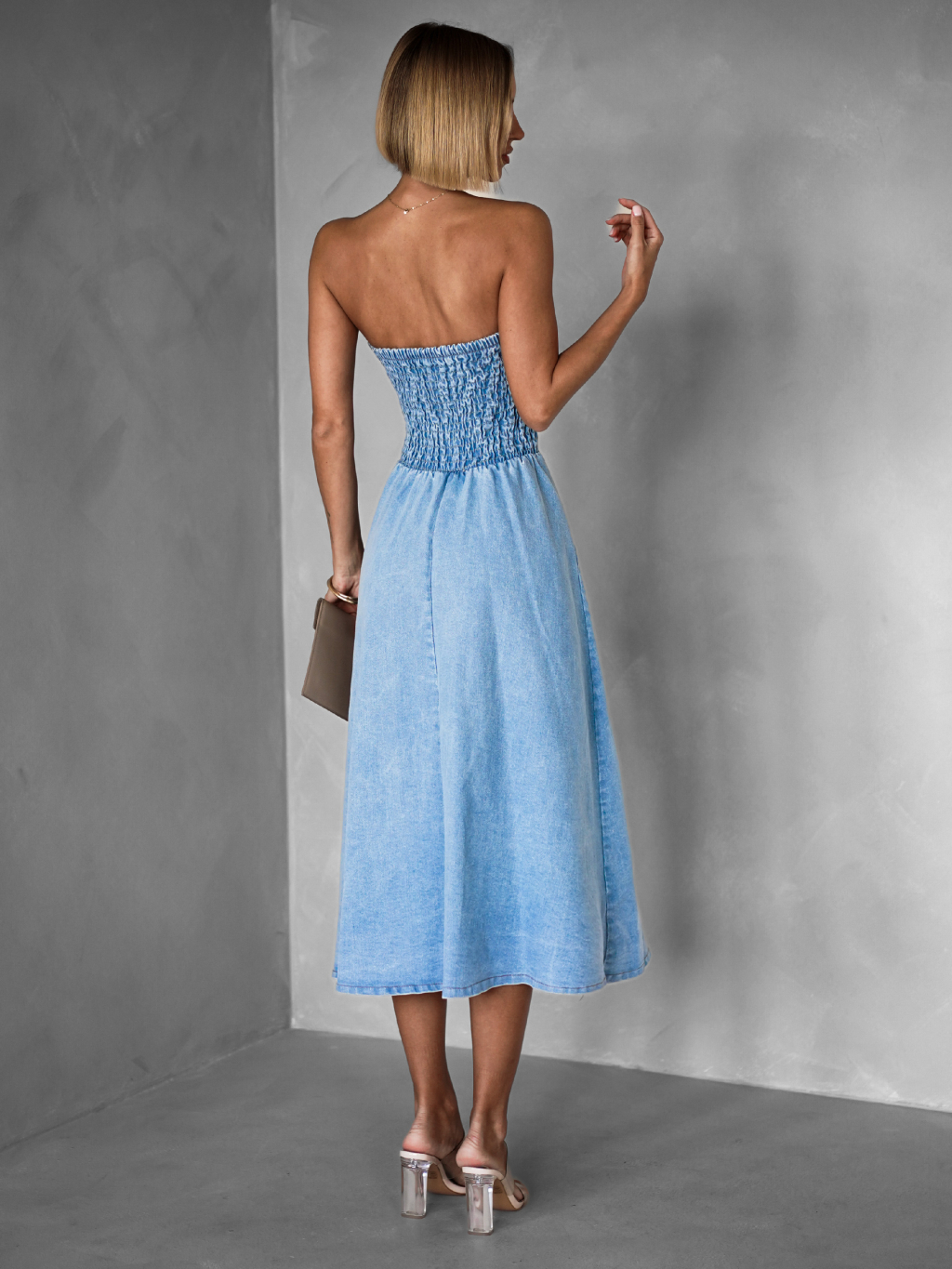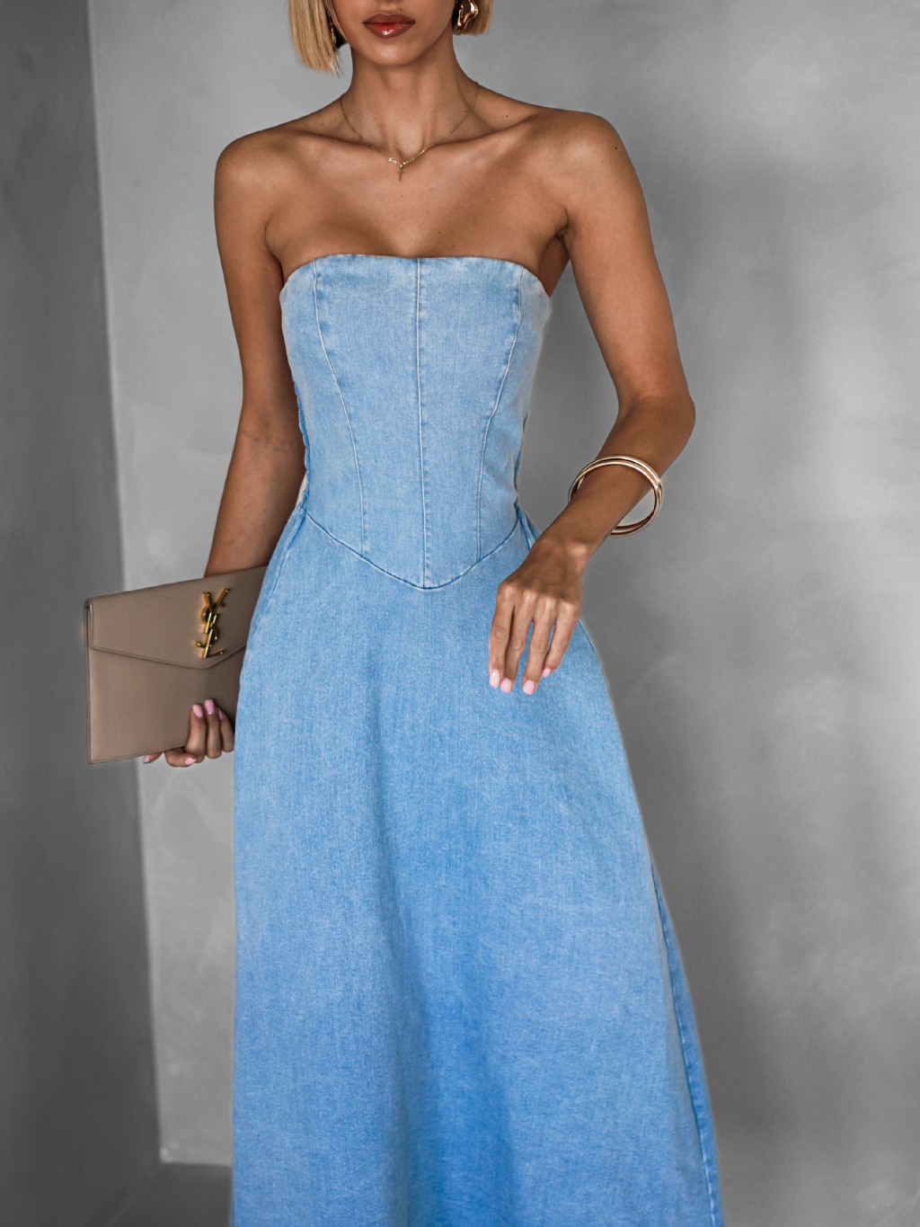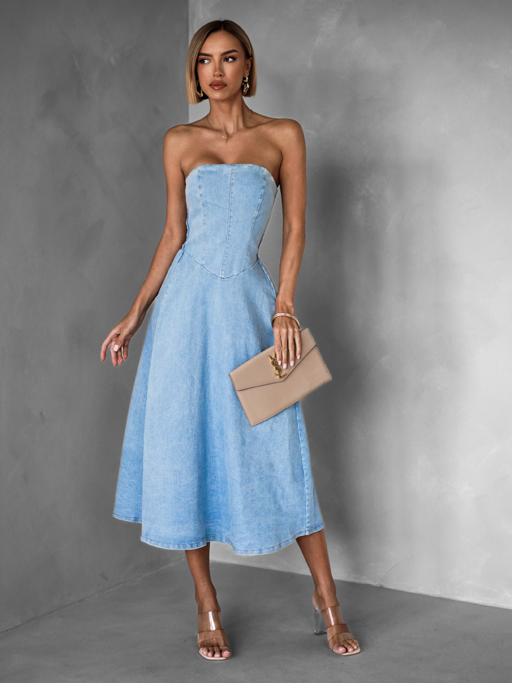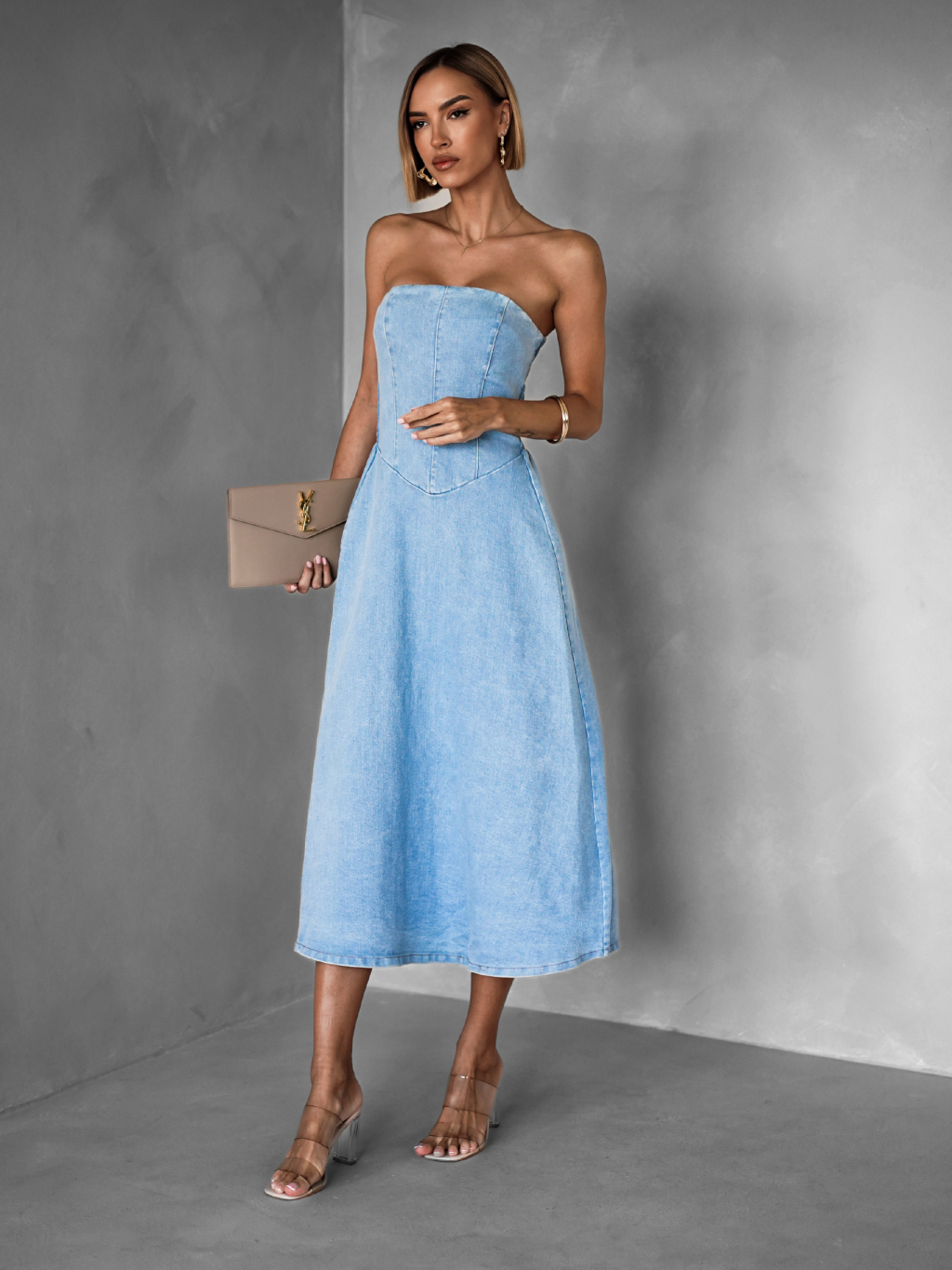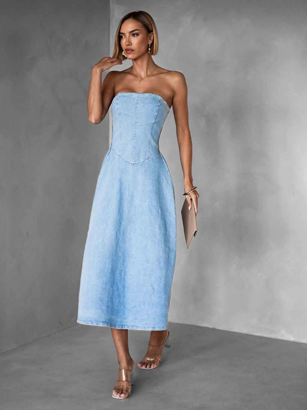 Svetlomodré džínsové dlhé šaty JEROME bez ramienok