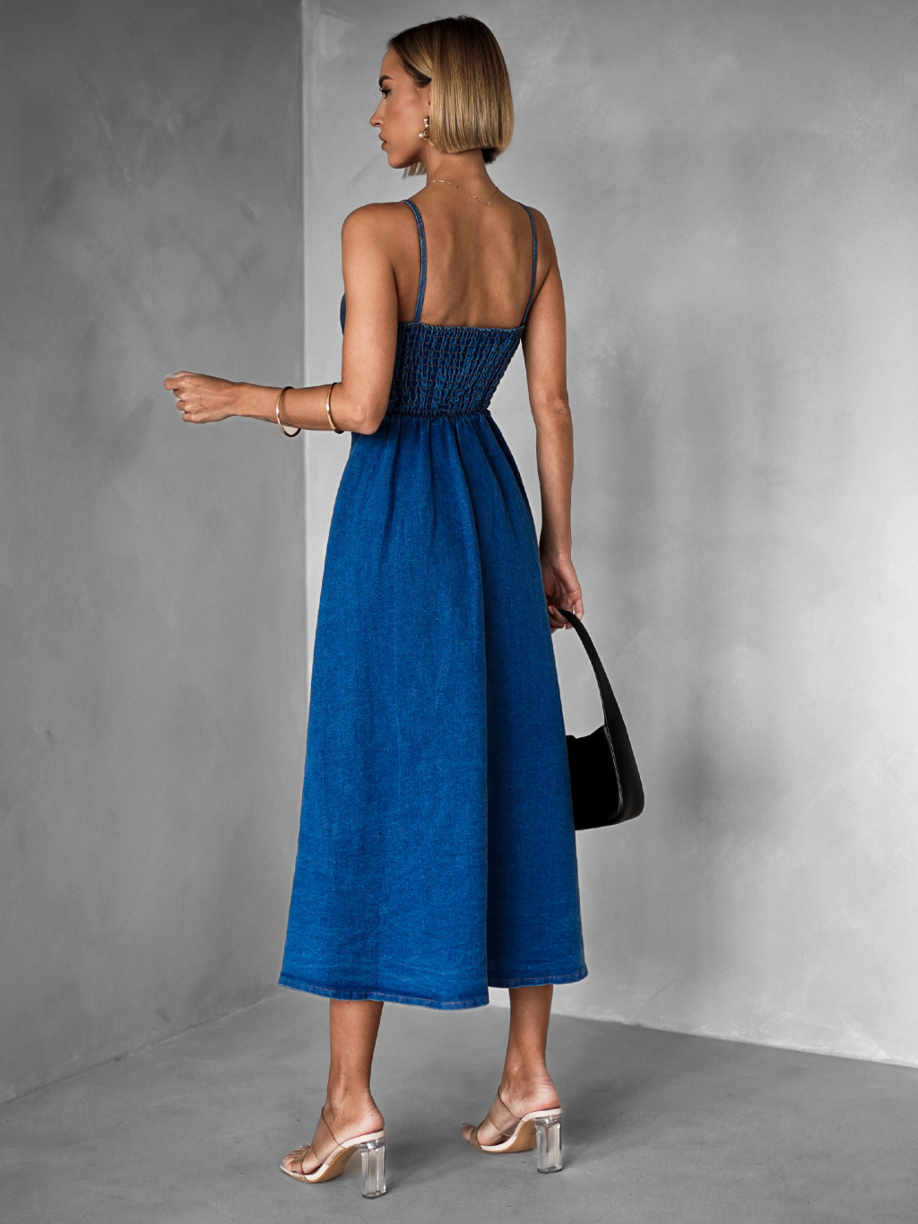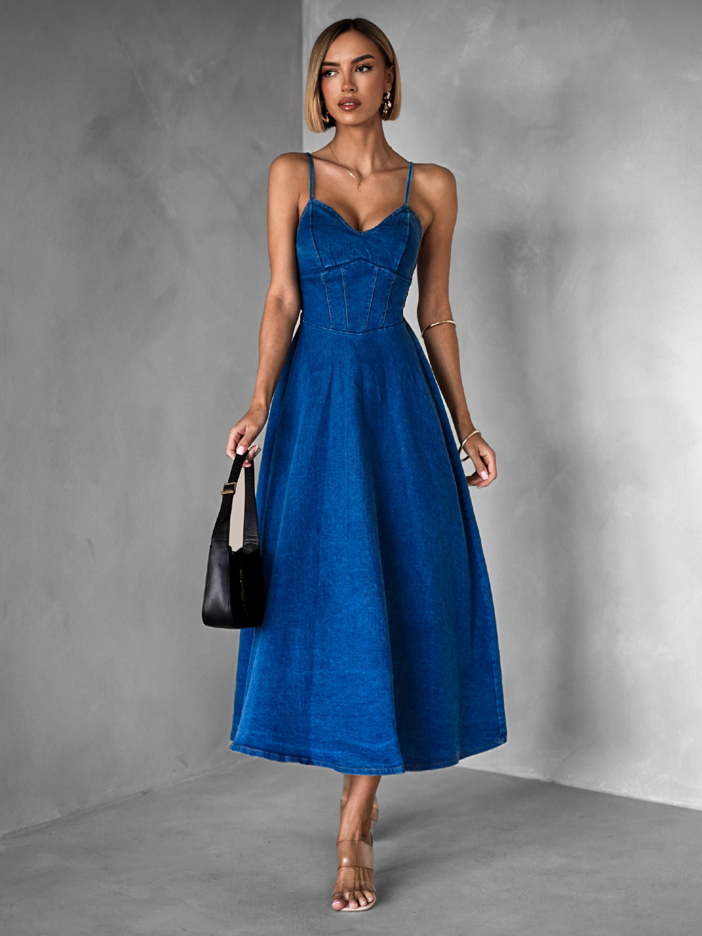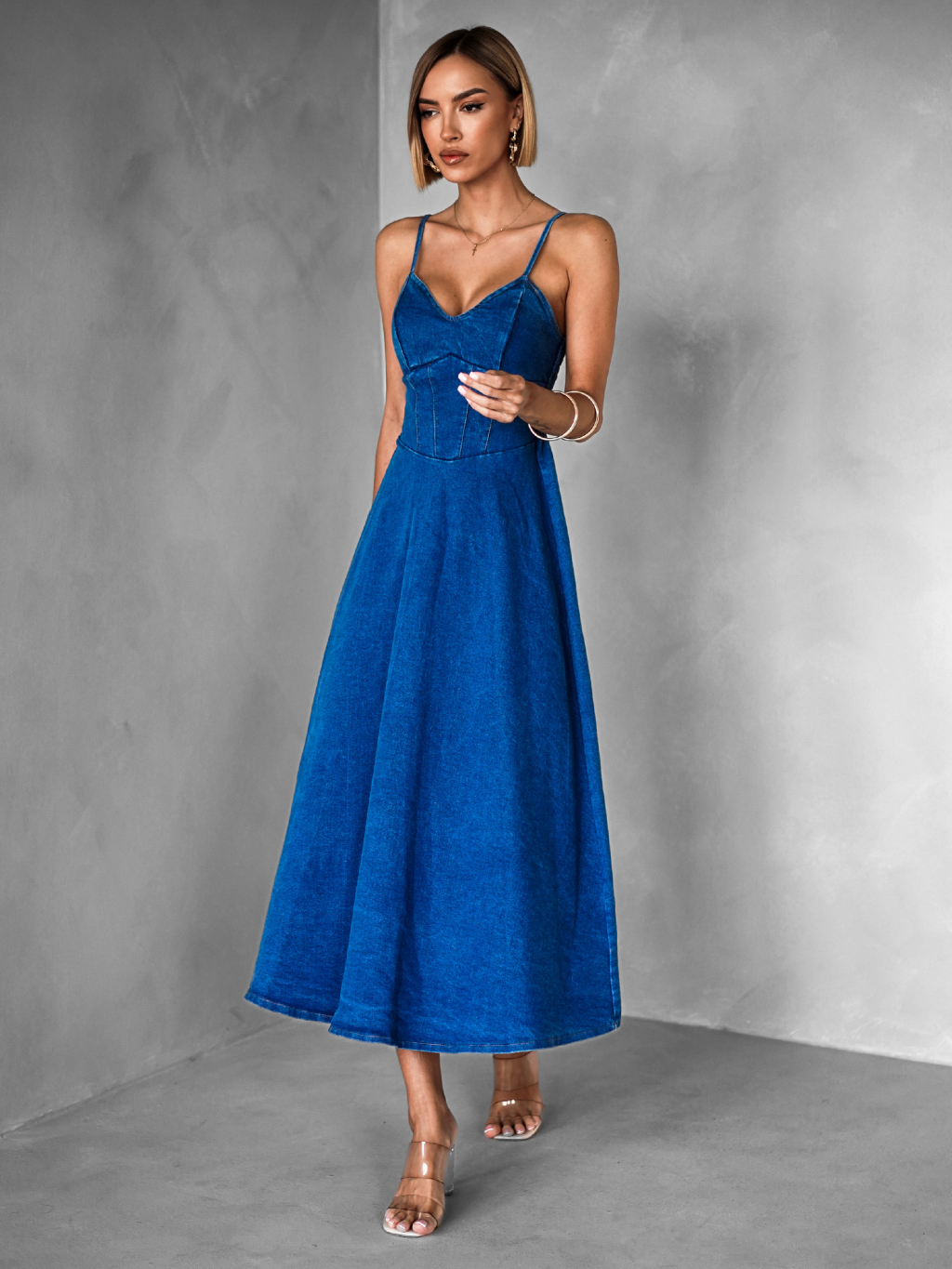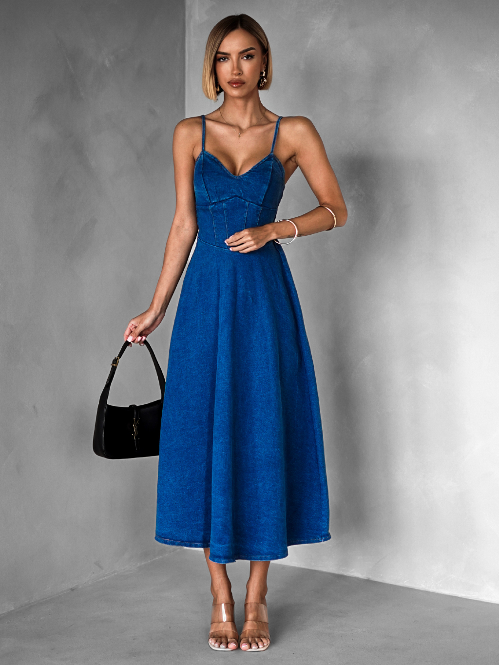 Tmavomodré džínsové dlhé áčkové šaty SENEJA