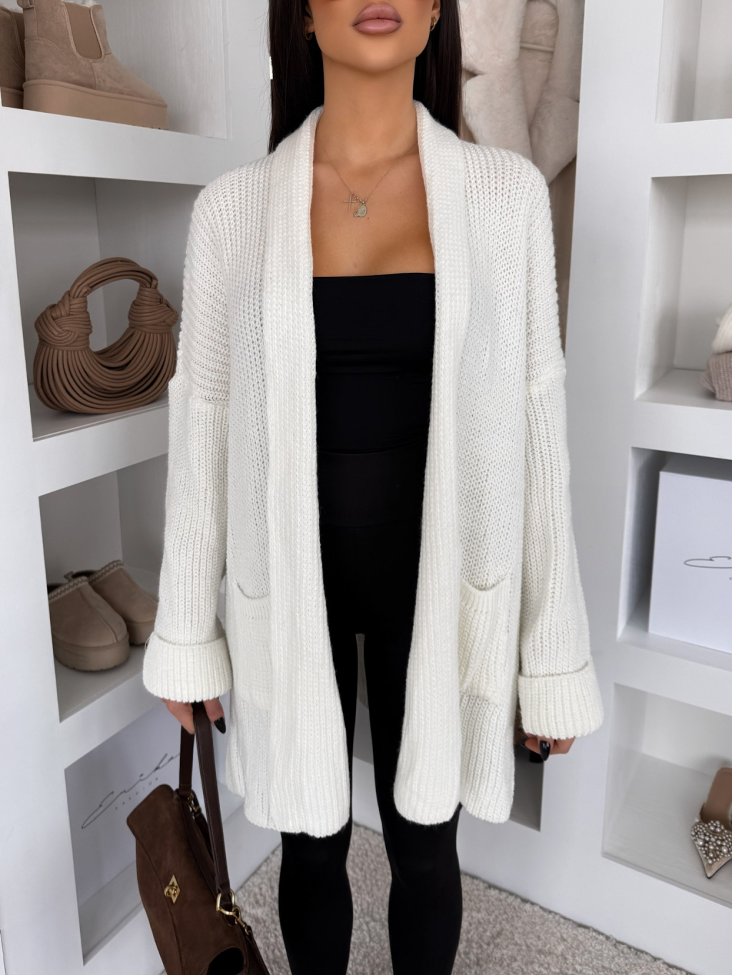 Biely sveterový štýlový kardigán RATALA
