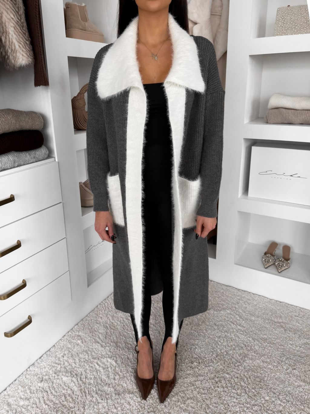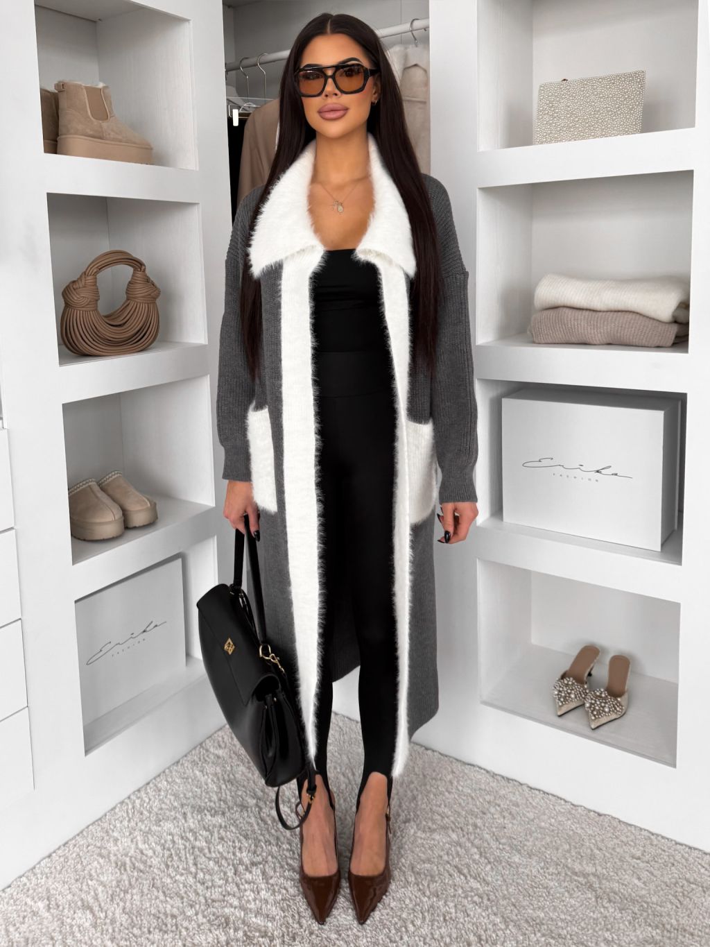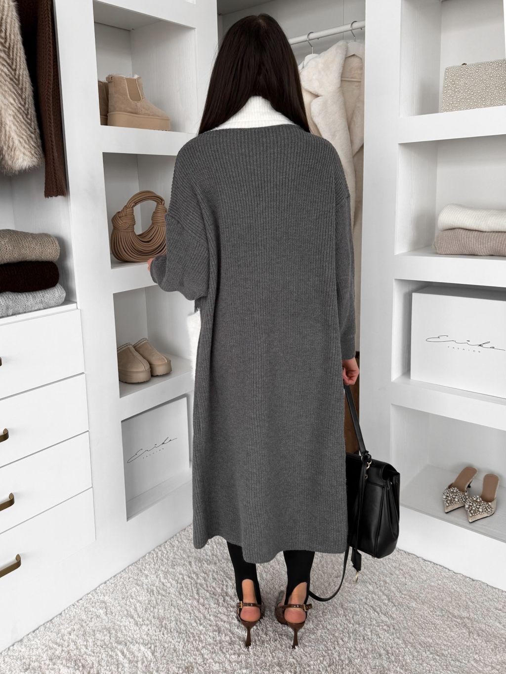 Sivý dlhý maxi svetrový kardigán TOMELIR