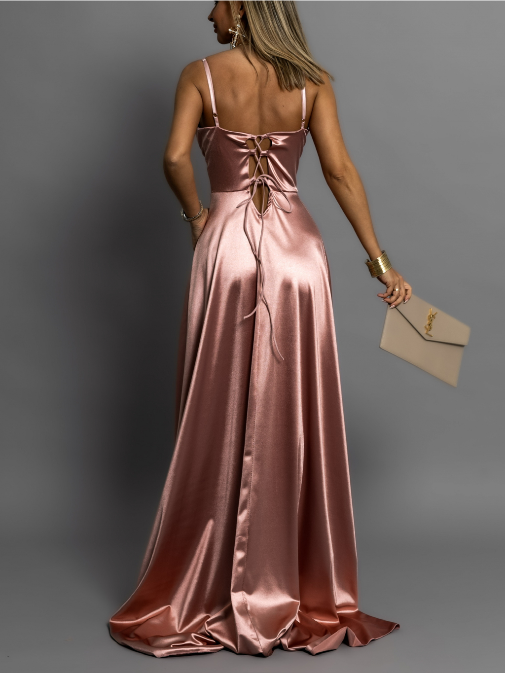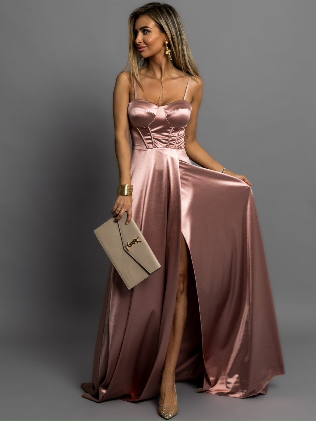 Staroružové saténové dlhé korzetové šaty KALALOT