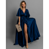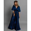 Tmavomodré saténové dlhé šaty GO HOME s krátkym rukávom