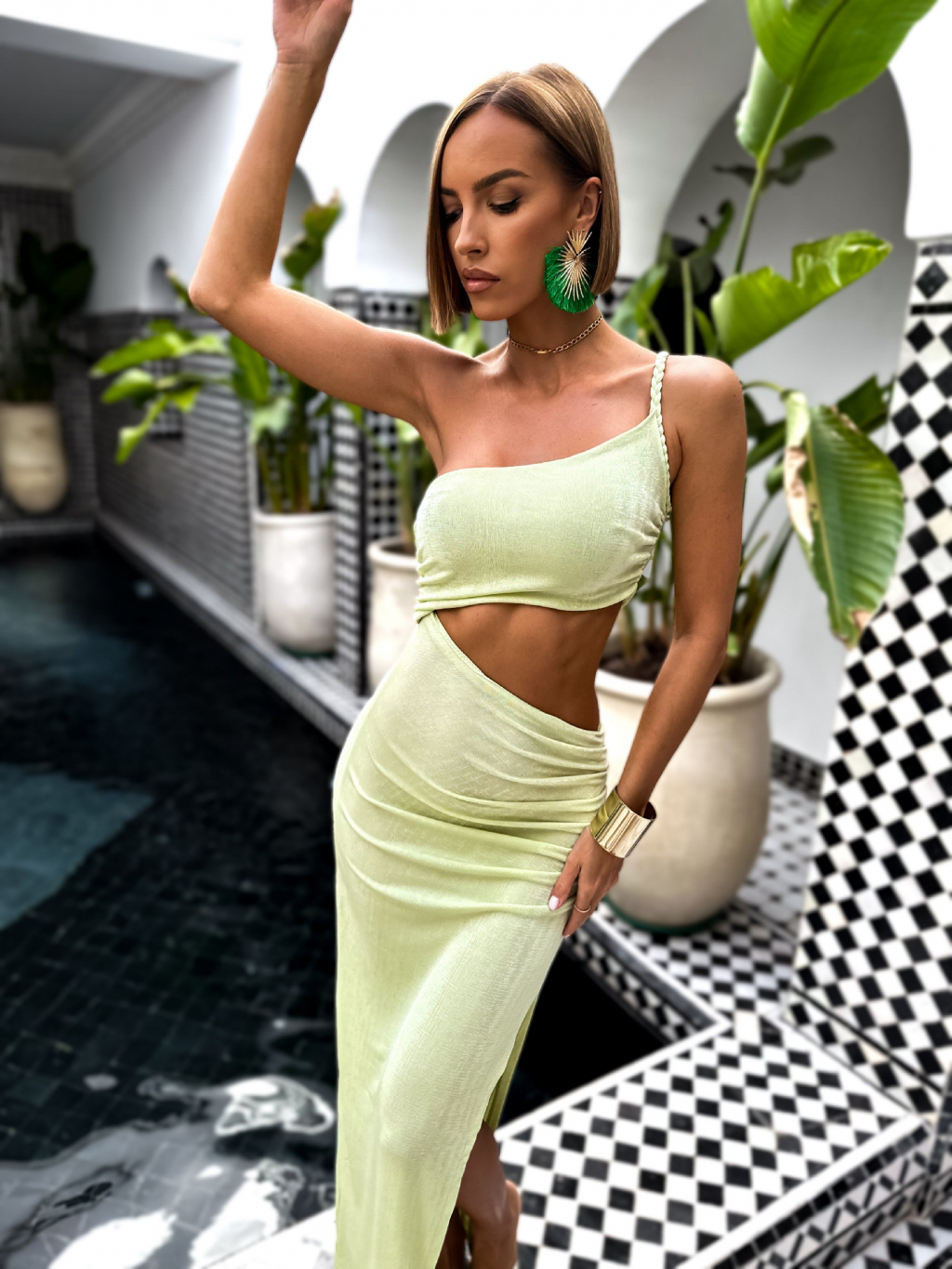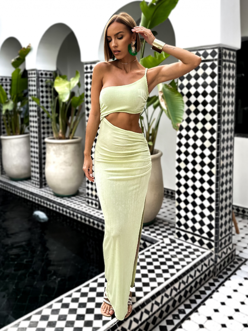 Zelené večerné šaty VAPORYN cez jedno rameno